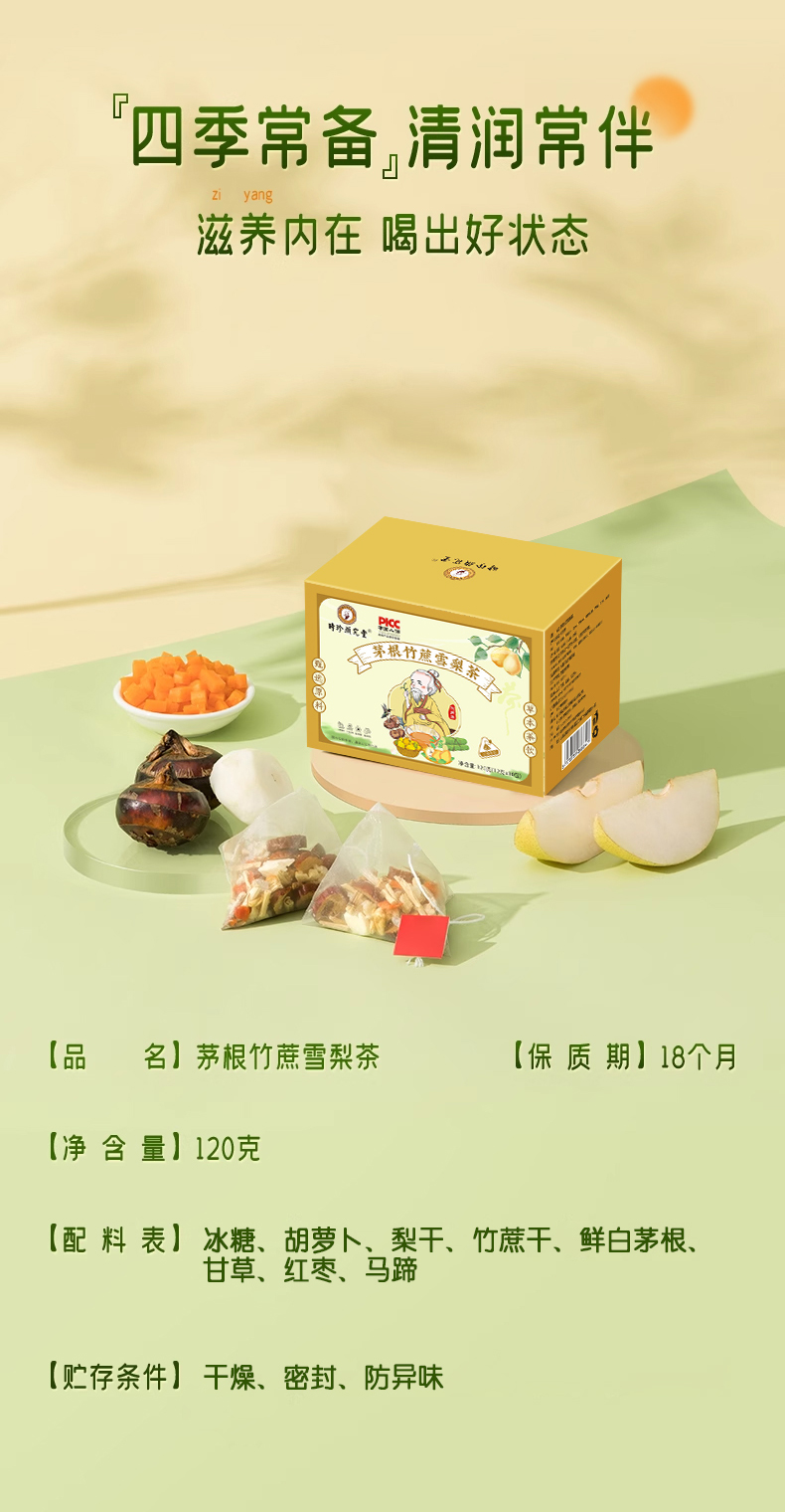 热卖中!!【胡维勤非遗传承】源自1921年时珍颜究堂竹蔗茅根雪梨茶 清火下火 滋润 幽香回甘 0添加 三角独立包装 老少皆可