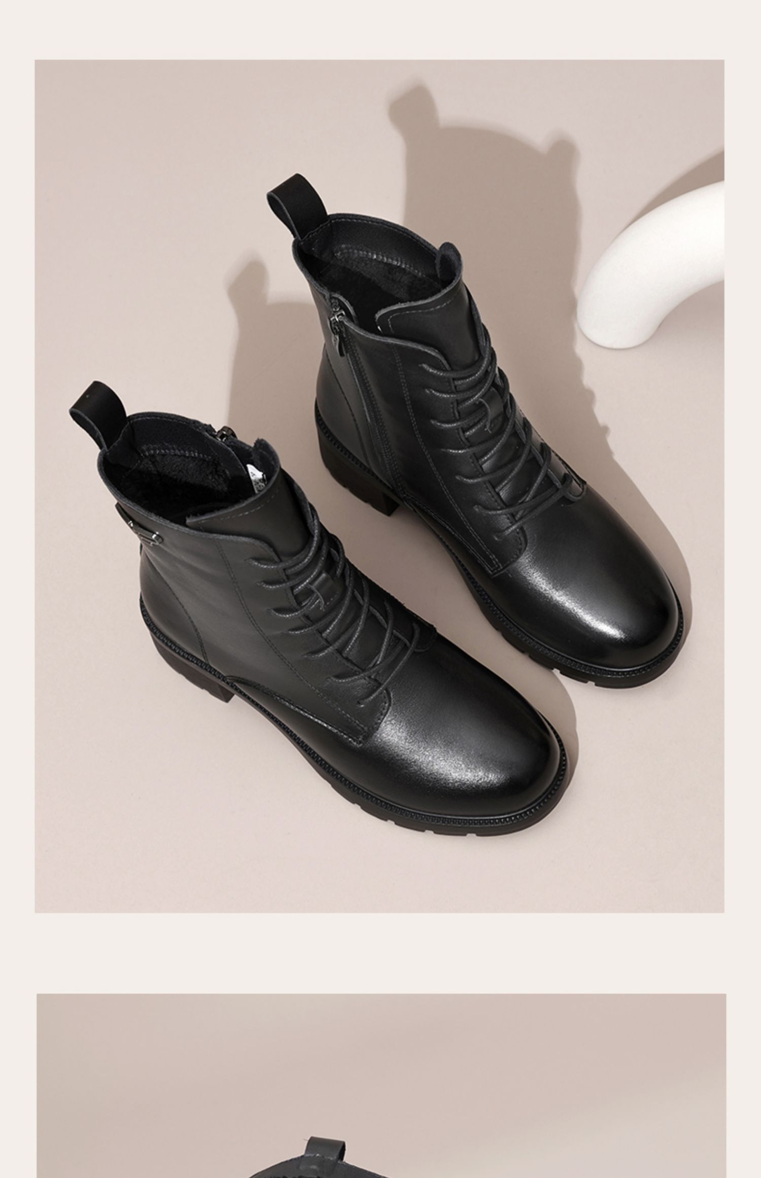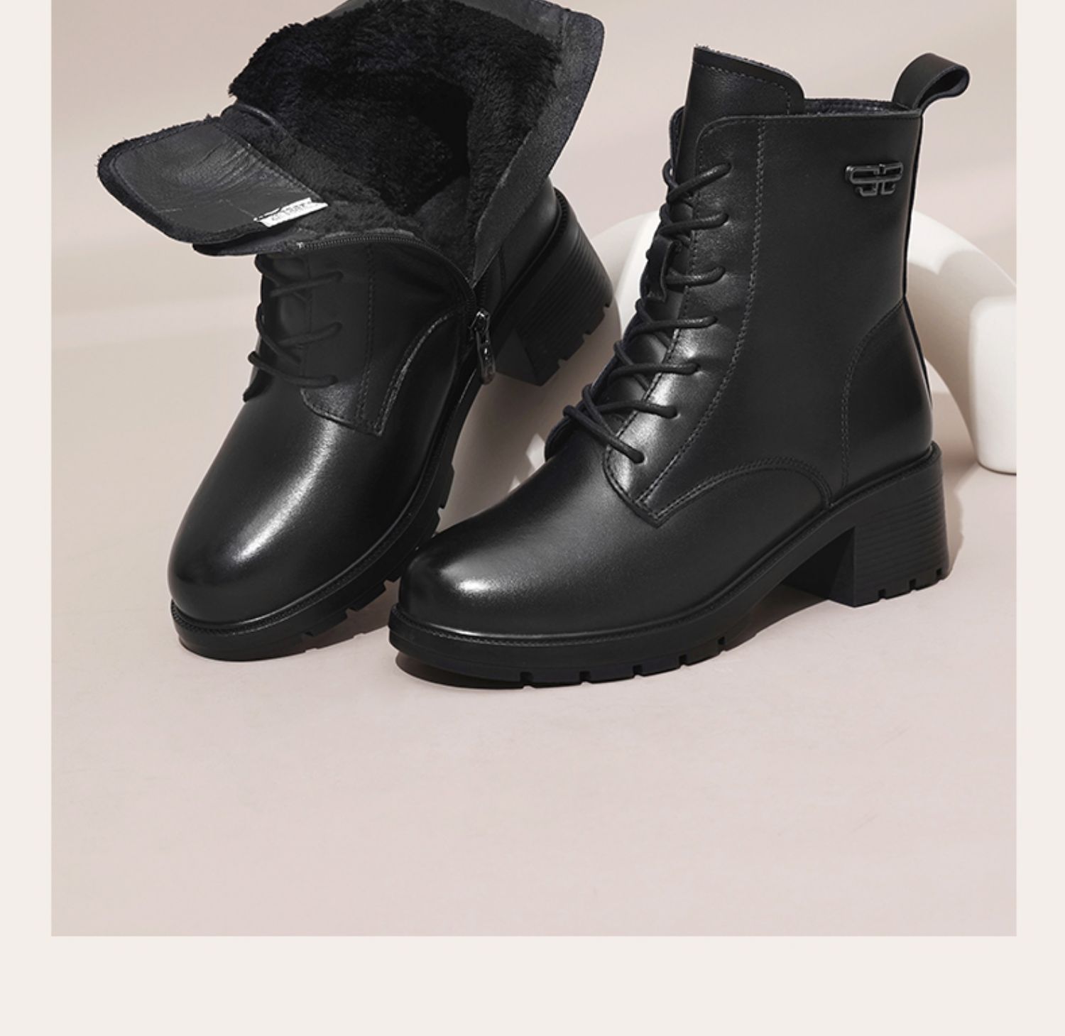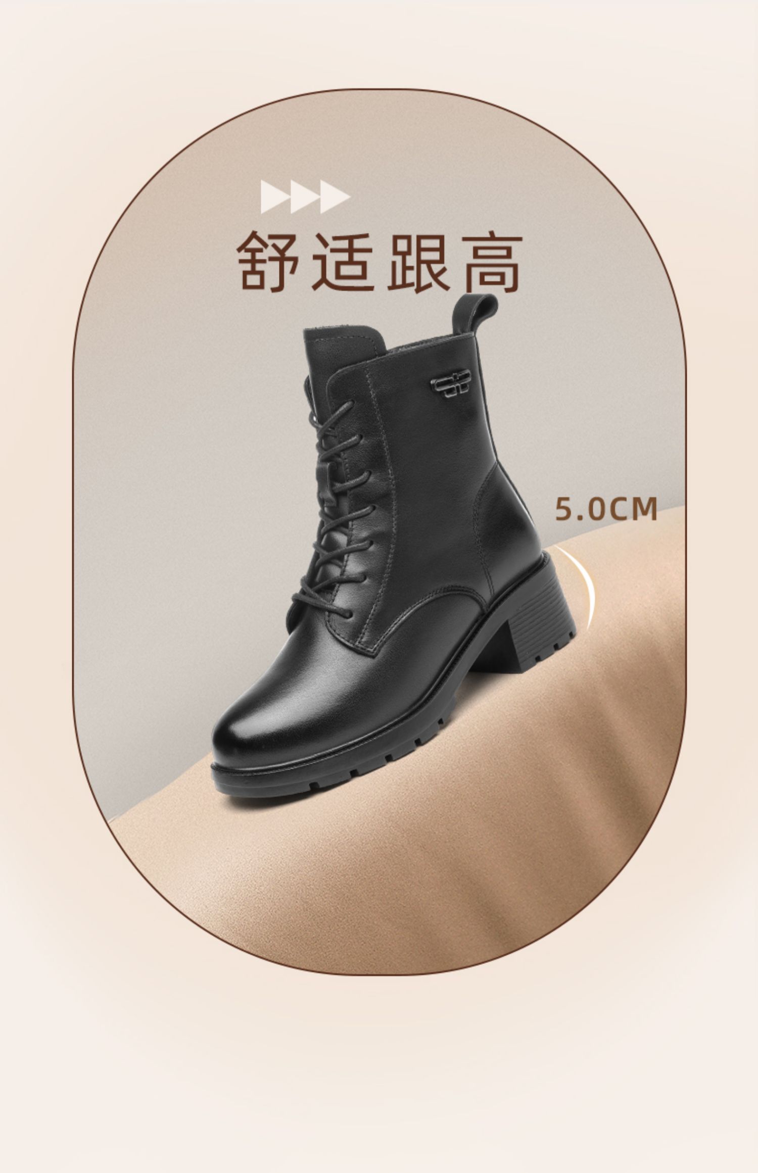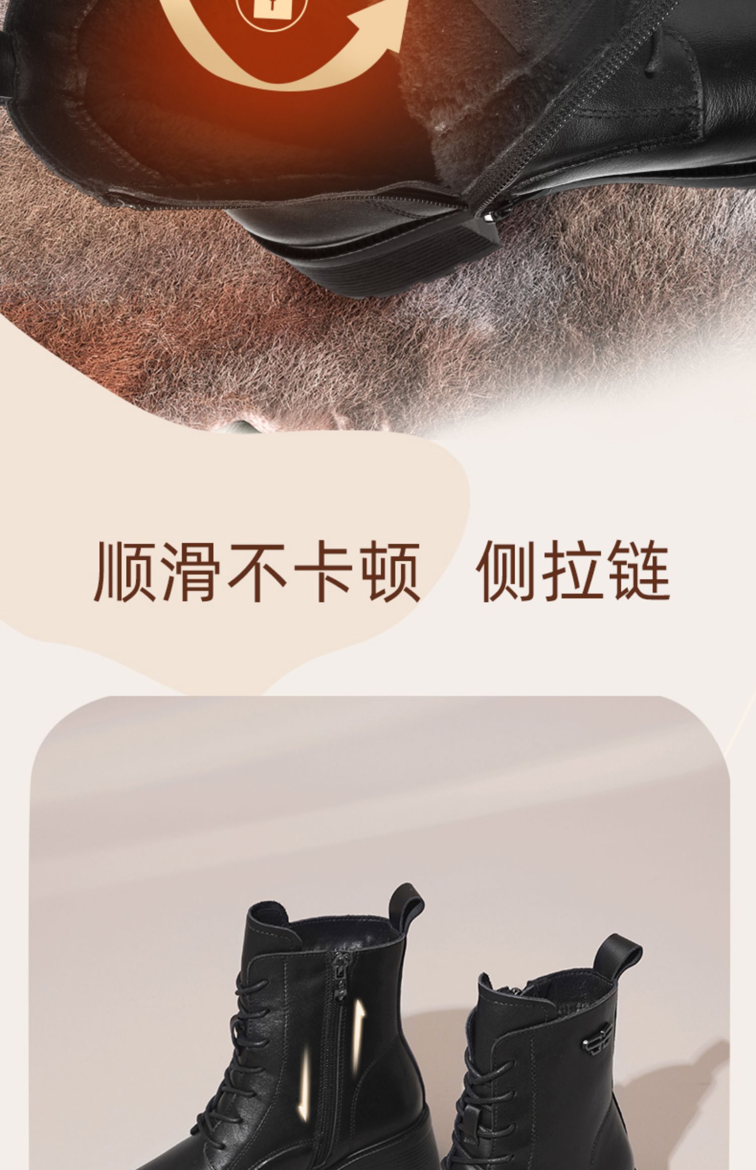 信诺舒适真皮女鞋2024新款冬季加绒时装靴粗跟系带短靴妈妈棉鞋女X24M124-79