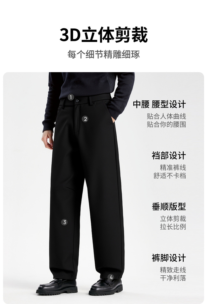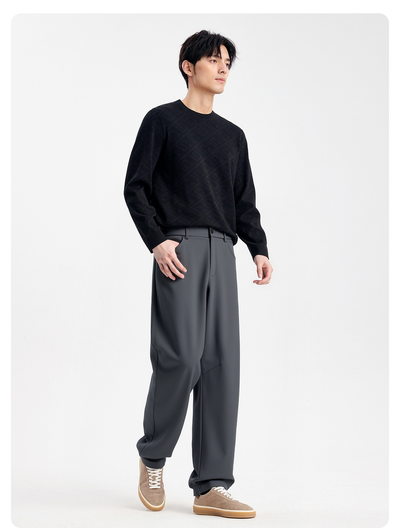 圣得西男士宽松微锥版型休闲裤2025秋季新款复古时尚通勤易搭长裤