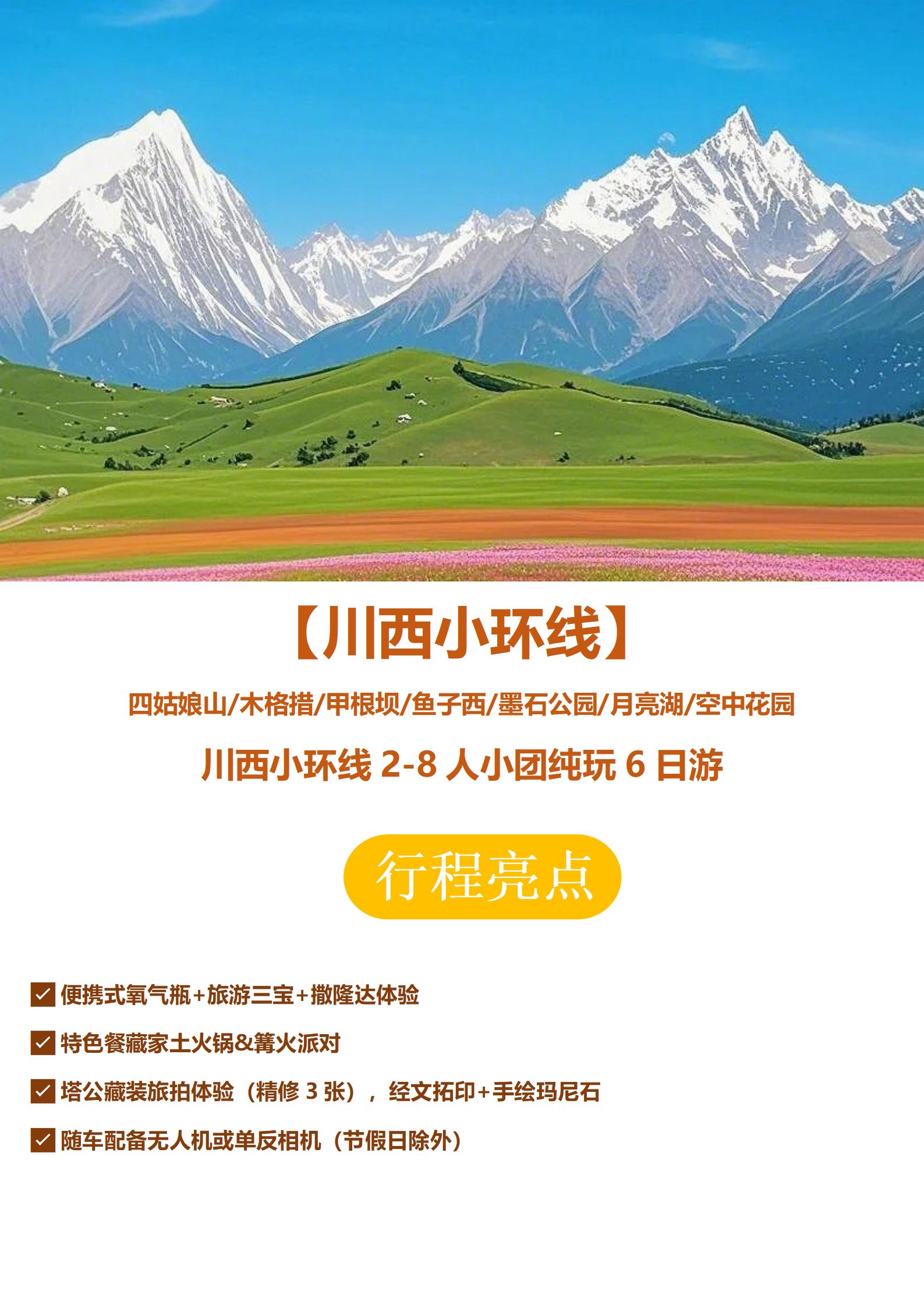 【川西小环线】2-8人小团纯玩6日游