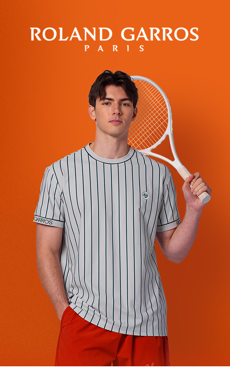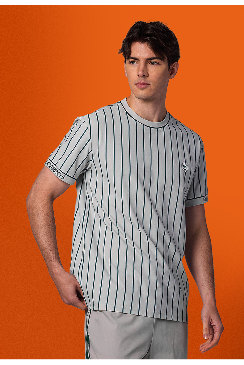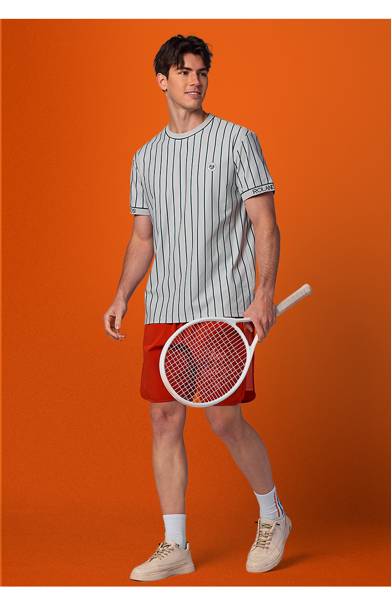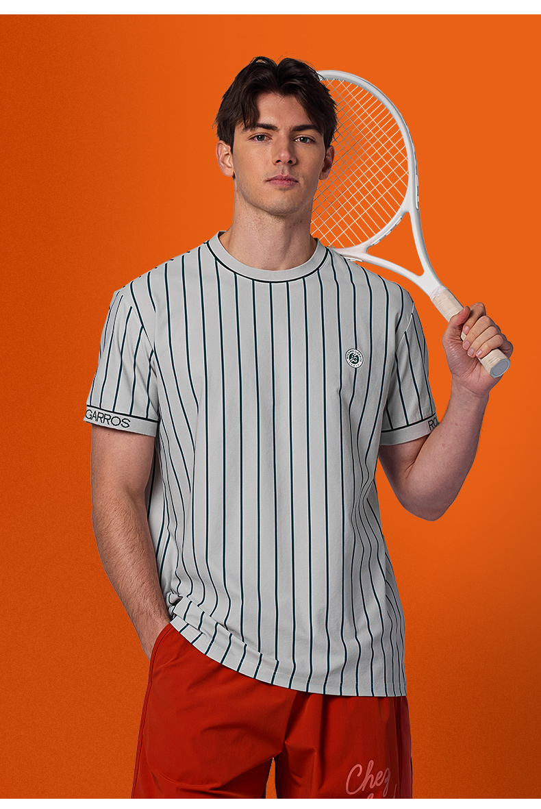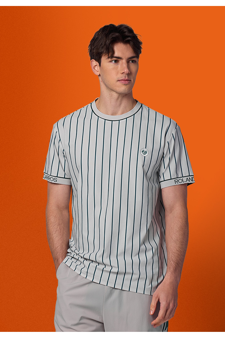 罗兰加洛斯法网速干网球短袖T恤夏季新款男竖条纹网球服运动上衣