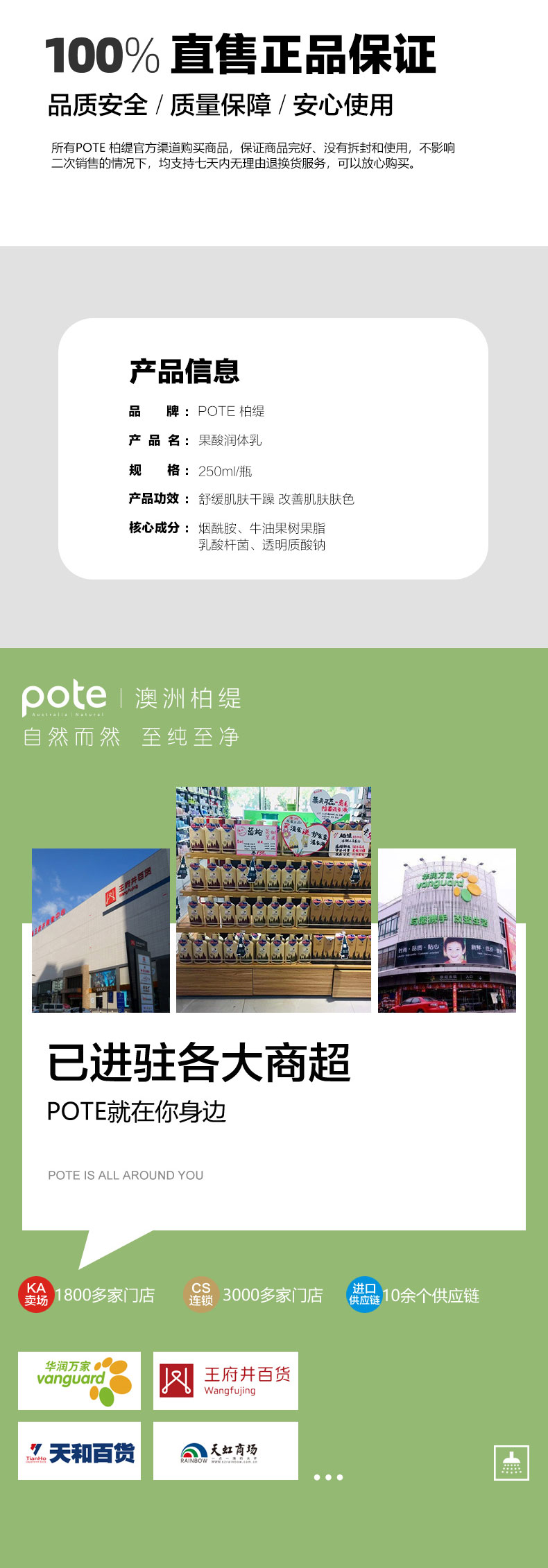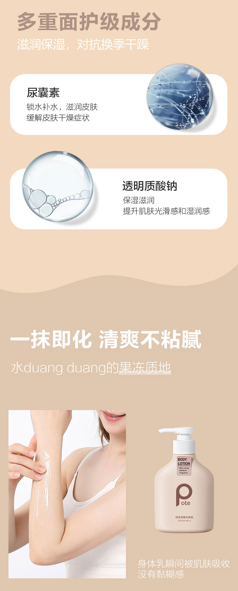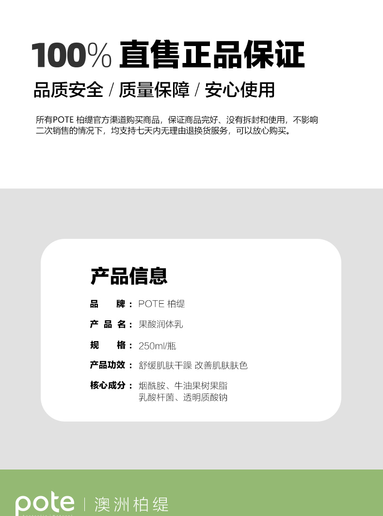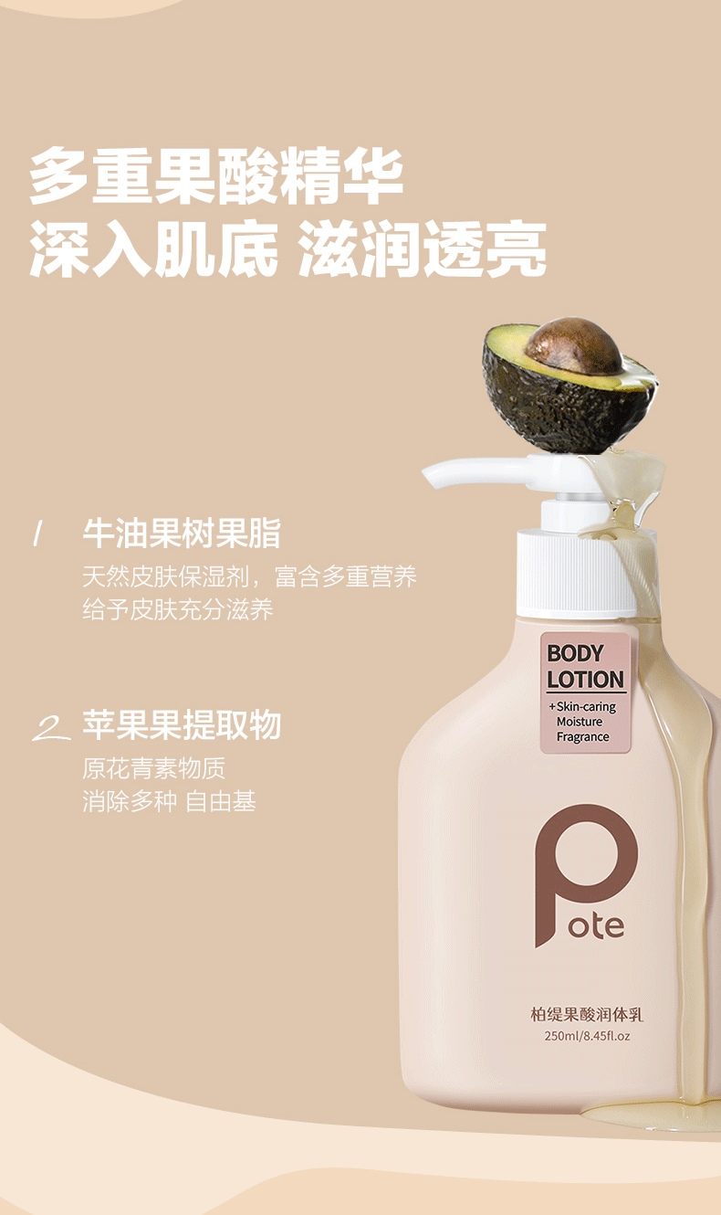 【抹出亮白光滑肌肤】pote柏缇果酸润身体乳 保湿滋润 持久留香 润肤乳250ml