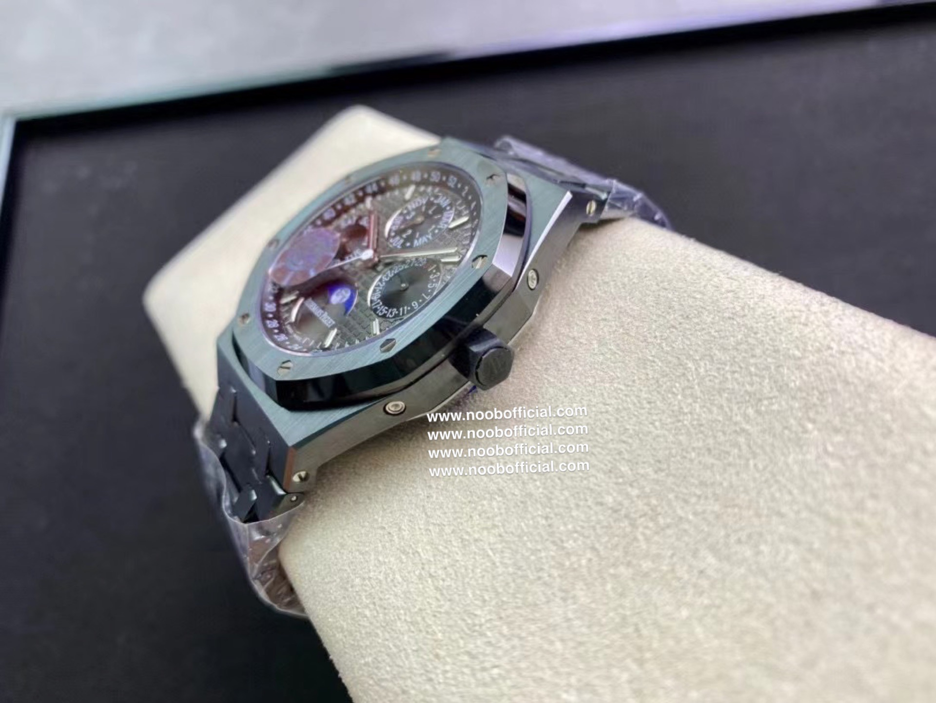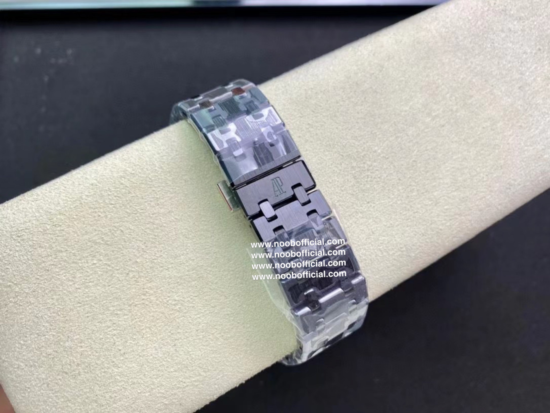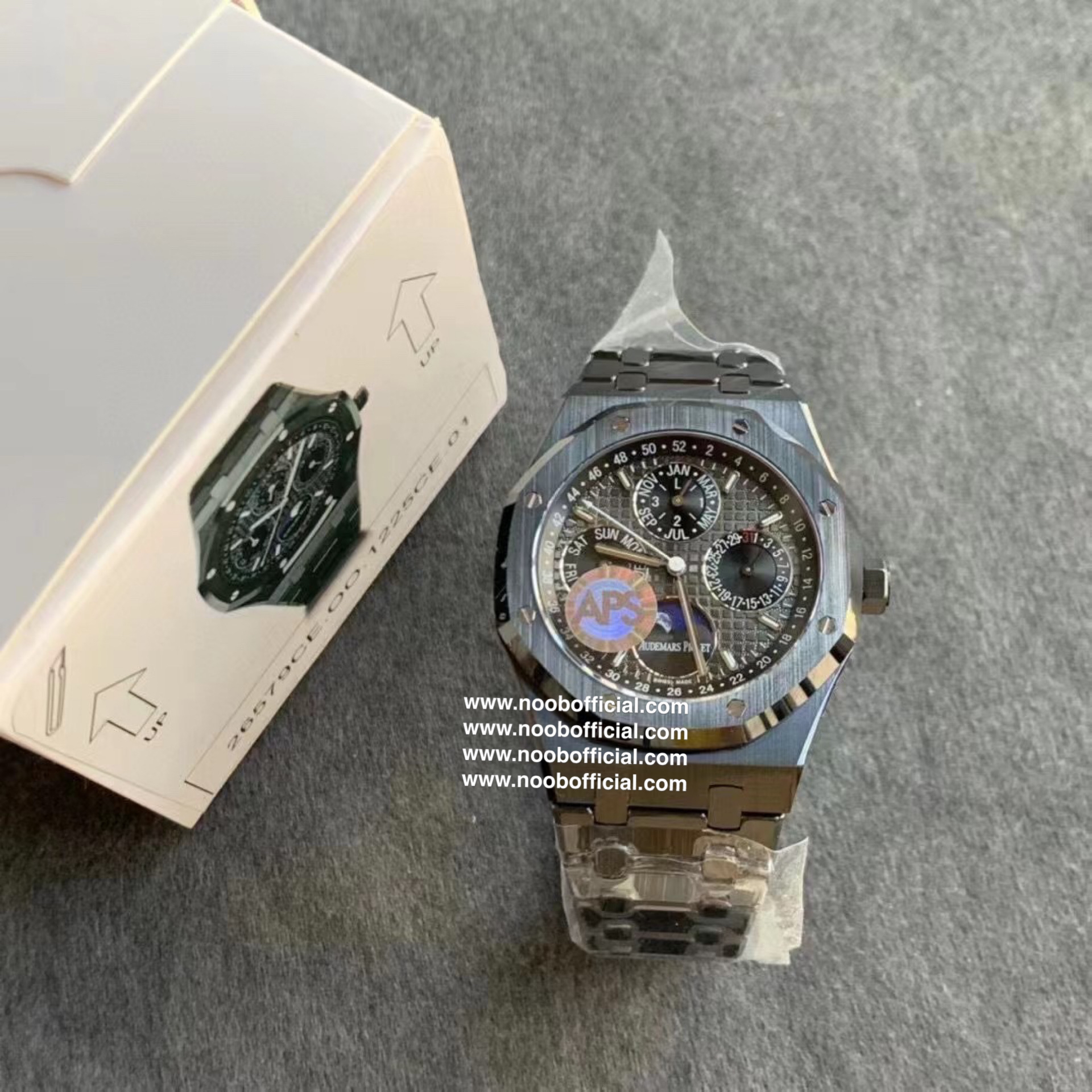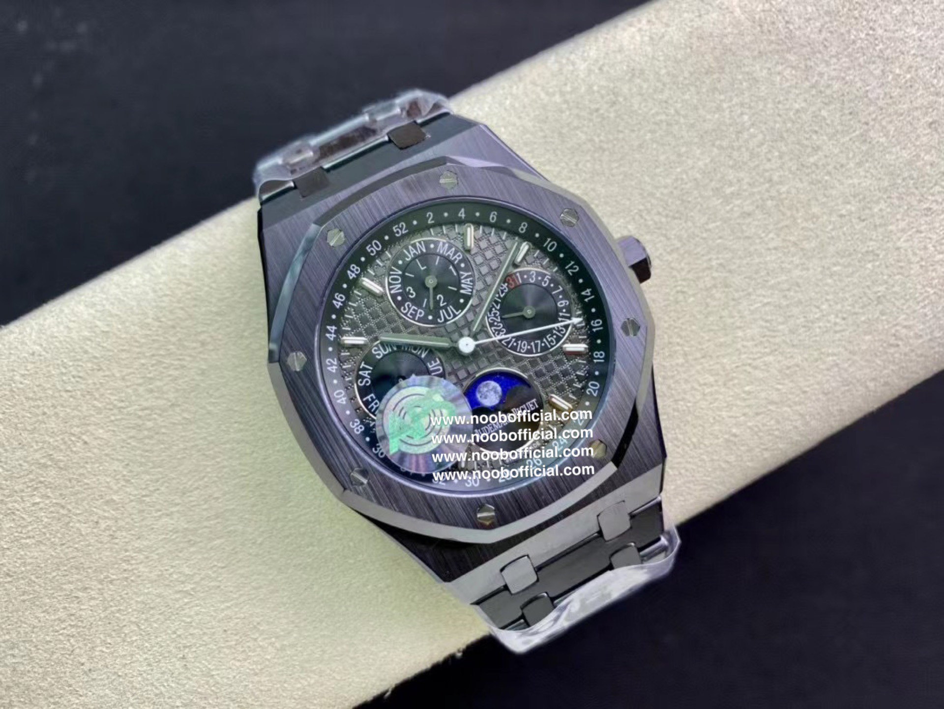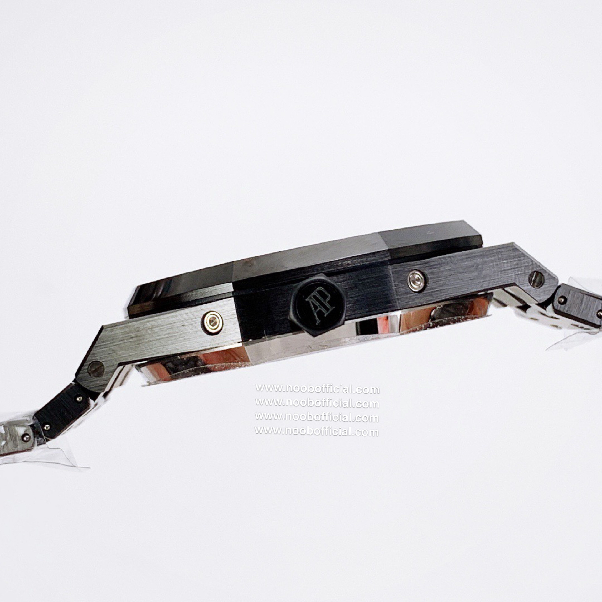 APS 爱彼 黑陶瓷26579 真月相 皇家橡树系列在“Grande Tapisserie”大格纹装饰表盘上,日期、星期、月份、月相,和四个眼睛的位置与原装同步