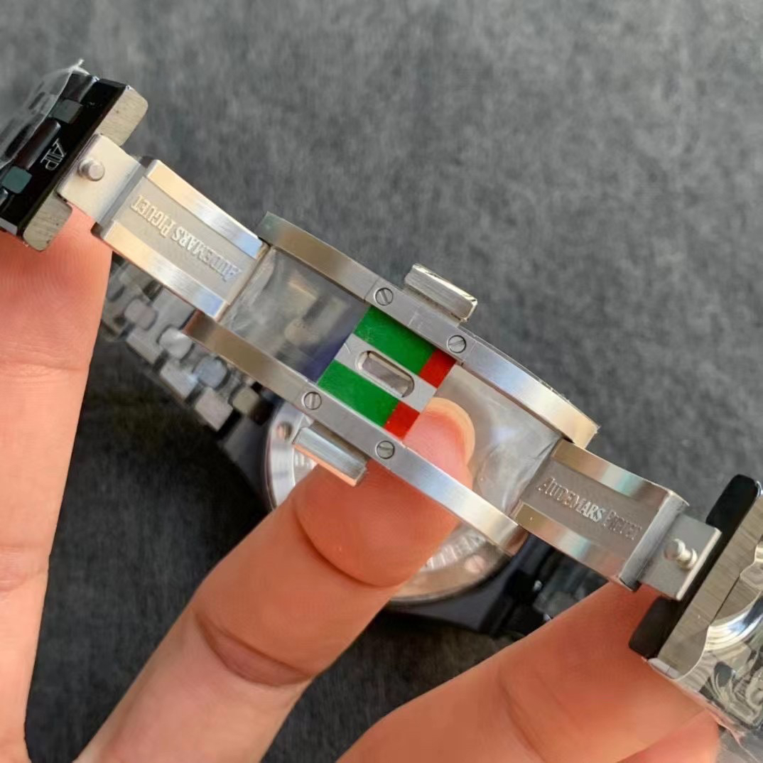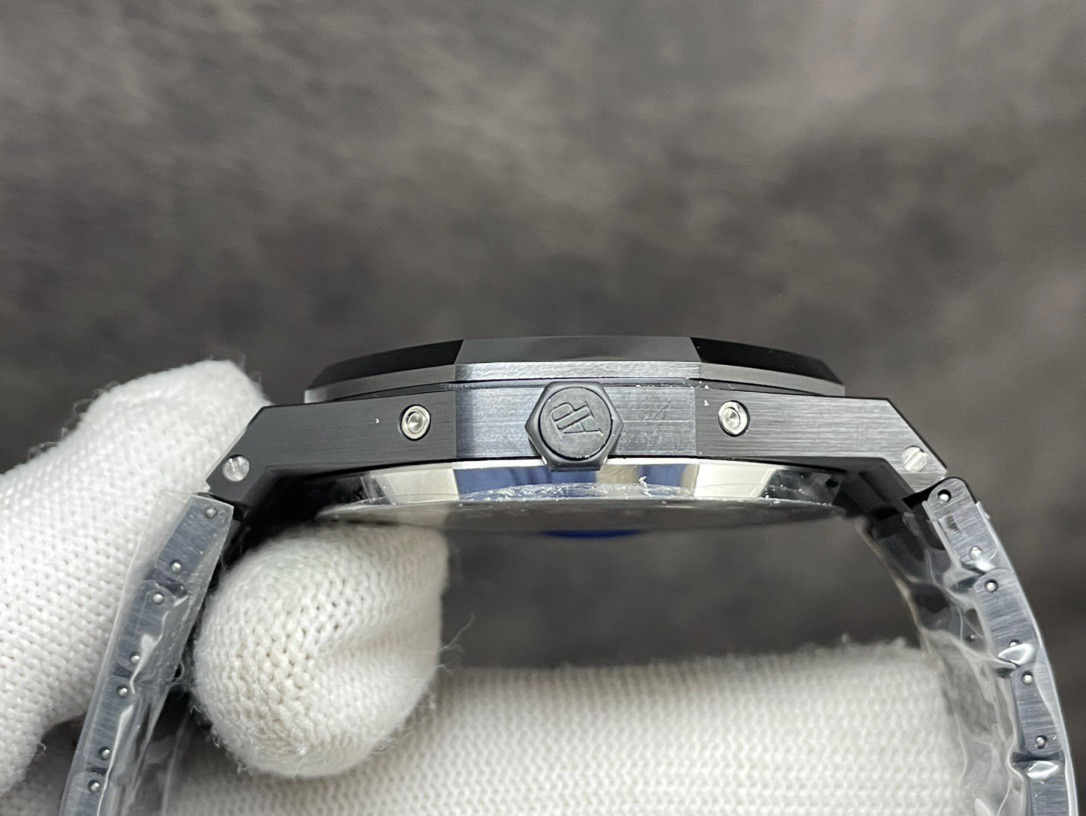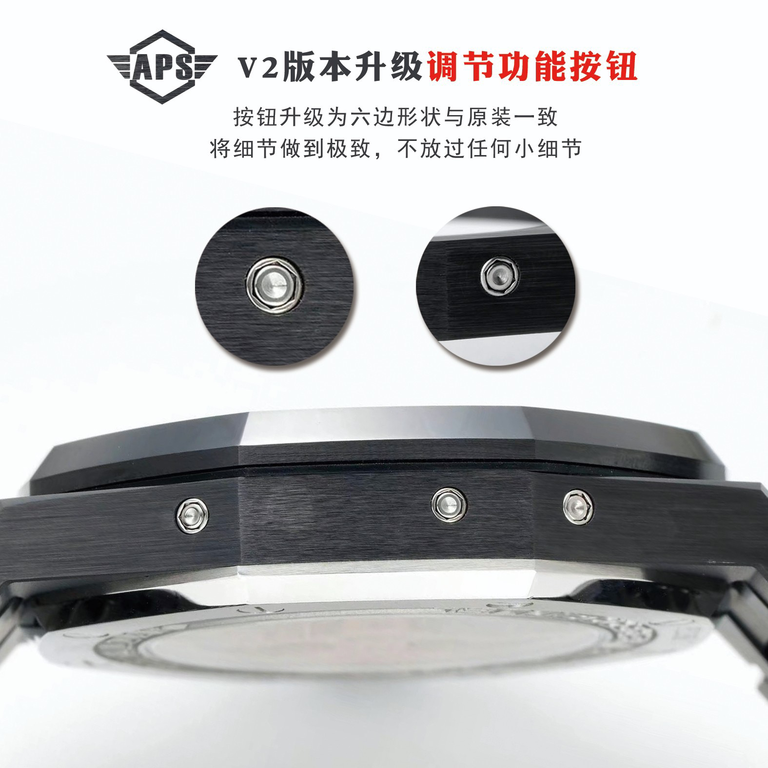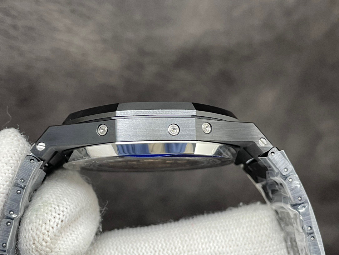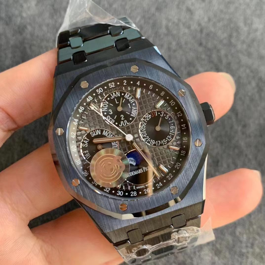 APS 爱彼 黑陶瓷26579 真月相 皇家橡树系列在"Grande Tapisserie"大格纹装饰表盘上,日期、星期、月份、月相,和四个眼睛的位置与原装同步,(区别普通版本四个眼镜紧缩在一起)并以真实的月球图像显示天文精确月相,形成鲜明对比,直径41mm,复刻一体机5134自动上链机芯,厚度10.5mm(区别市面普通版本14mm )所有功能真实可用,更薄 更像 !APS 爱彼 黑陶瓷26579 真月相 皇家橡树系列在"Grande Tapisserie"大格纹装饰表盘上,日期、星期、月份、月相,和四个眼睛的位置与原装同步,(区别普通版本四个眼镜紧缩在一起)并以真实的月球图像显示天文精确月相,形成鲜明对比,直径41mm,复刻一体机5134自动上链机芯,厚度10.5mm(区别市面普通版本14mm )所有功能真实可用,更薄 更像 !