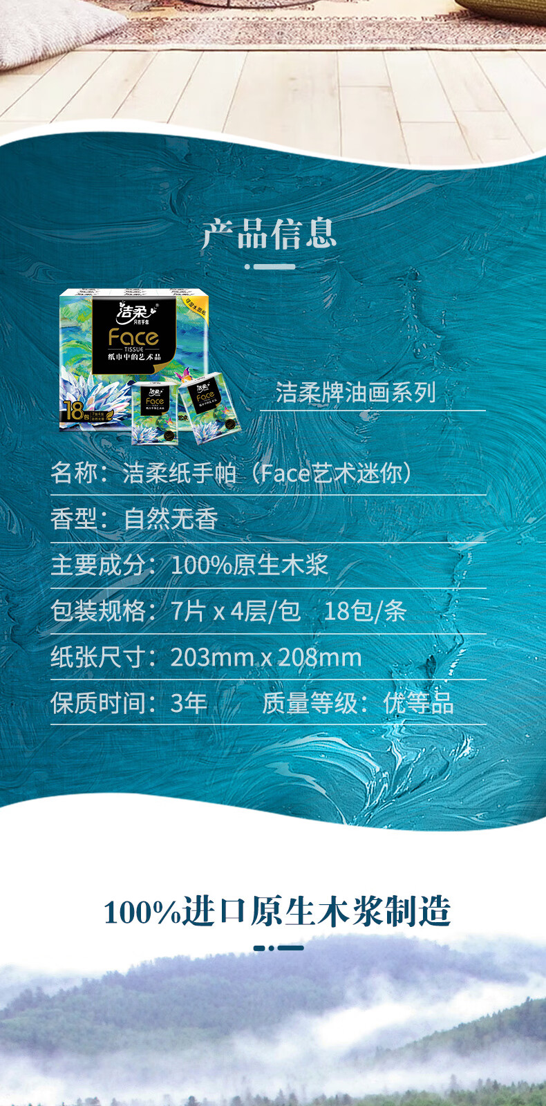 【ZY25】洁柔手帕纸巾 黑Face (油画系列)7片*18包