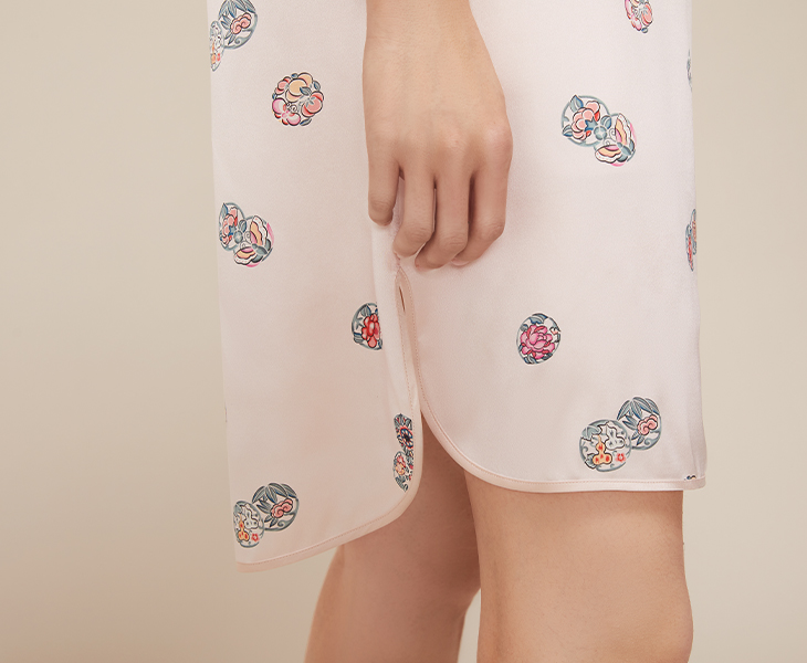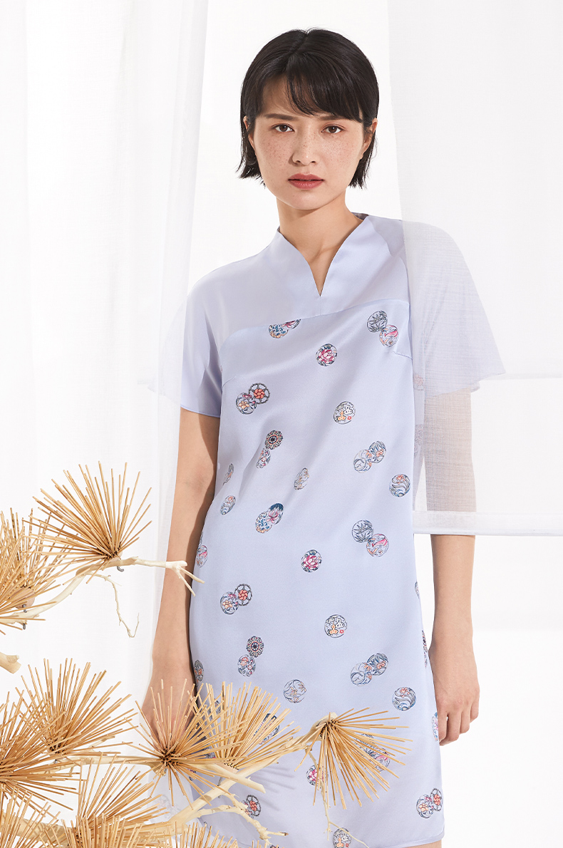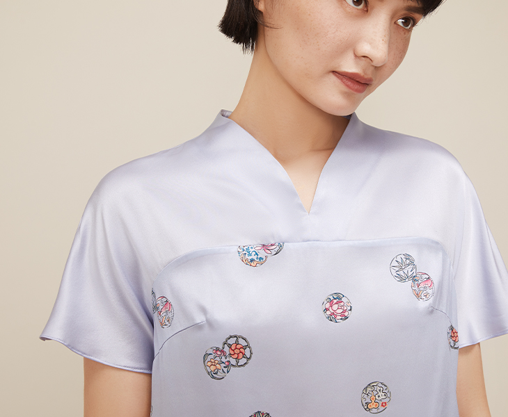 中式小V领造型,凸显典雅品味,线条流畅,拉长颈部曲线。