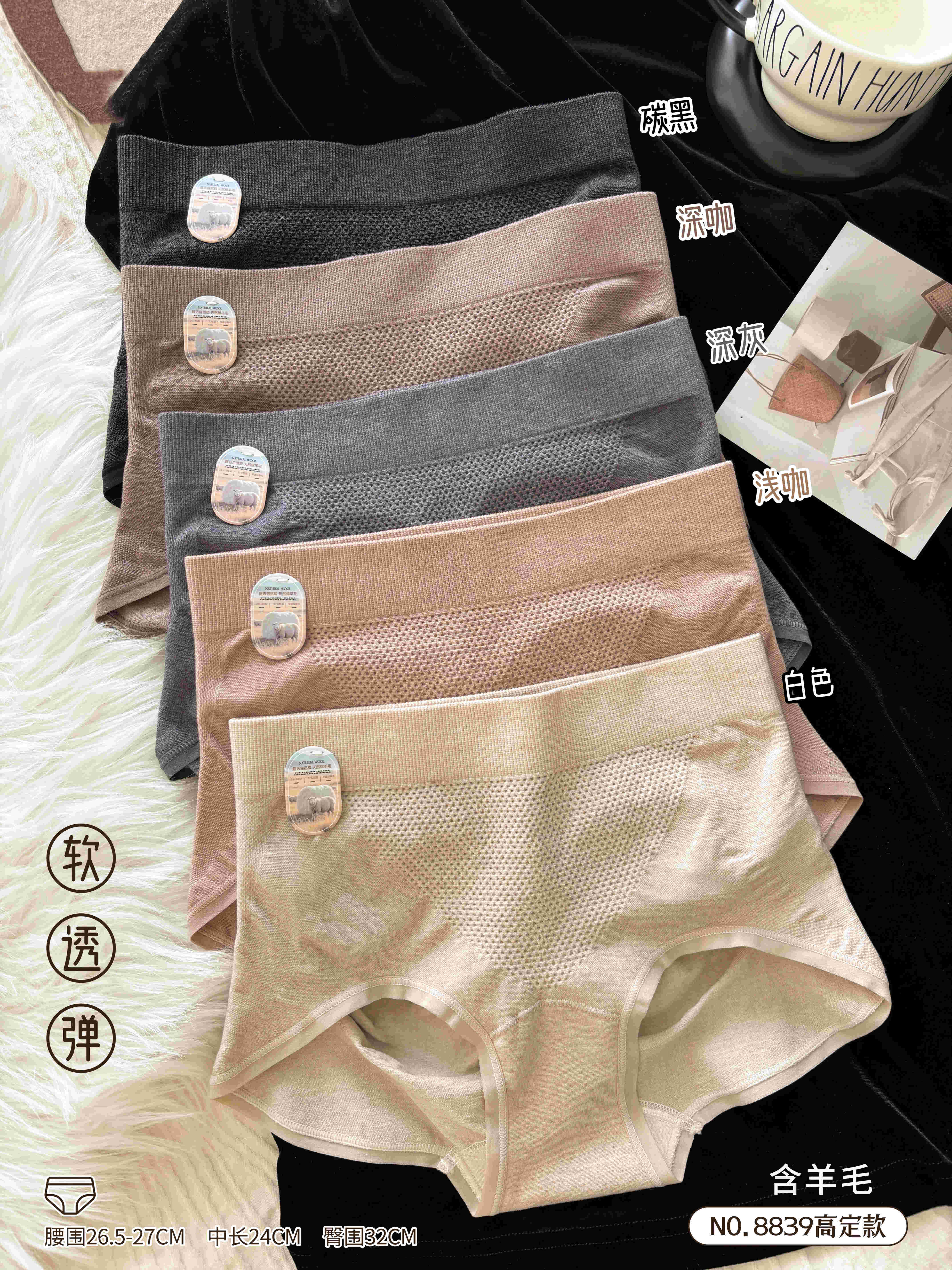女士含羊毛高定舒适透气高弹力无缝内裤三角裤8839