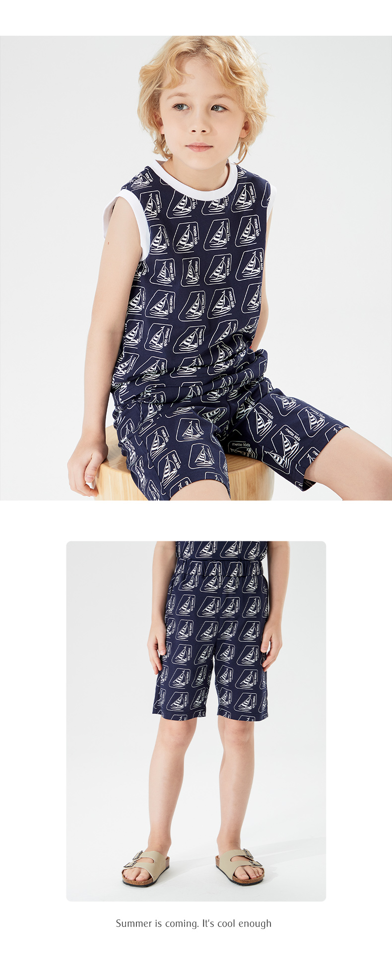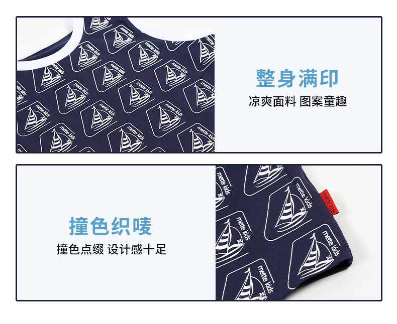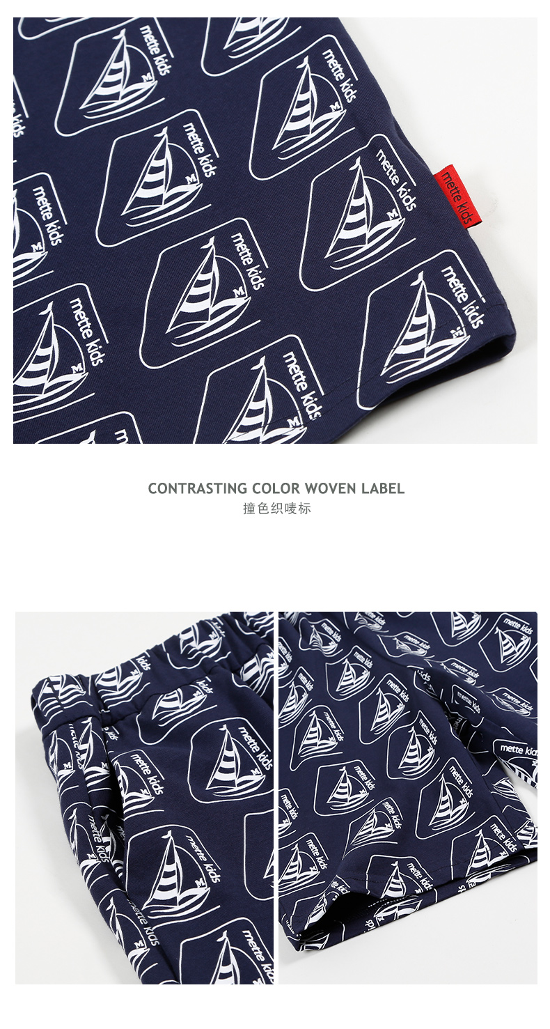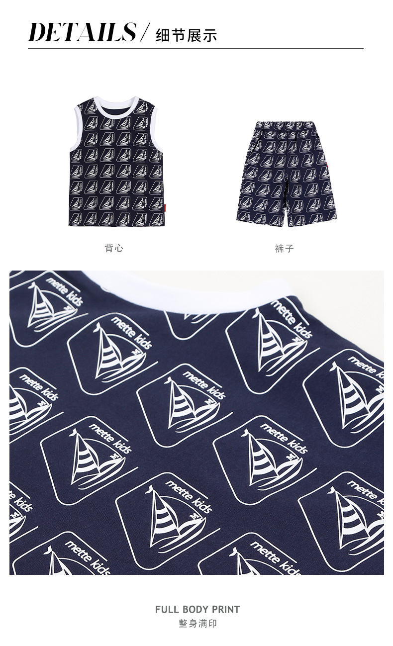 mettekids儿童背心男童套装2022夏季休闲满印花无袖短裤两件套潮