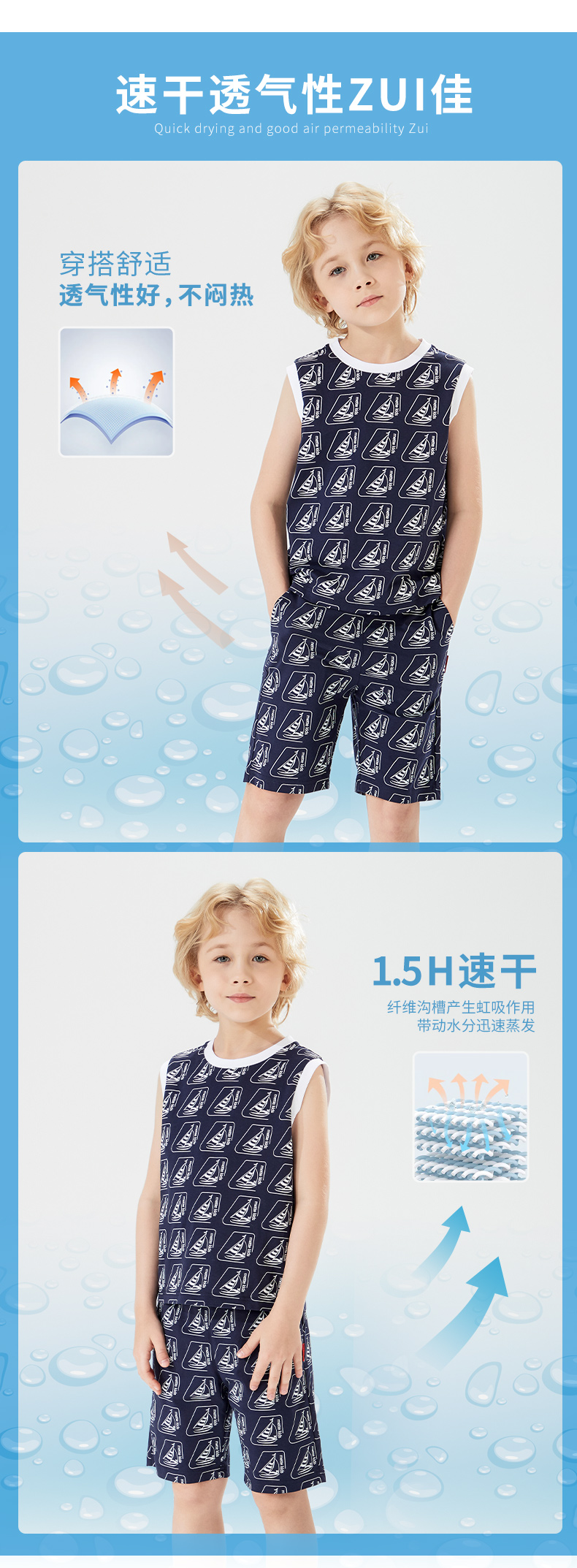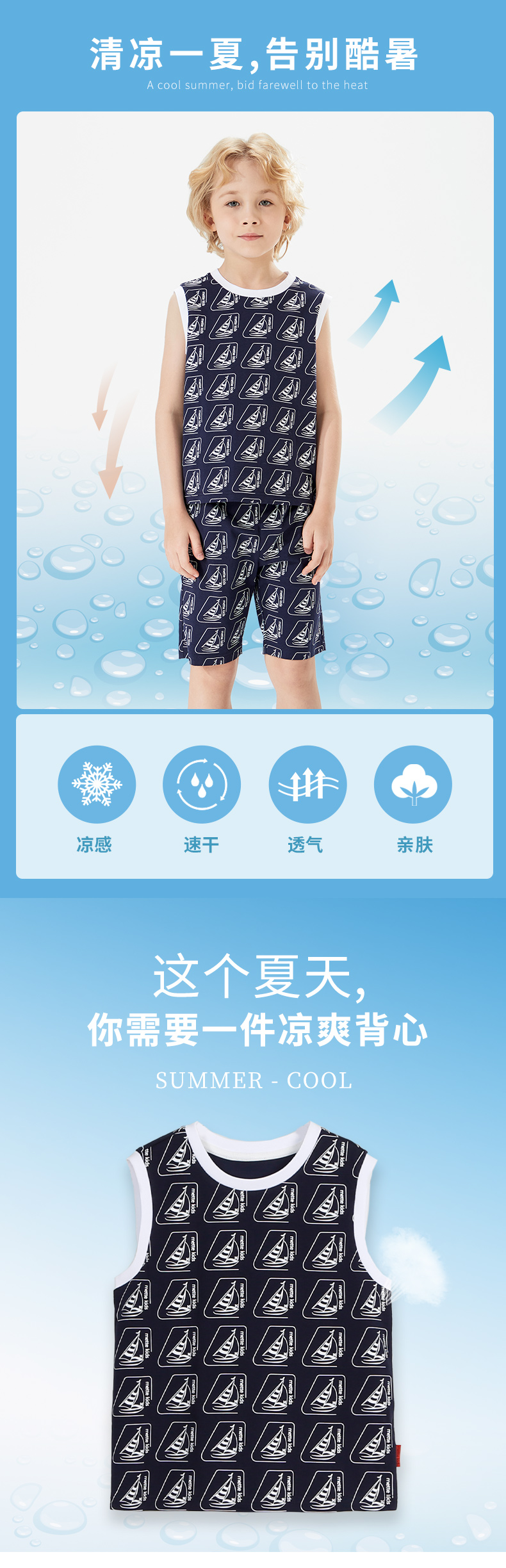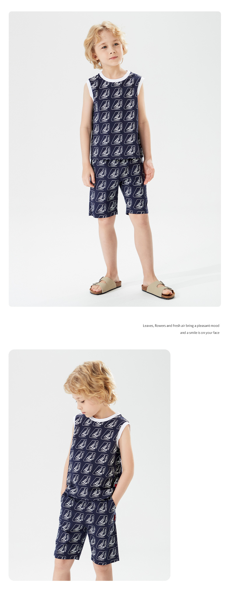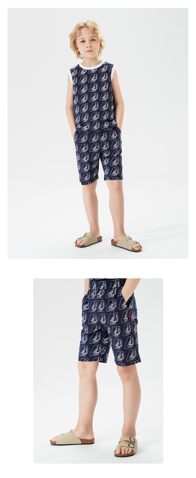 mettekids儿童背心男童套装2022夏季休闲满印花无袖短裤两件套潮