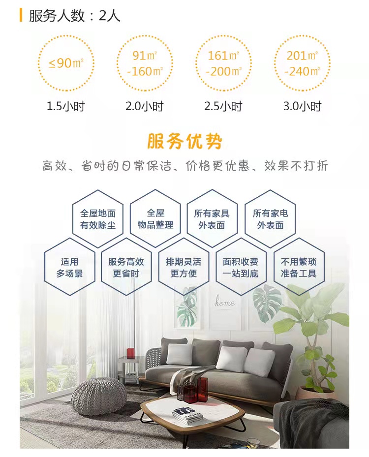 ⑤70-120平米:服务时长2小时,服务人数2人;