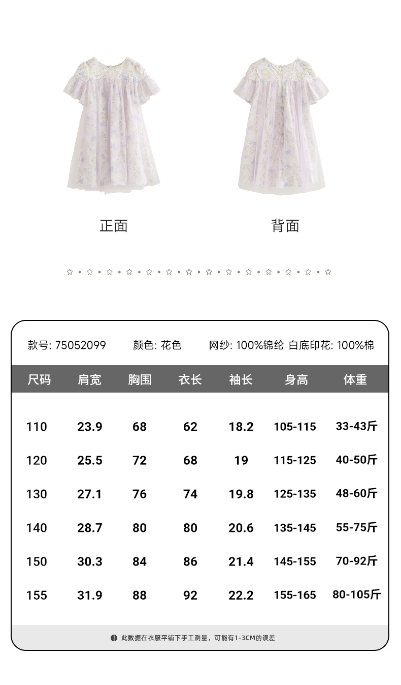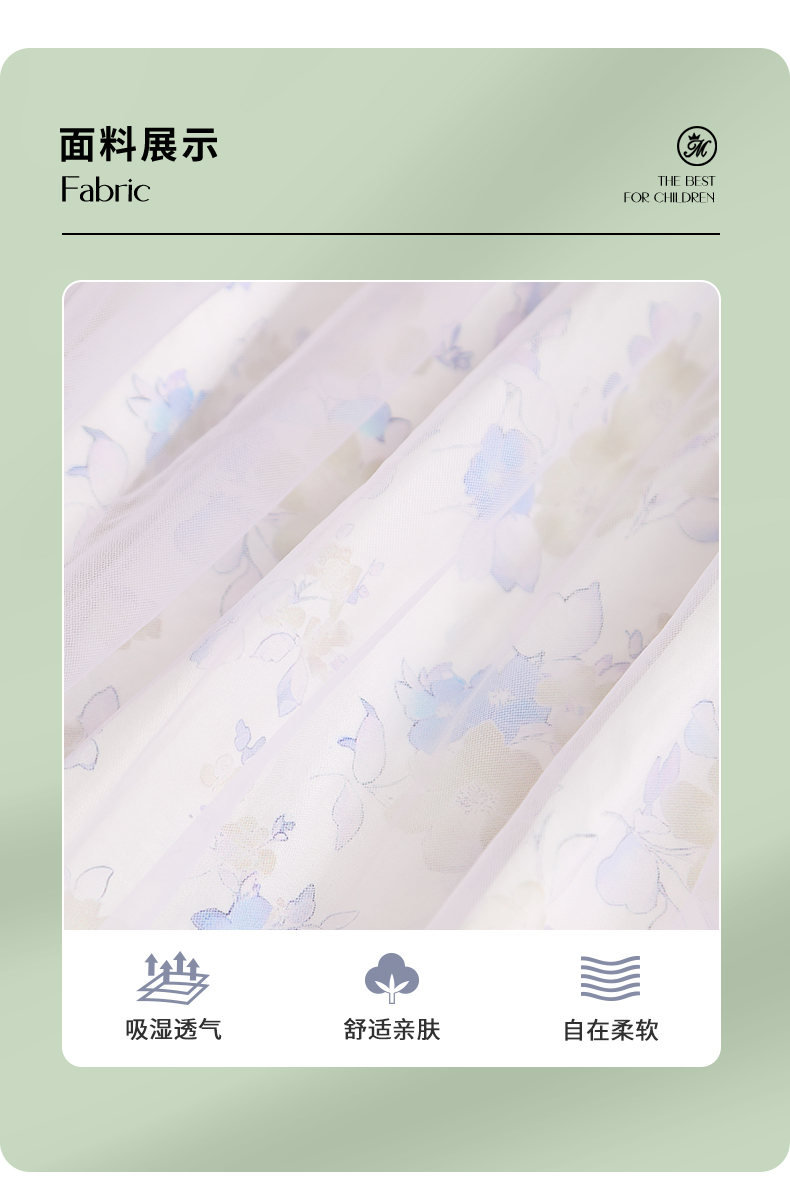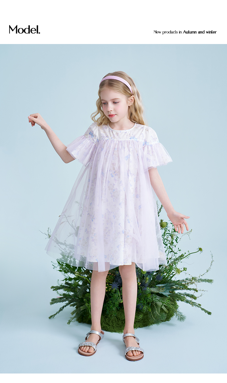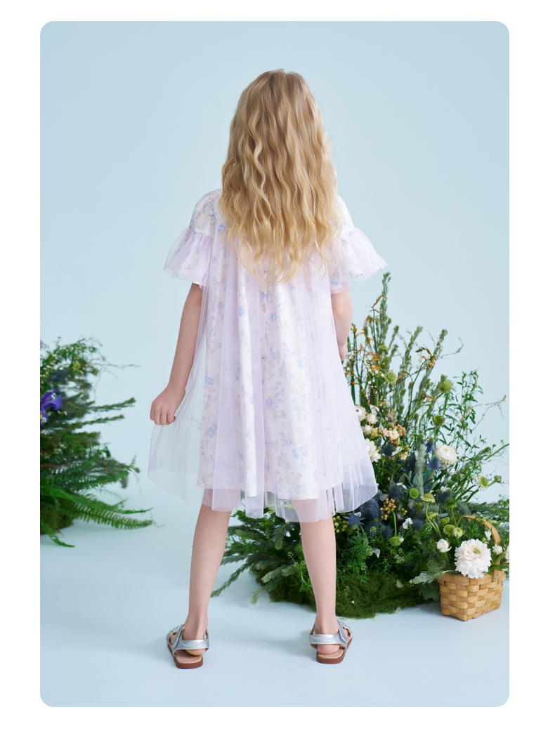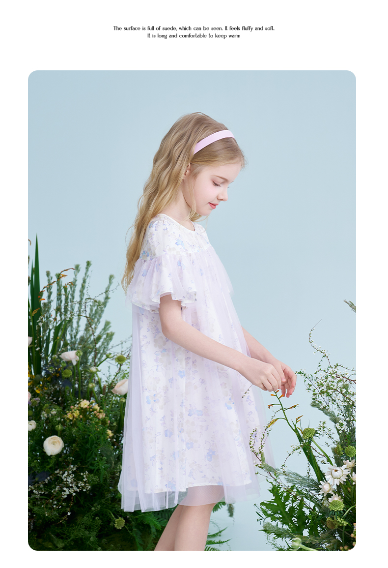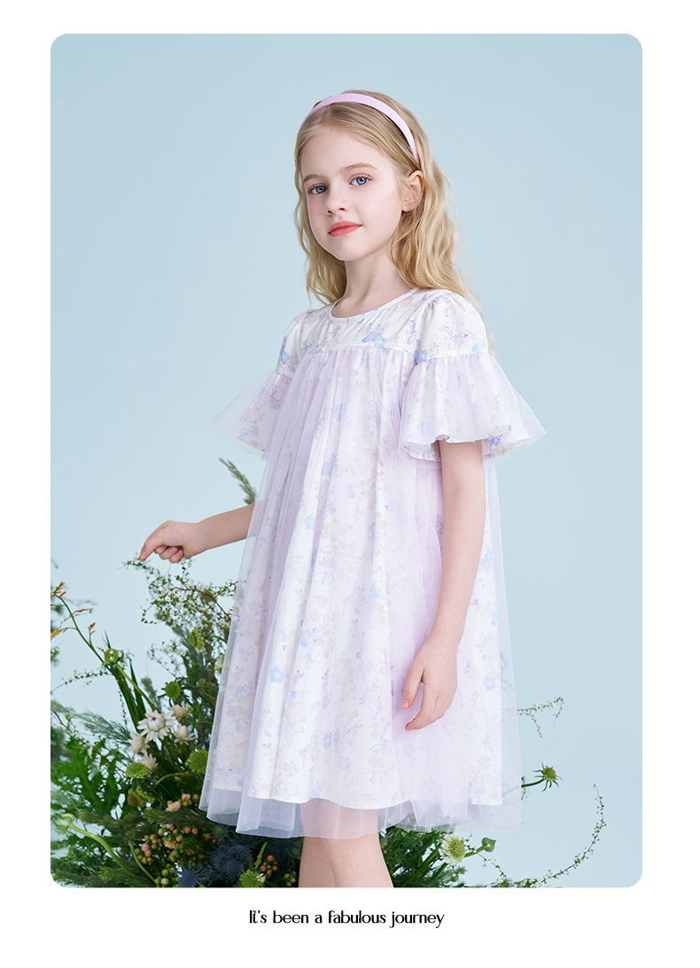 mettekids儿童连衣裙2025夏季新款纱裙女童法式碎花紫色大童裙子
