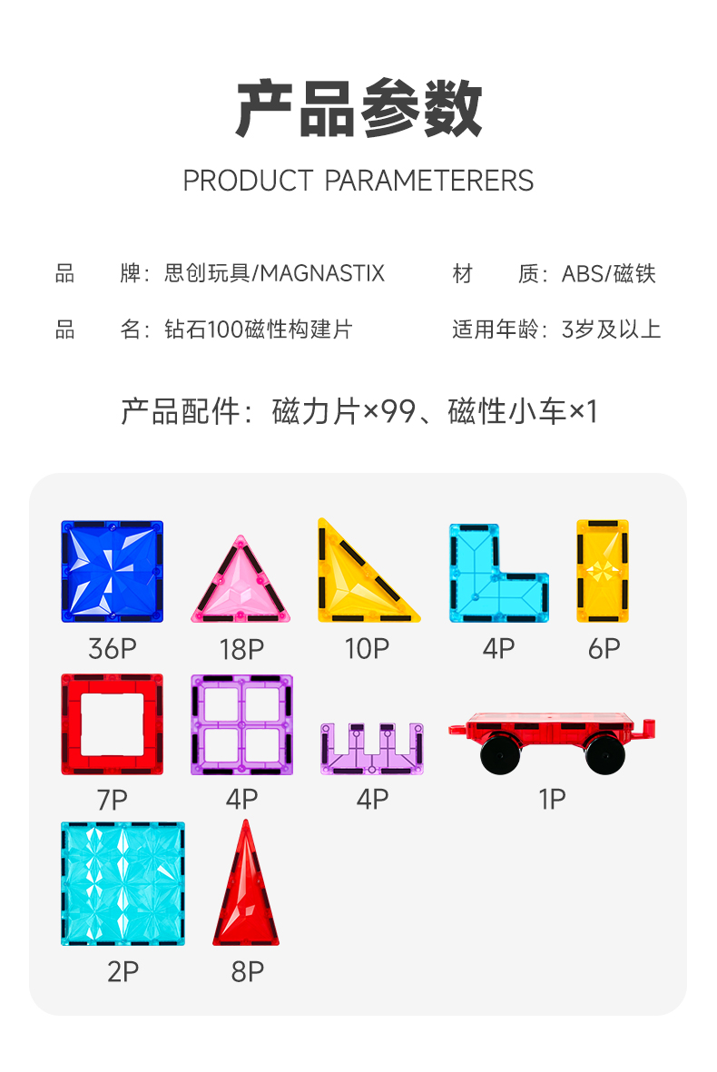 【思创】立体钻石面100片彩窗磁力片拼装启蒙早教玩具(非质量问题退货需扣除发货运费,介意慎拍!)