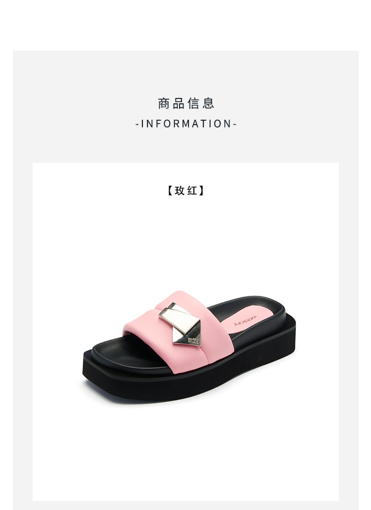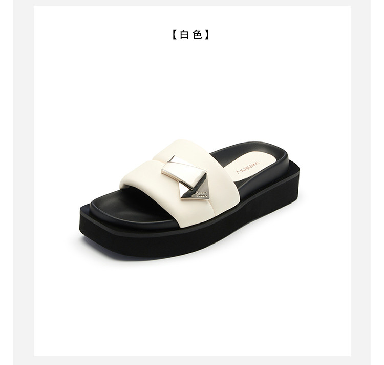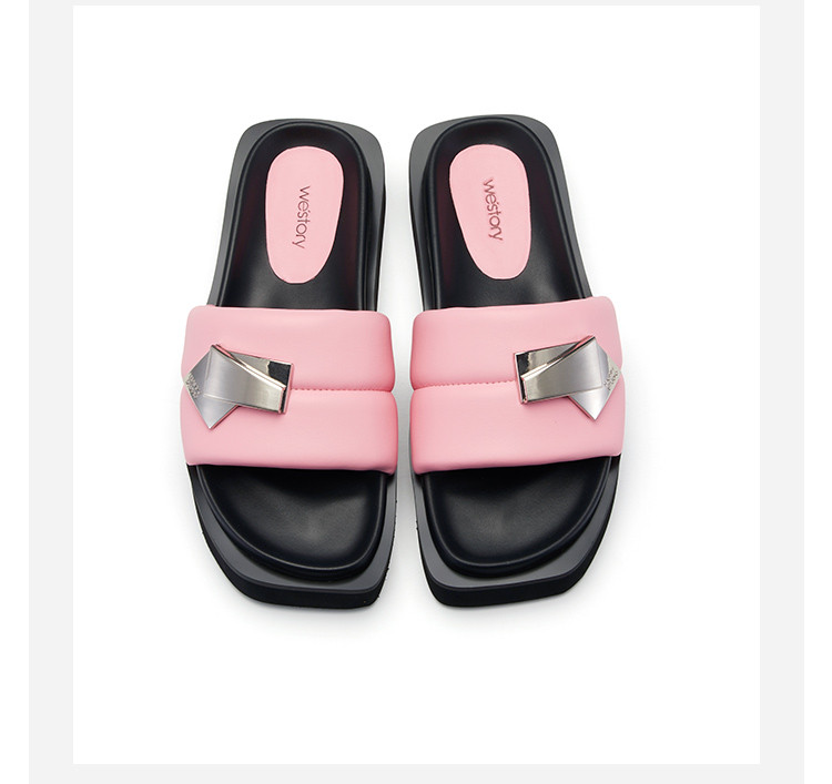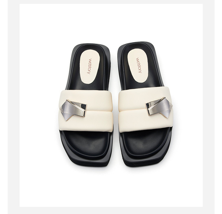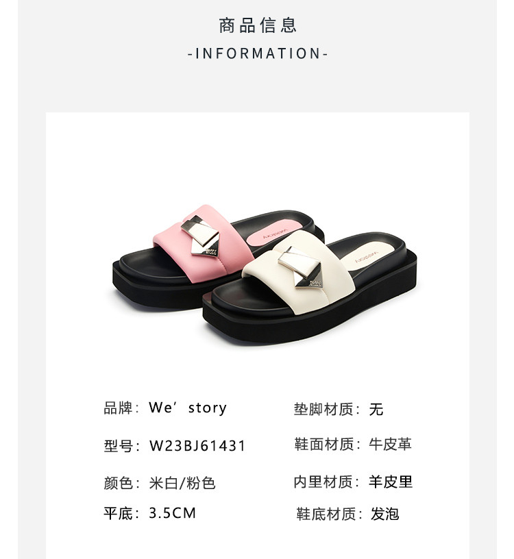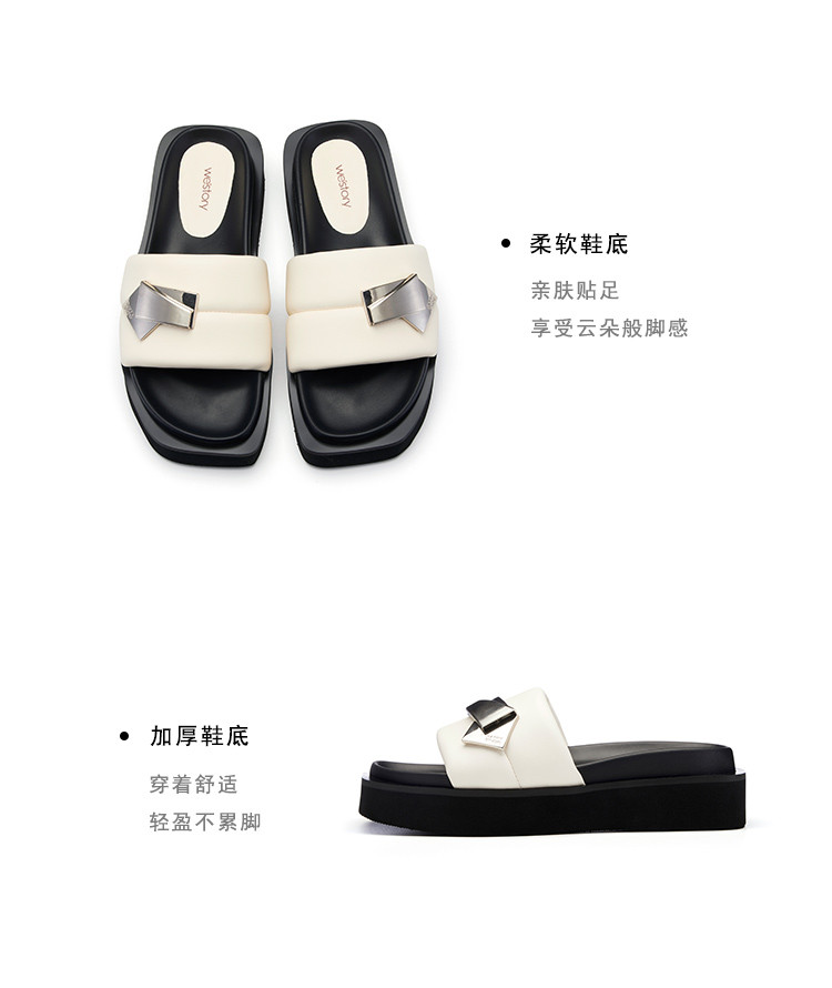 westory女鞋夏季休闲百搭平底中跟羊皮水钻露脚舒适拖鞋61431