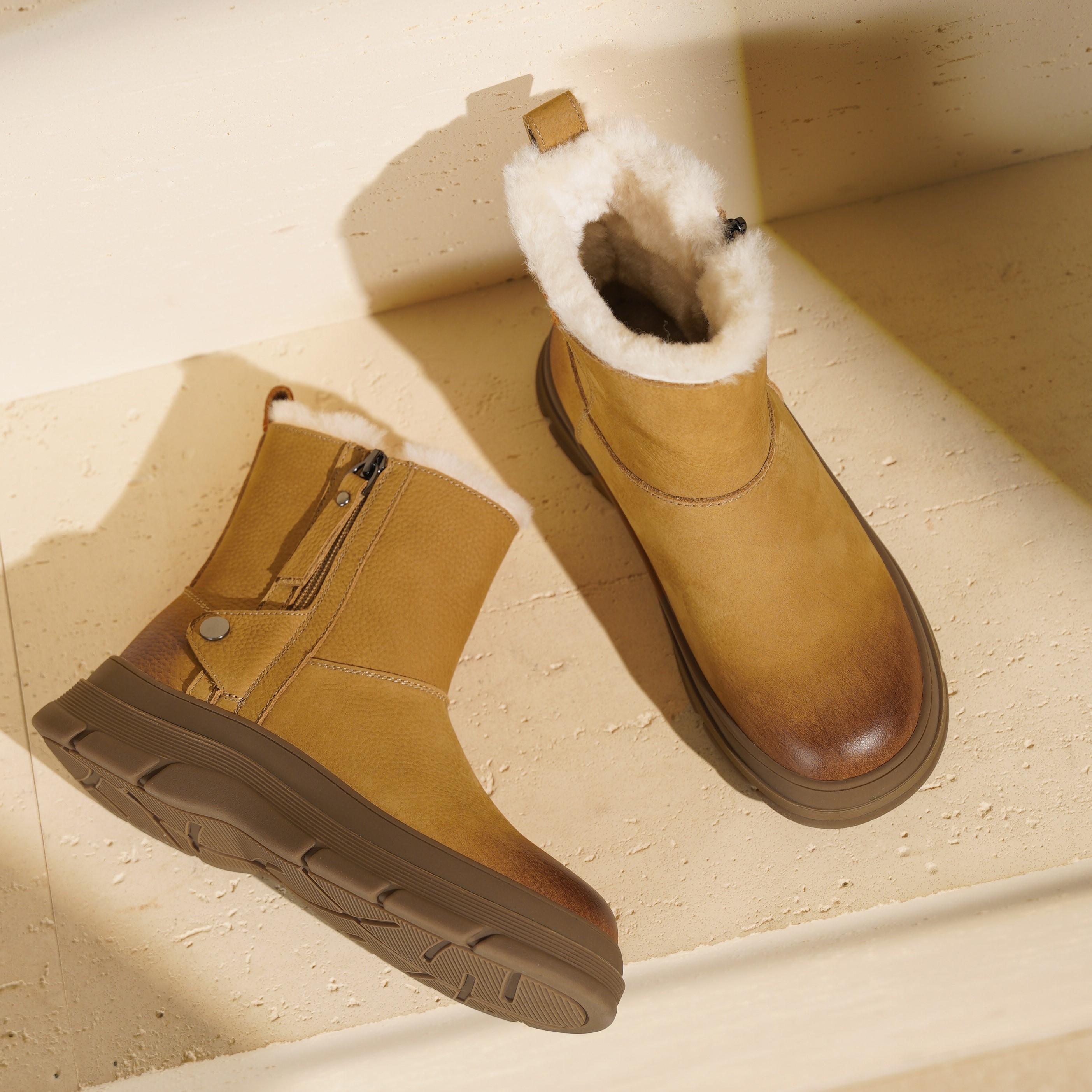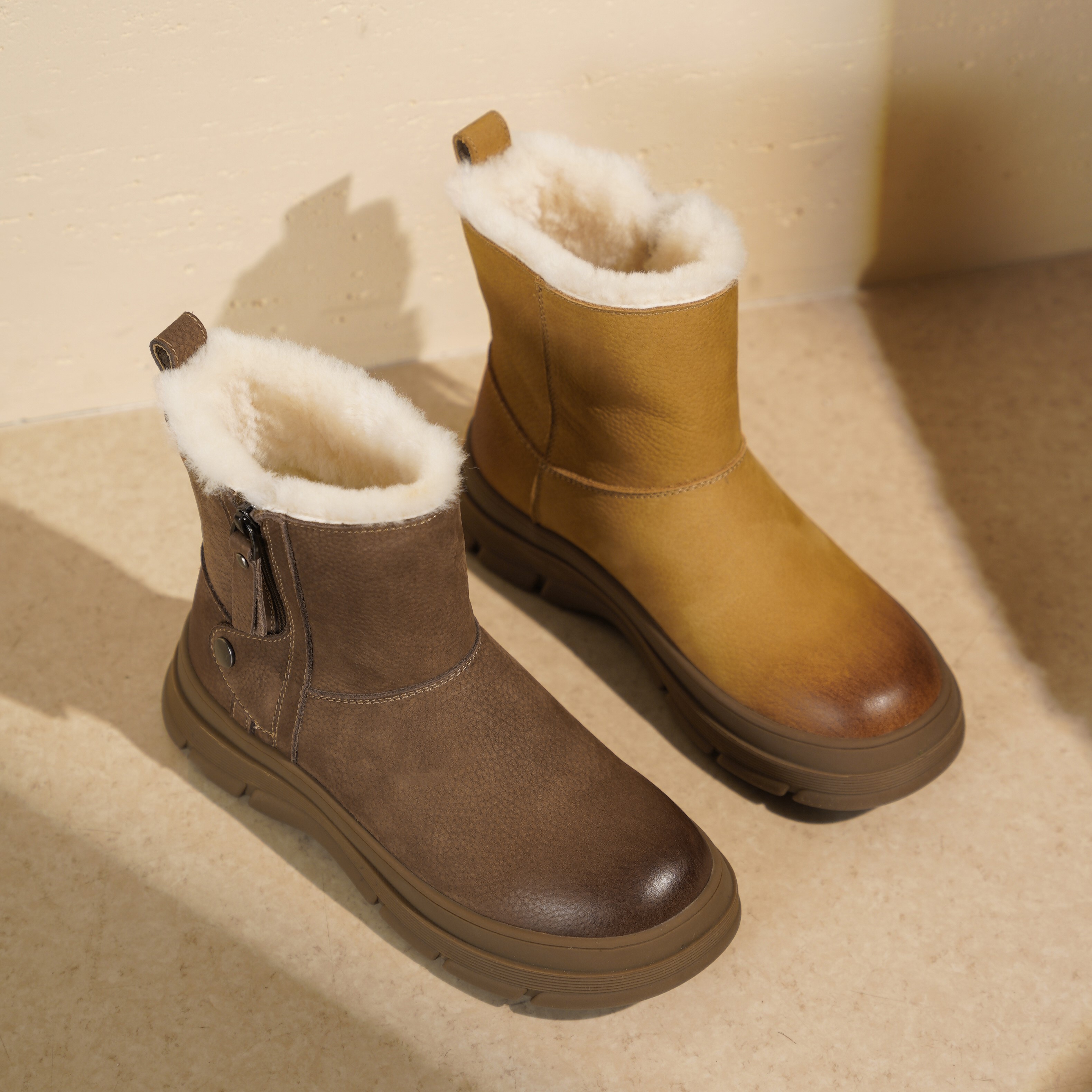 西村名物2025年冬季新款粗高厚底雪地靴百搭短筒女靴休闲舒适毛毛鞋T25DS49401
