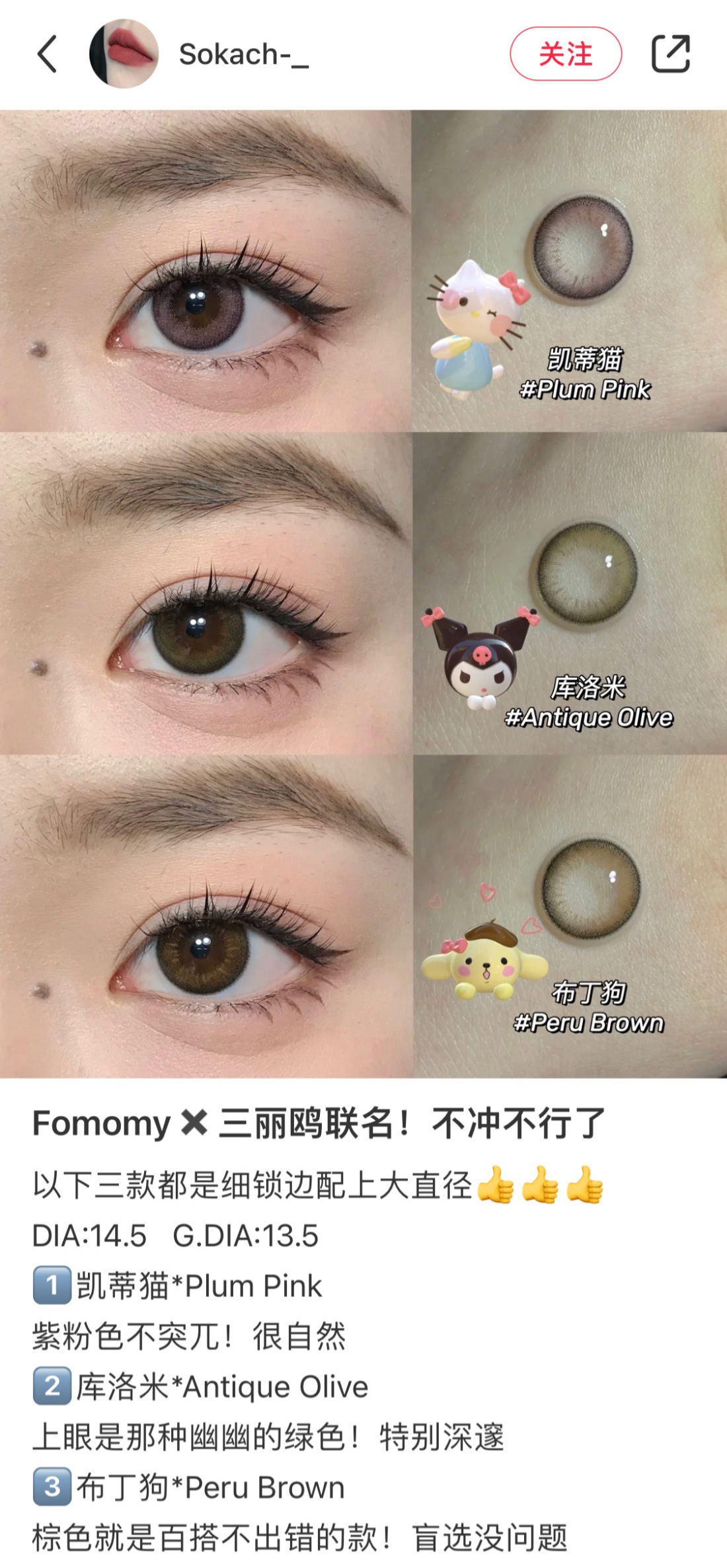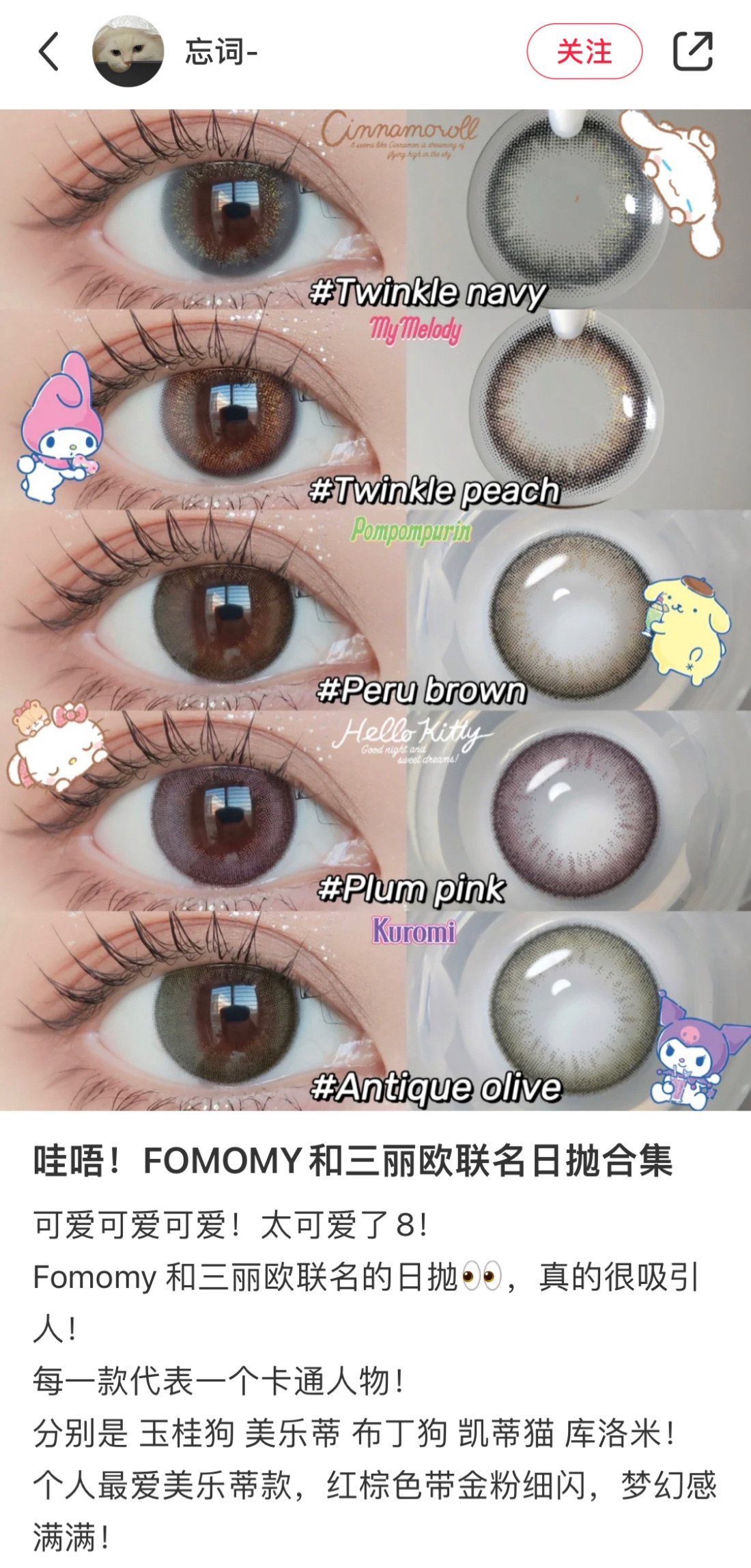 老米优品 【保税仓直发】绝绝子美瞳,JU好看! 《FOMOMY三丽鸥联名款日本美瞳》 日抛10片装,上海保税仓发货!