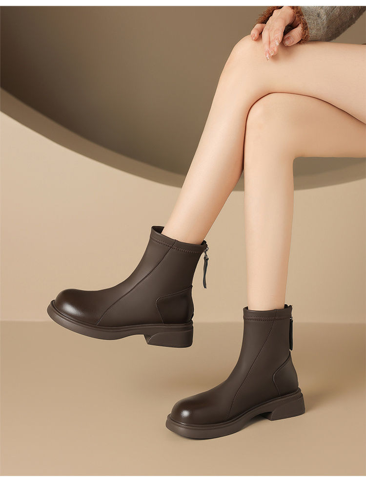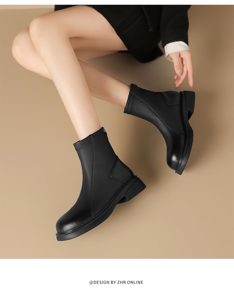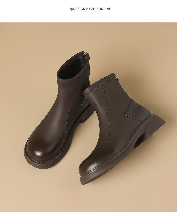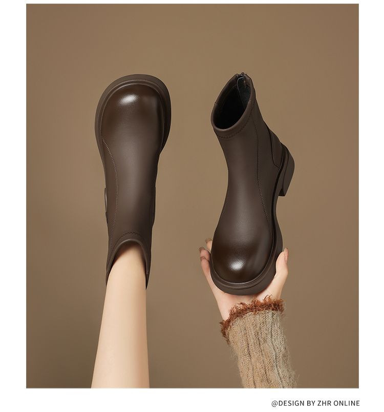 ZHR则则复古气质厚底粗跟短靴女靴2024冬季新款百搭加绒靴子女鞋