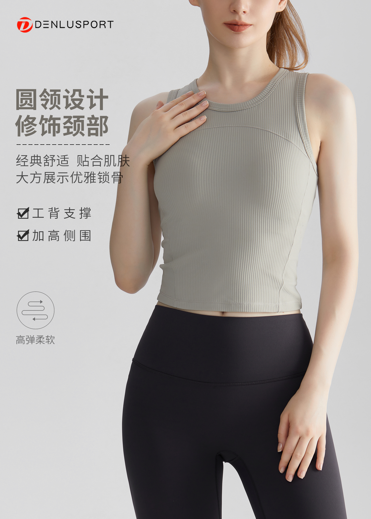 一体式固定杯背心 DY66132#螺纹高弹面料修身显瘦