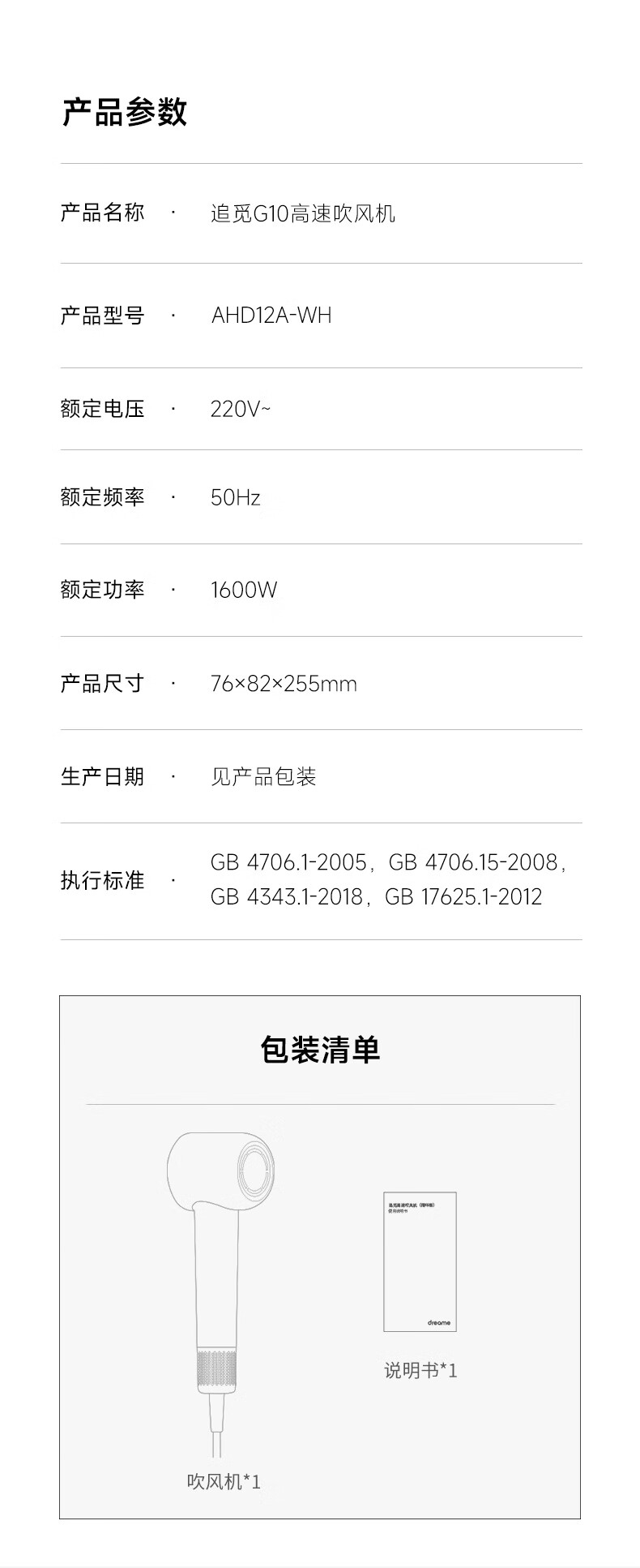 追觅极光SE高速吹风机家用电吹风大功率速干吹风筒负离子大风力低噪音_极光SE-白色【新】