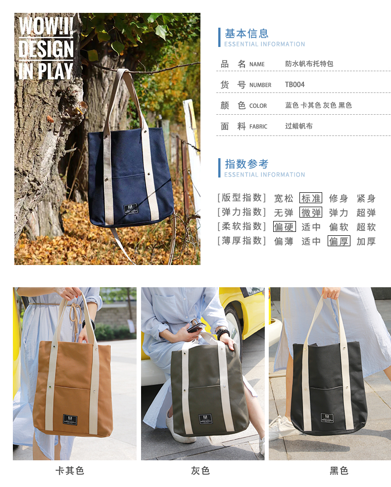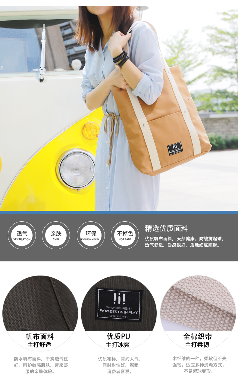 玩物托特包TB004帆布防水包包女包新款学生上课纯色手提布袋包单肩斜挎包