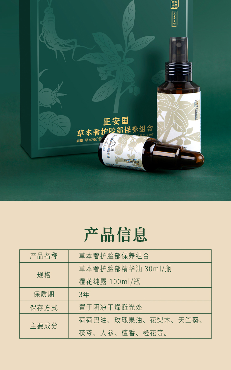正安 草本奢护脸部保养组合 以油养肤抚肤人参入方自然芳香 轻熟龄皮肤皱纹细纹干燥敏感女性礼物 中式护肤品 面部精华油30ml+橙花纯露100ml