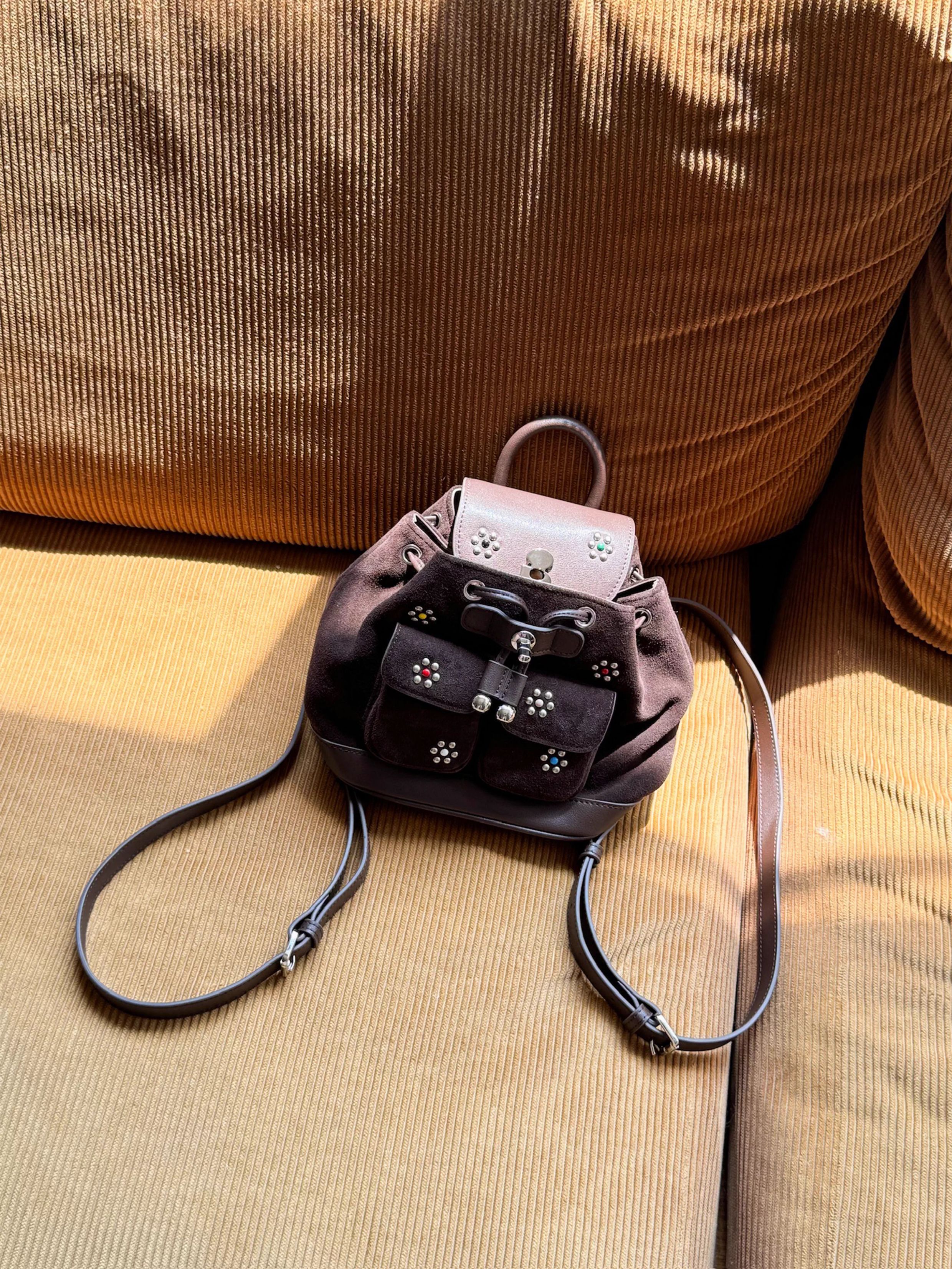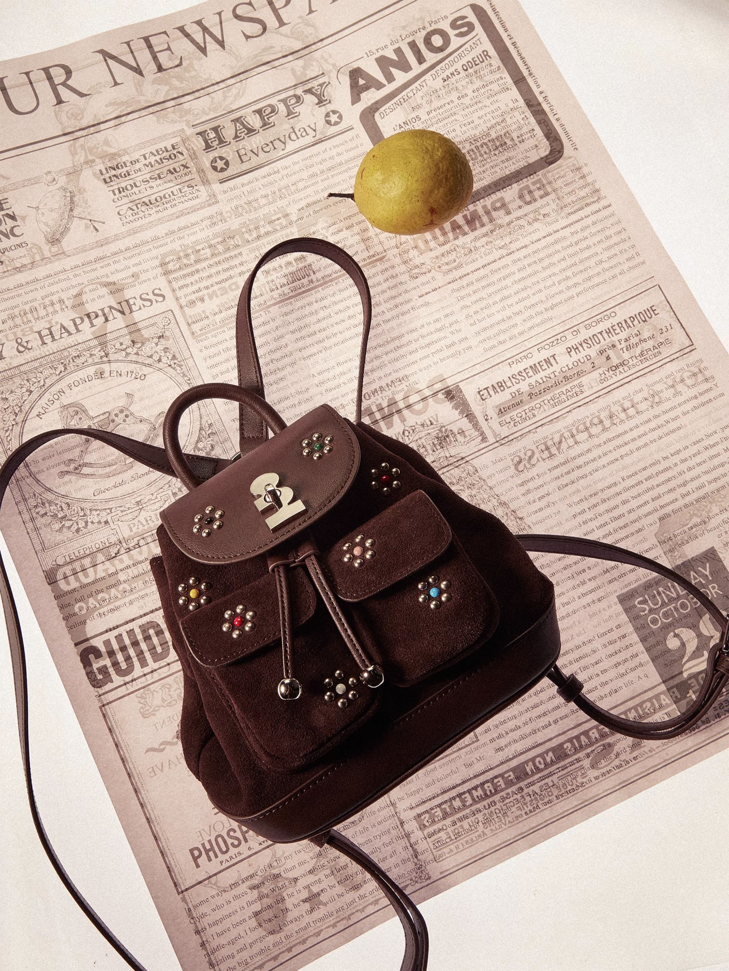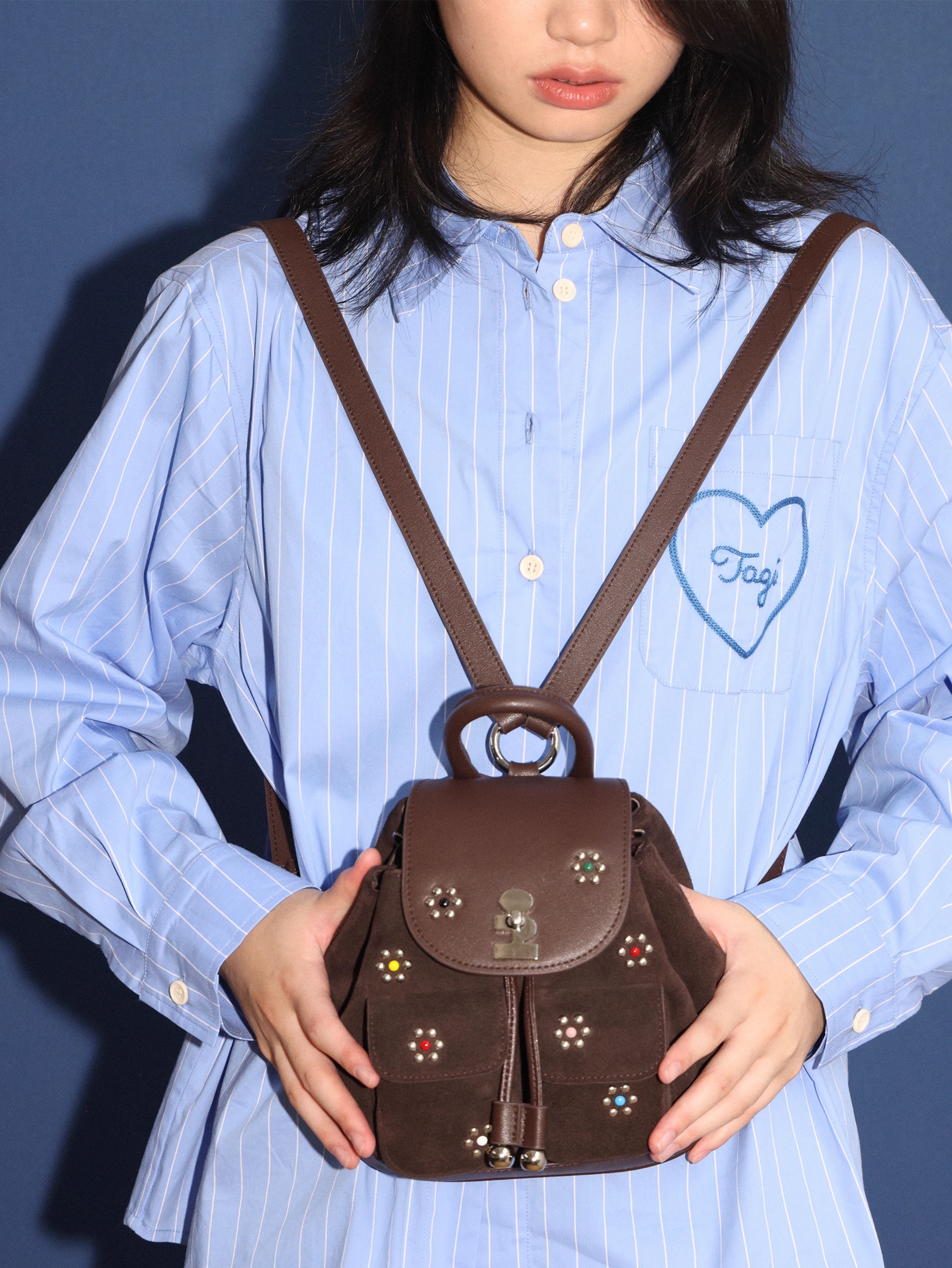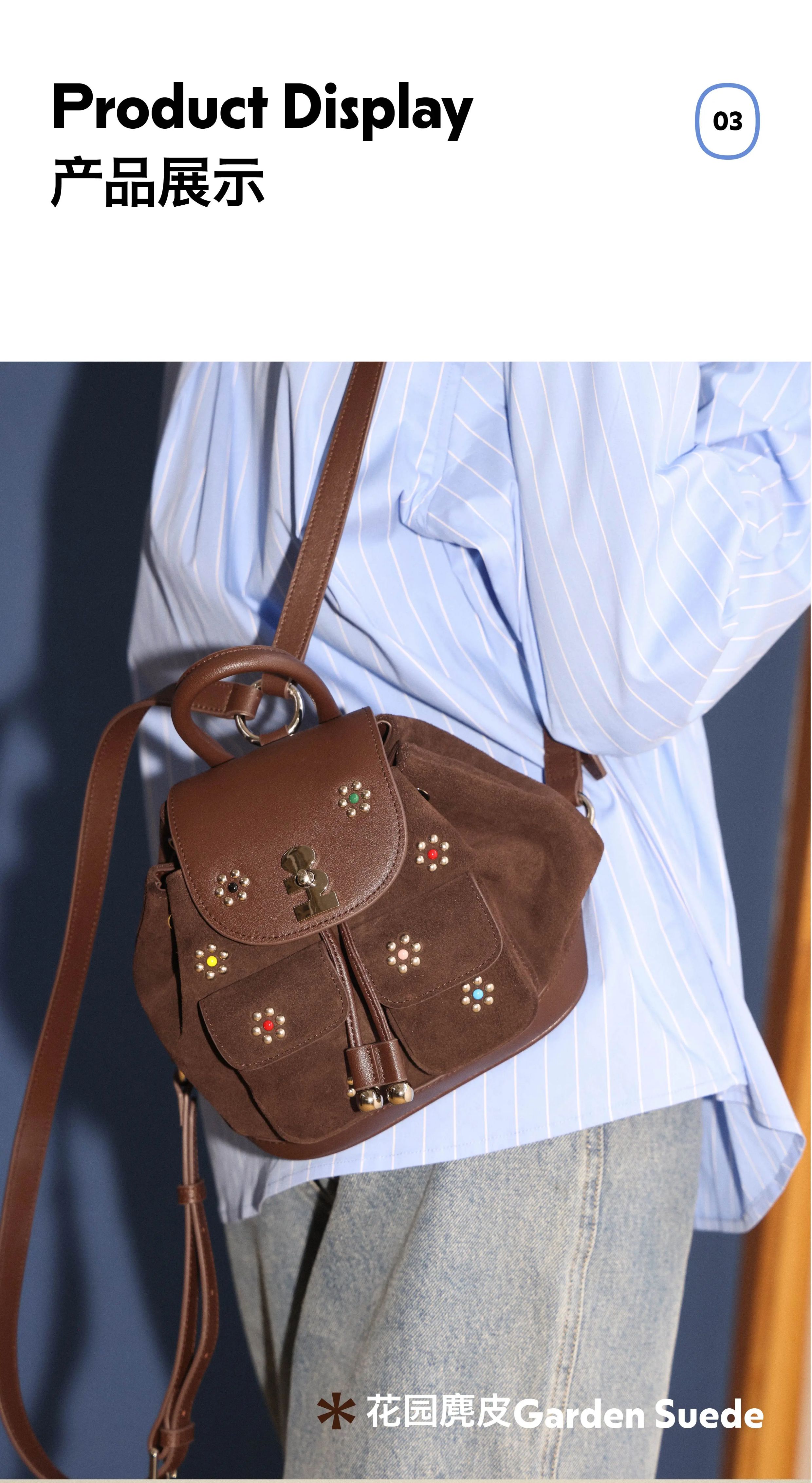 Tagi怦怦小花铆钉束口双肩包 花园麂皮