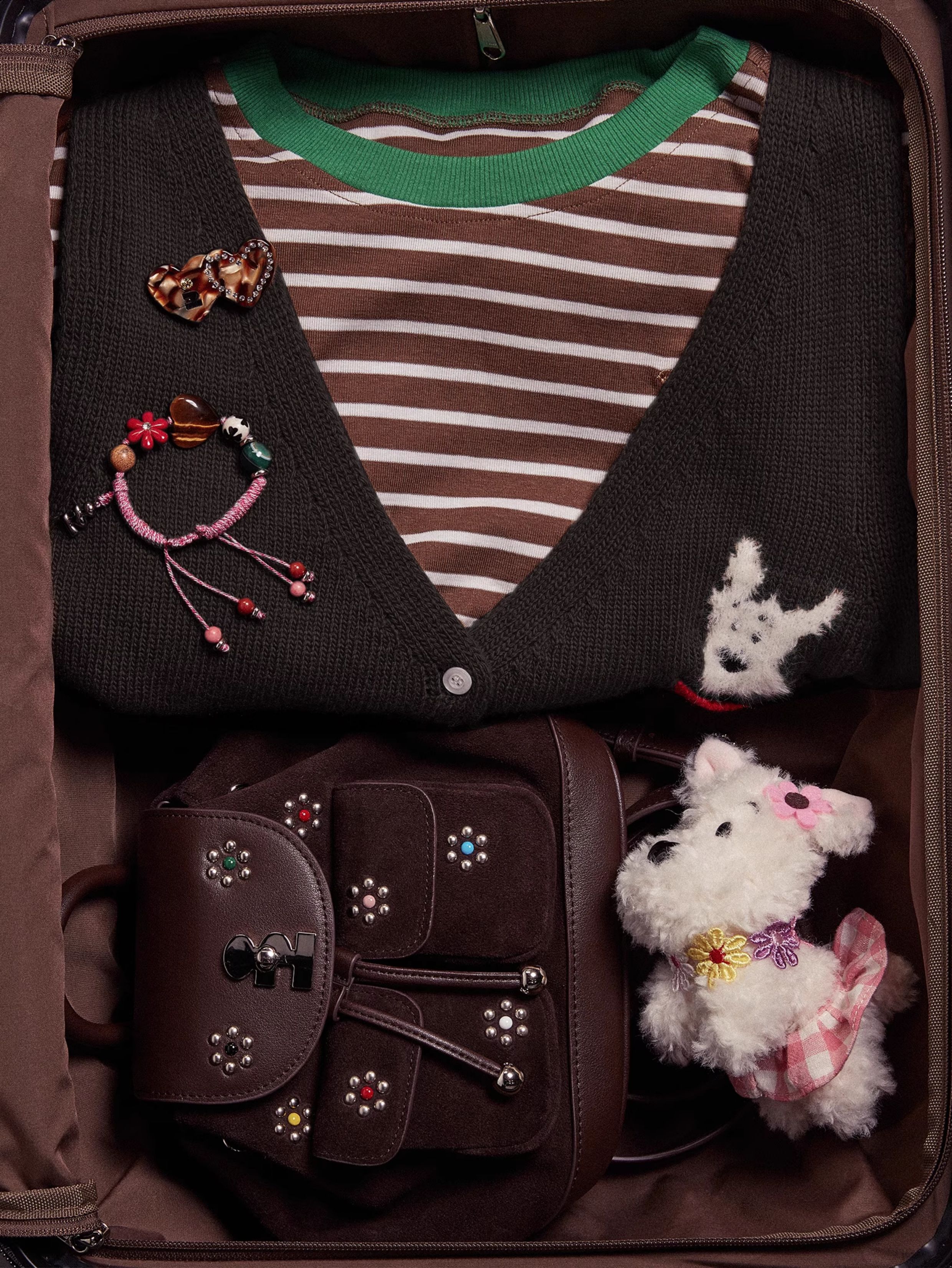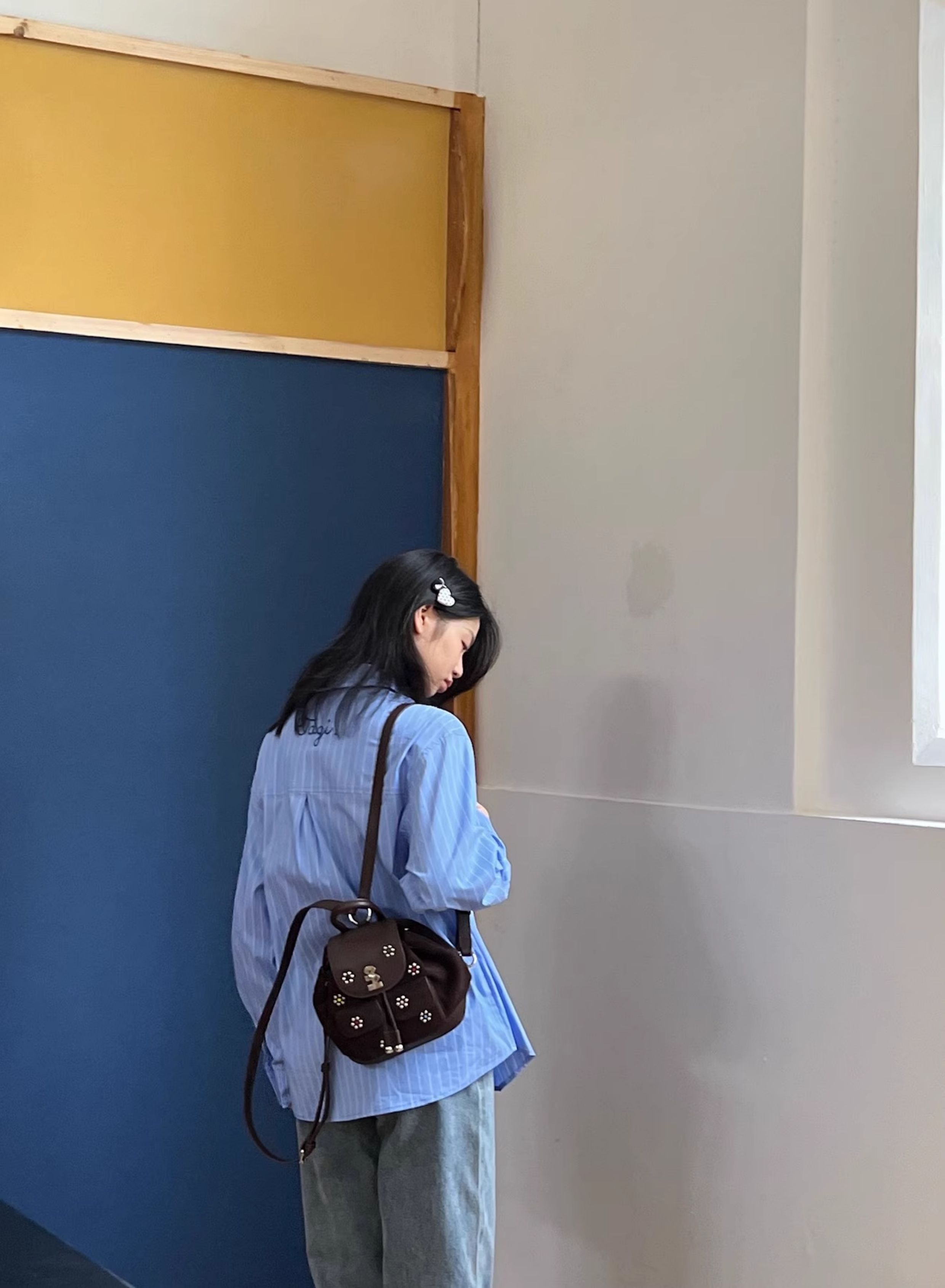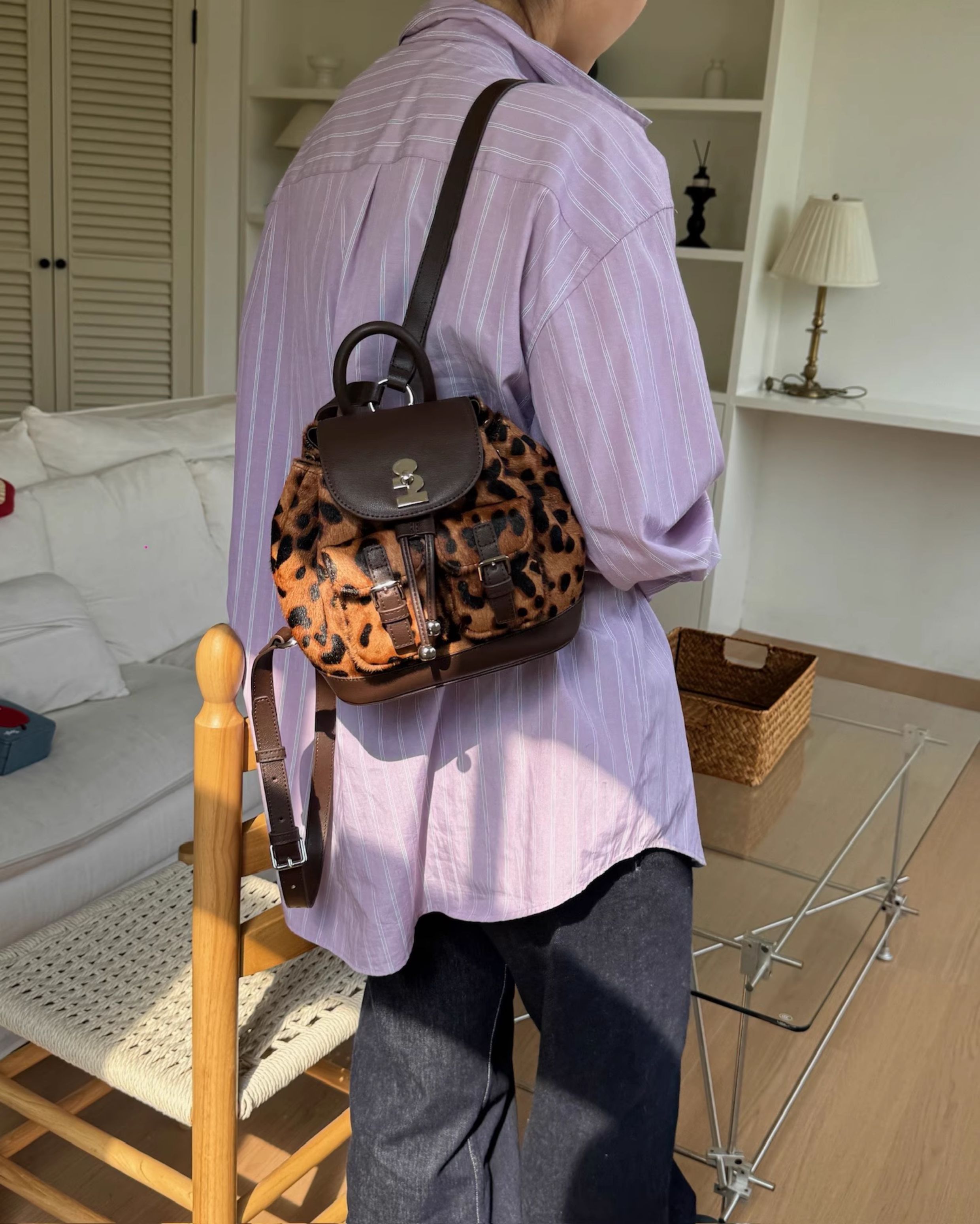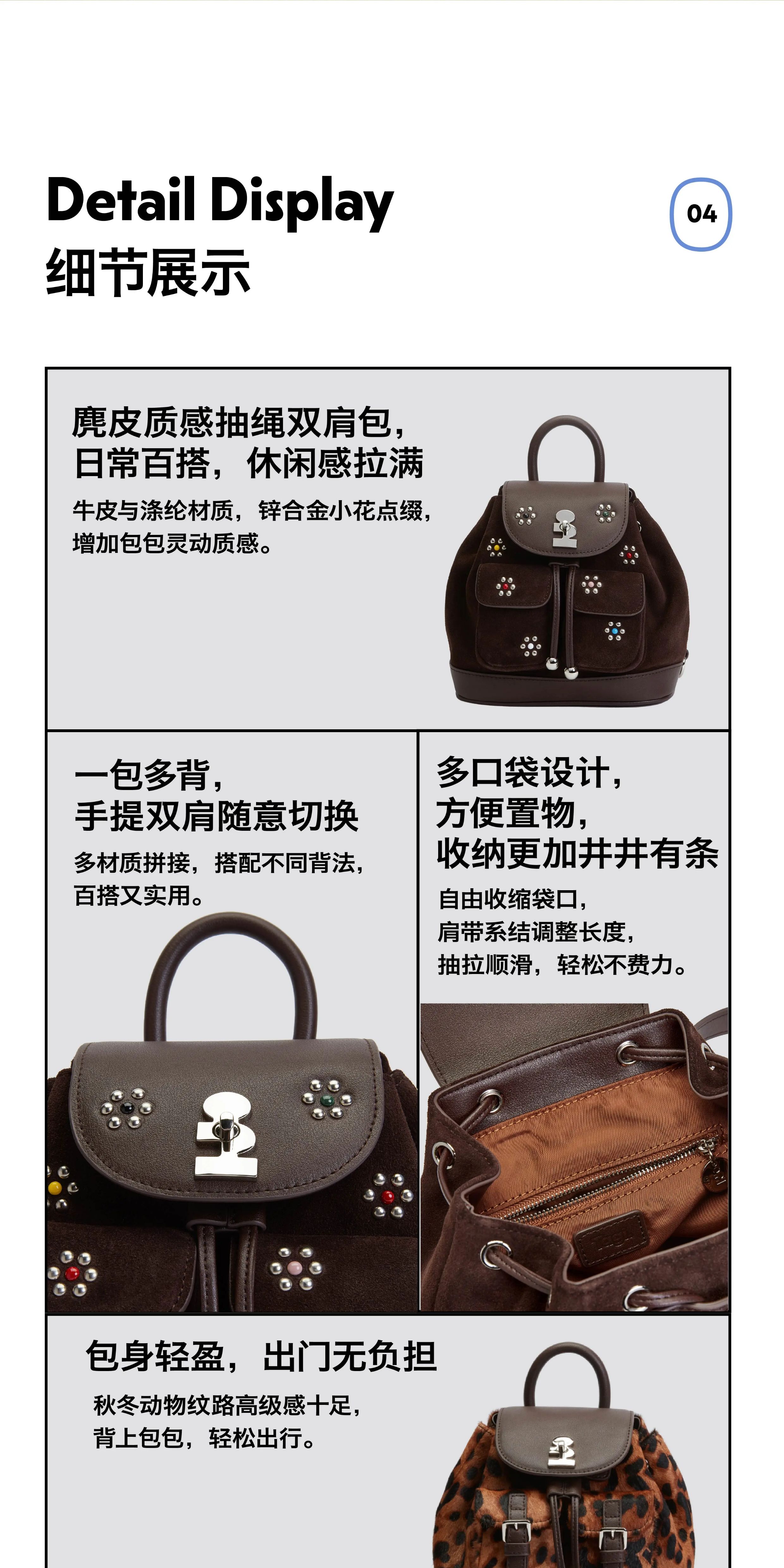 Tagi怦怦小花铆钉束口双肩包 花园麂皮