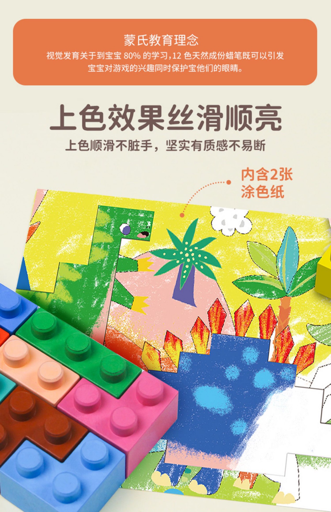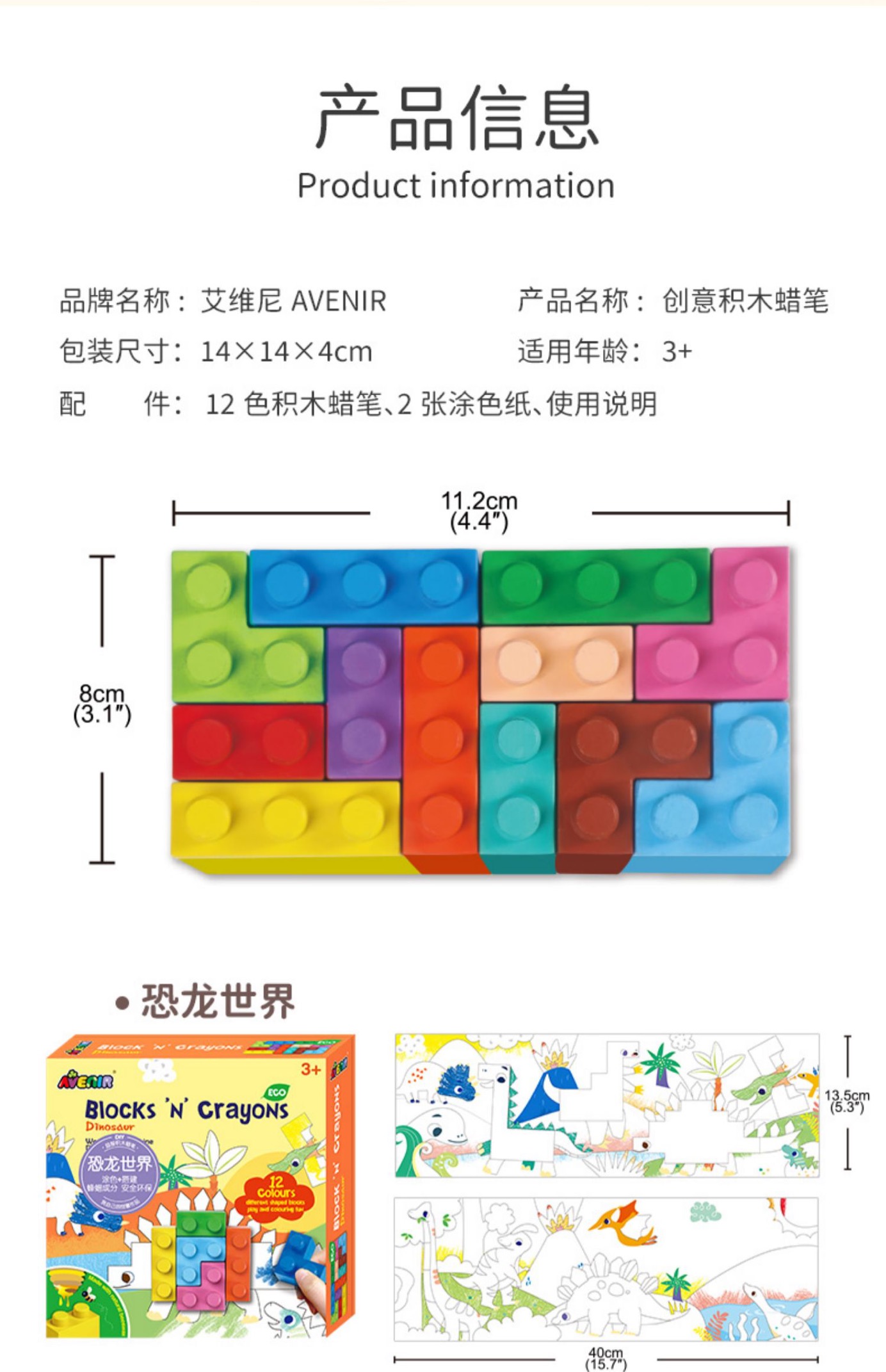 德国avenir儿童积木蜡笔不脏手涂鸦笔