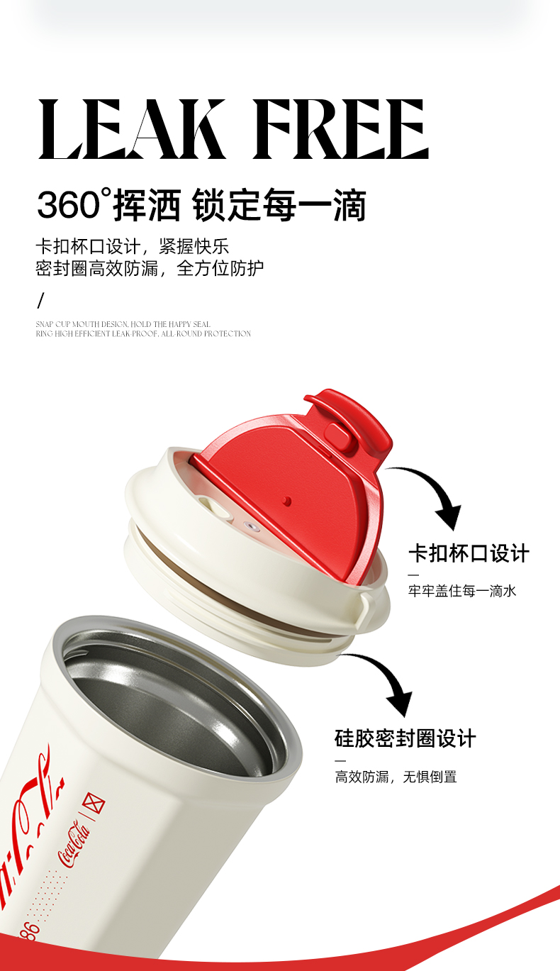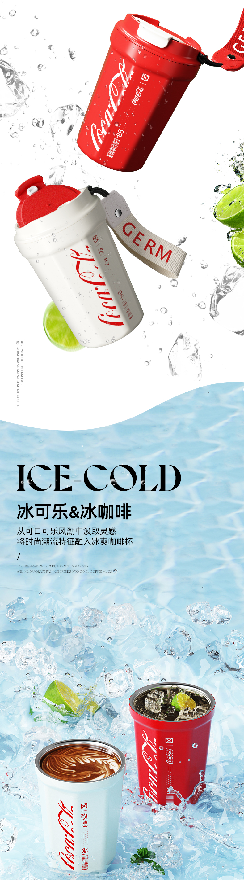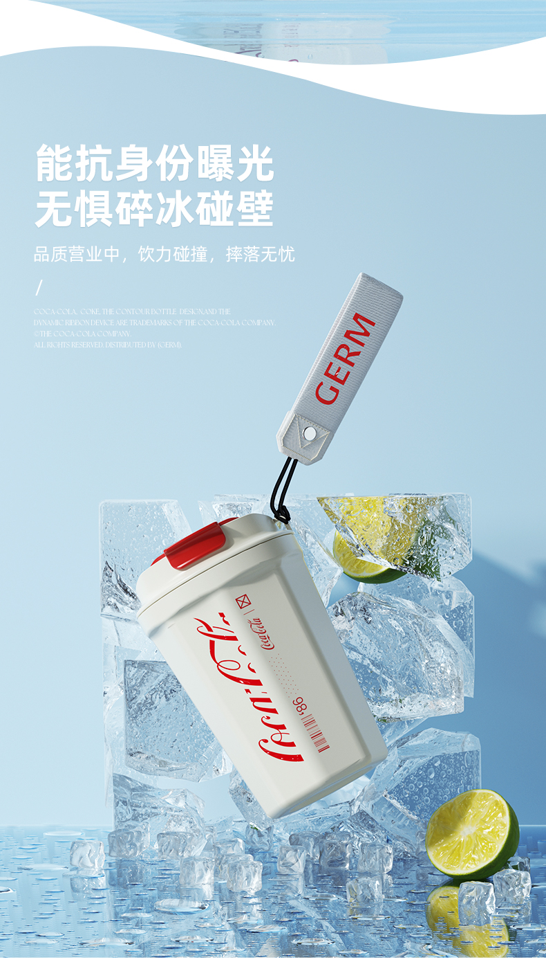 格沵可口可乐菱形咖啡杯390ml格沵(GERM)可口可乐联名咖啡杯高颜值女便携美式随行杯男士车载大容量保温杯