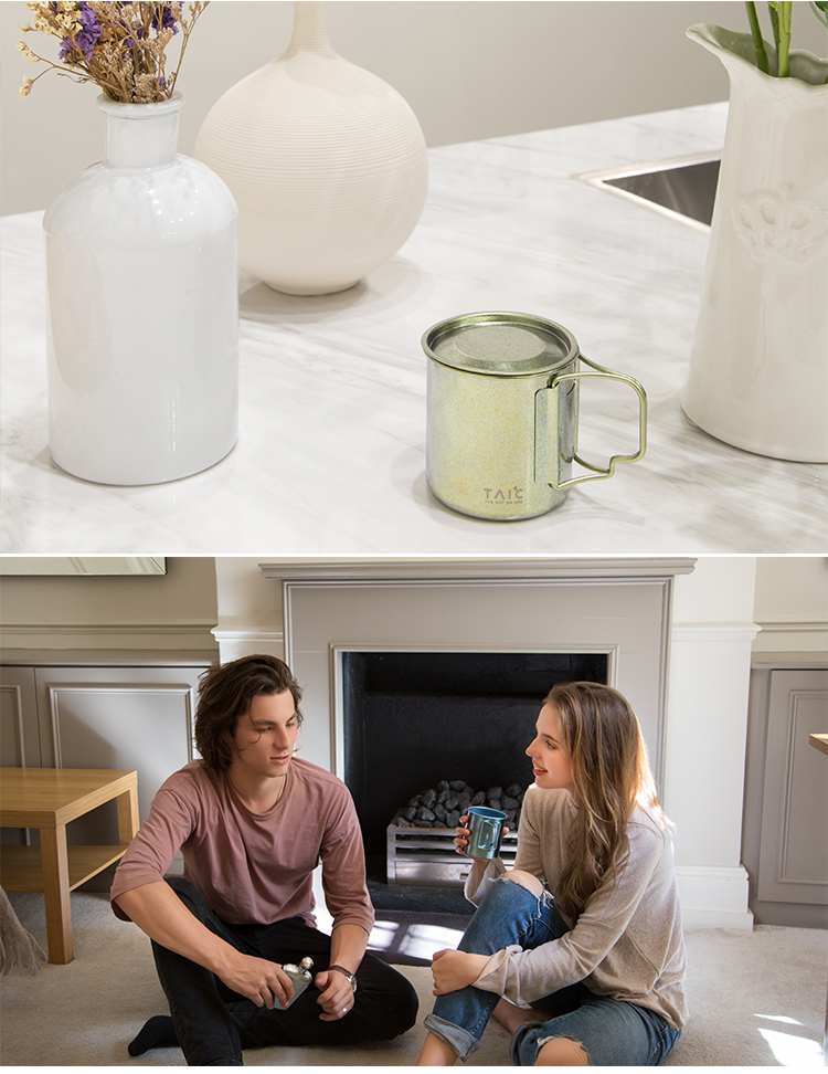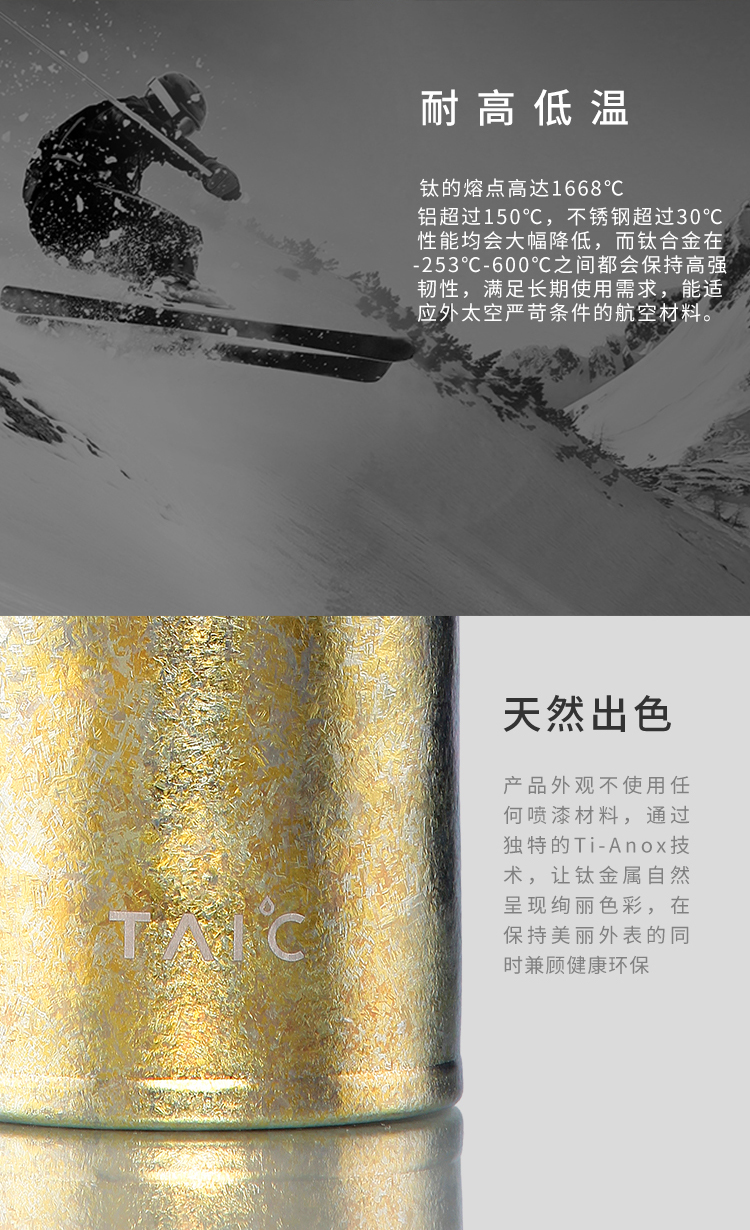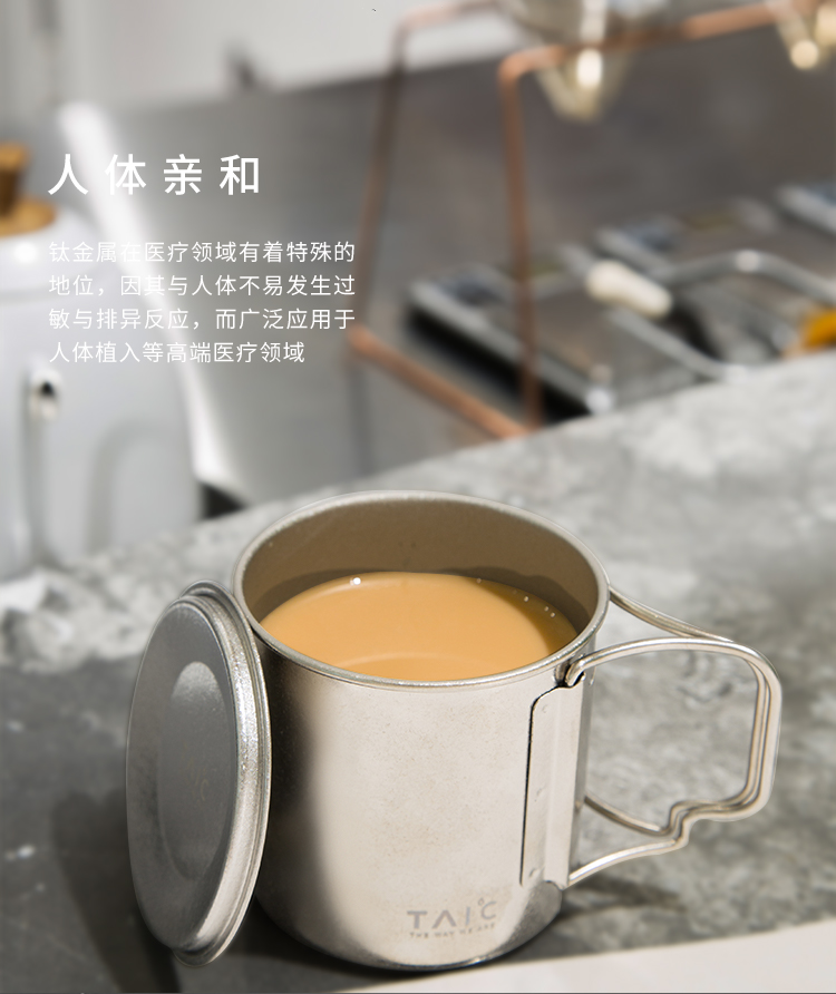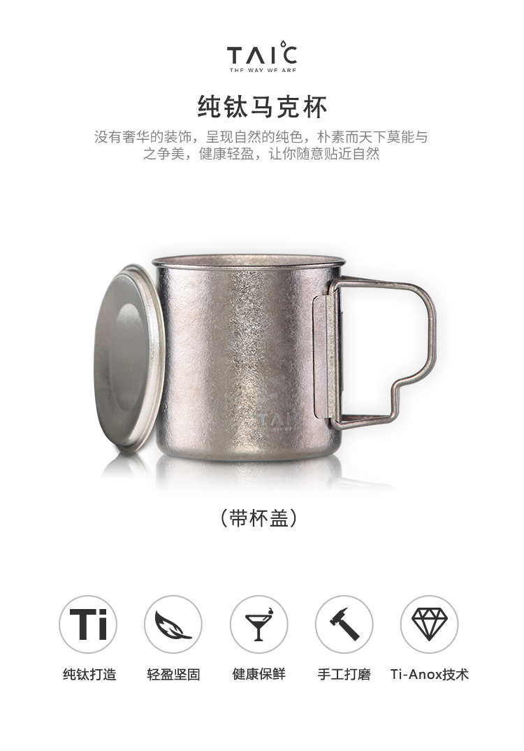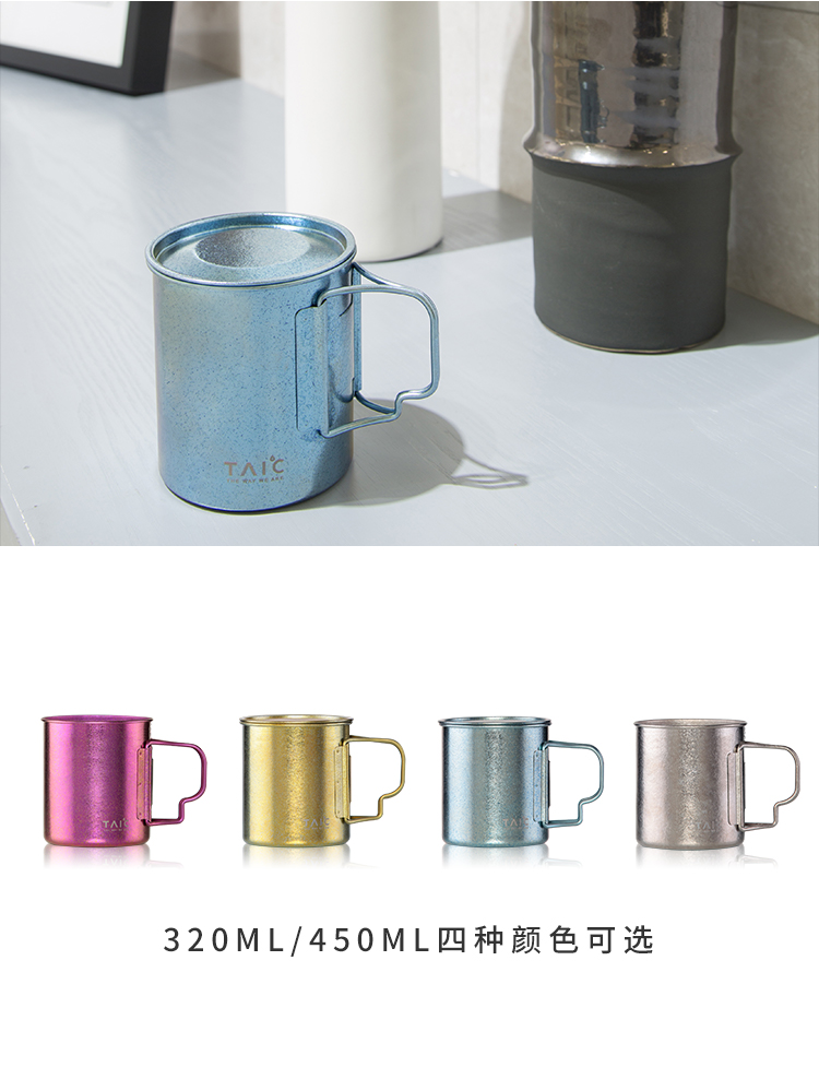 钛度TAIC纯钛马克杯B0329-1605大容量茶杯咖啡杯带手柄便携随手杯牛奶杯