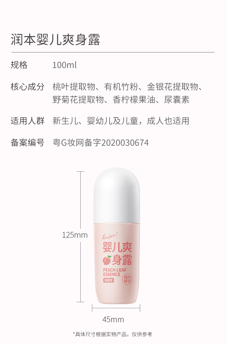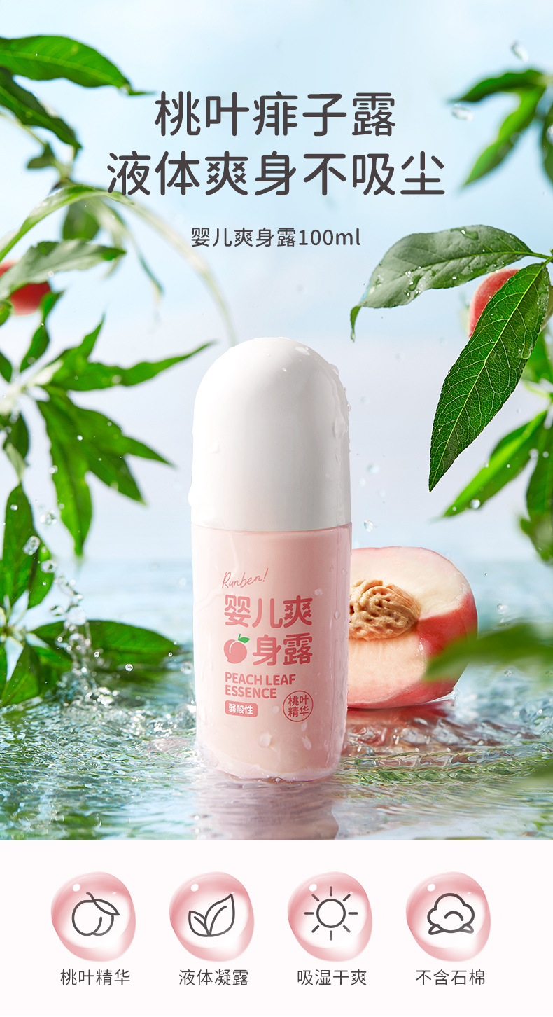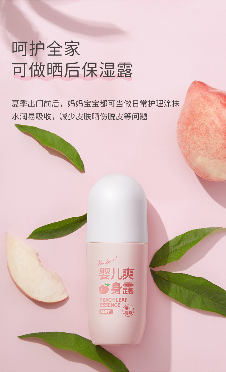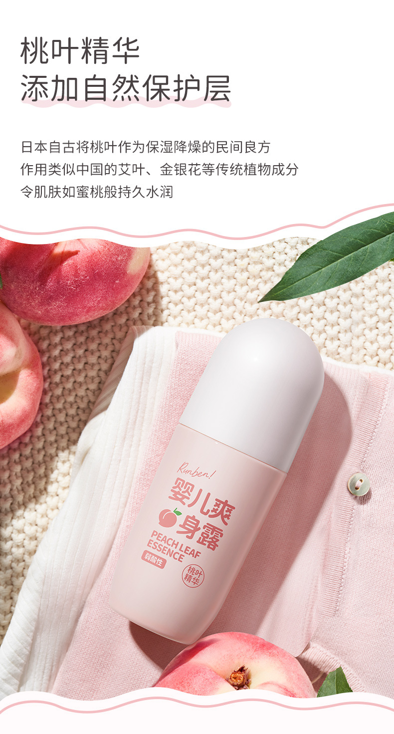 润本桃子水婴儿专用爽身露新生宝宝液体爽身粉桃叶精华水舒缓保湿