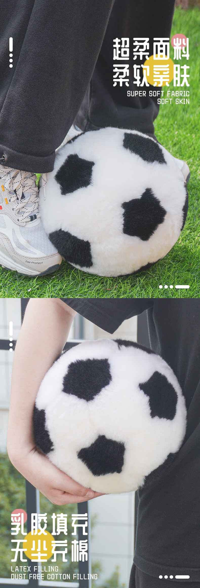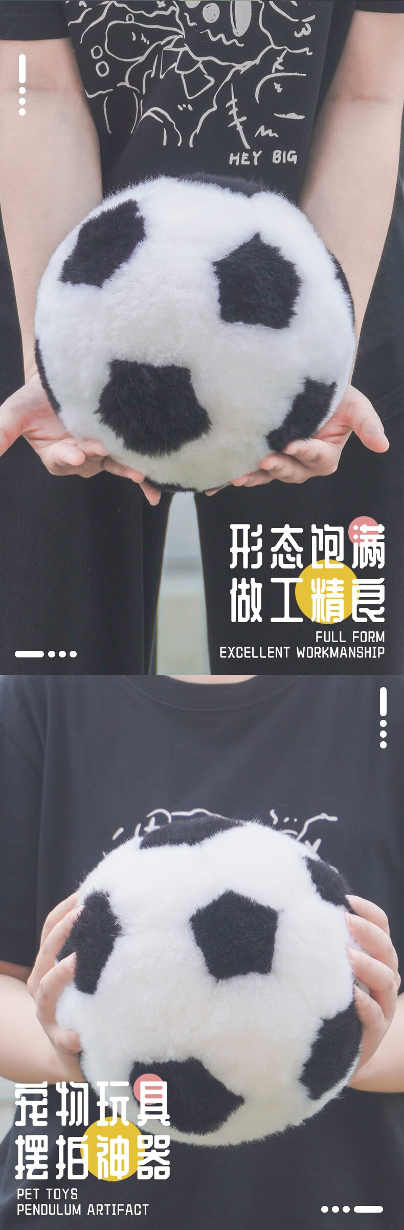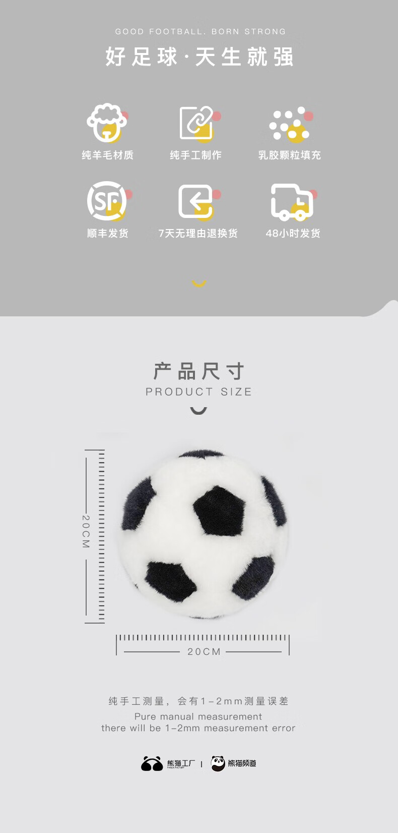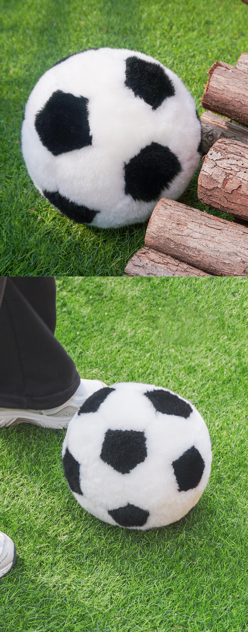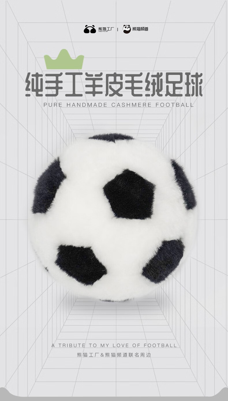 熊猫工厂 仿真玩偶 羊皮毛足球 原创纯手工缝制羊毛皮黑白毛绒足球玩具宠物儿童宝宝玩具摆拍道具 黑色 20*20