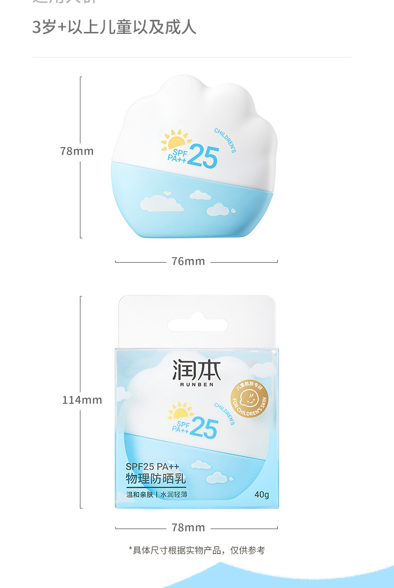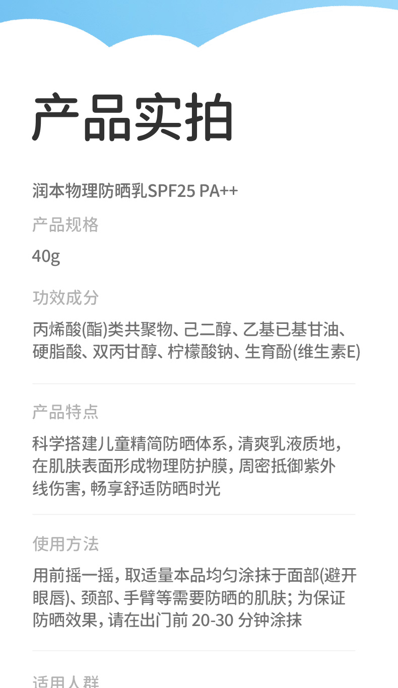 【福利秒杀】润本物理防晒乳40g/瓶 专为3岁+儿童研发 温和不闷肤 防水防汗