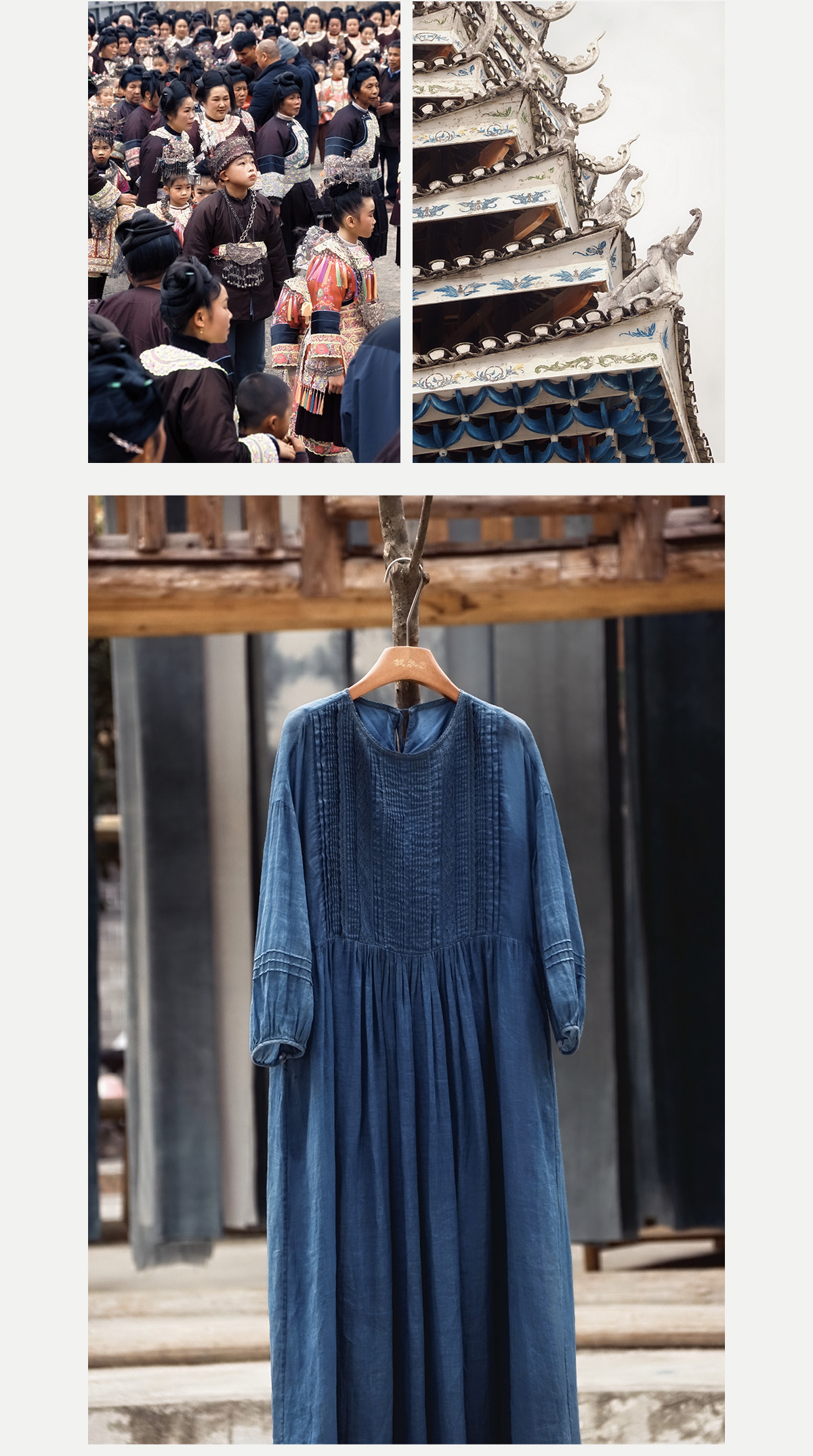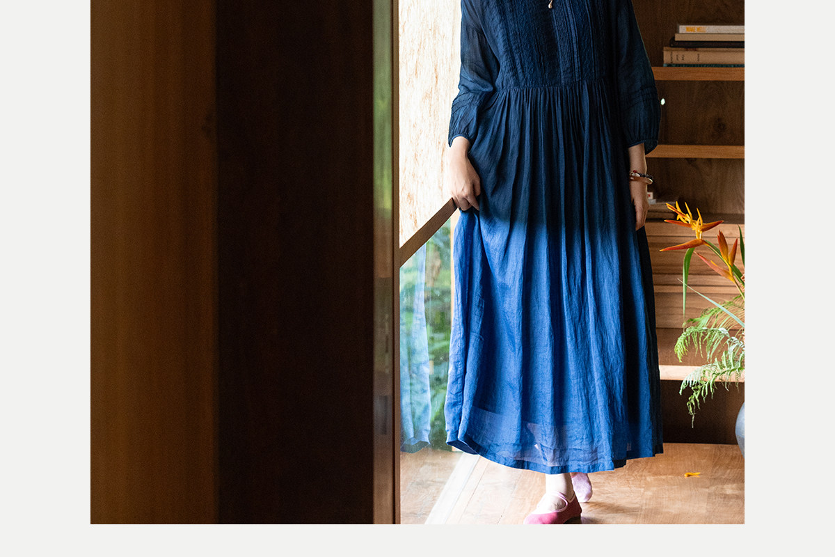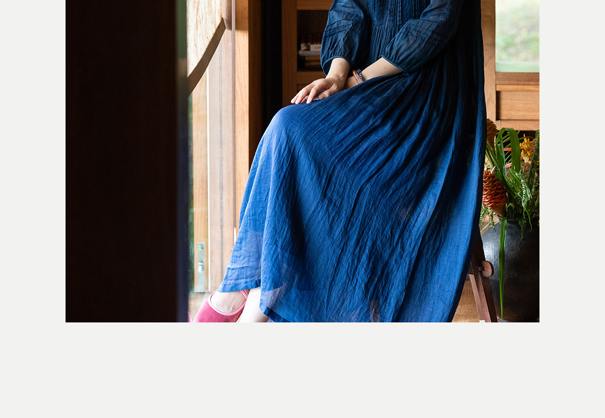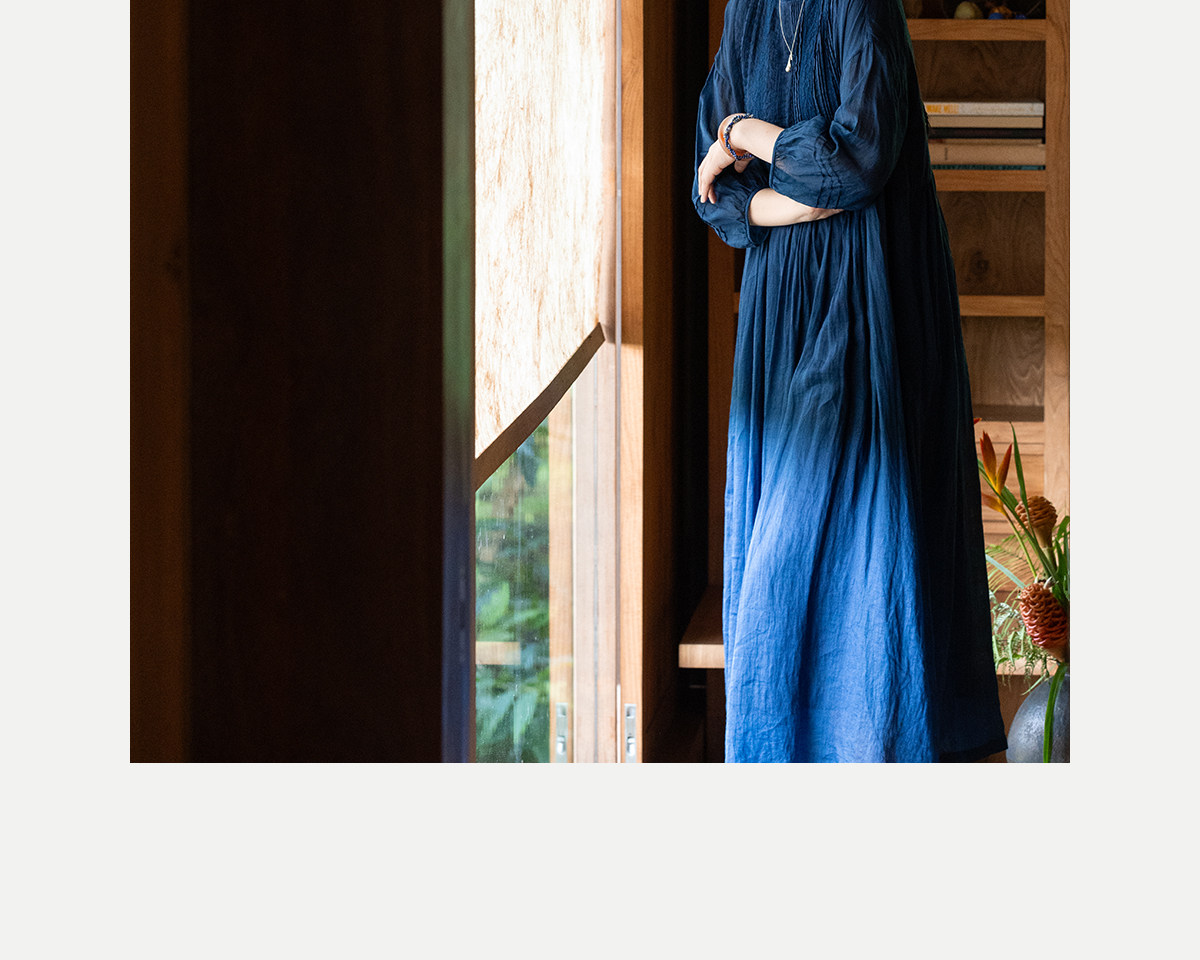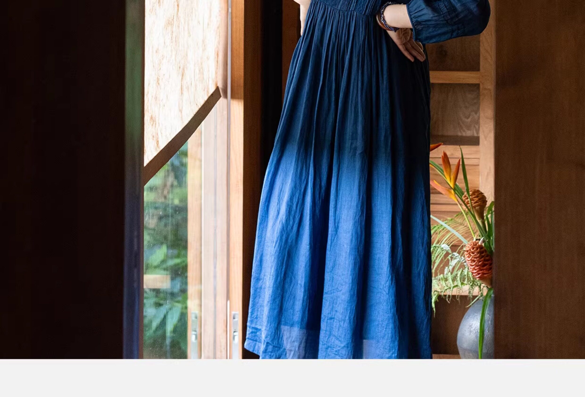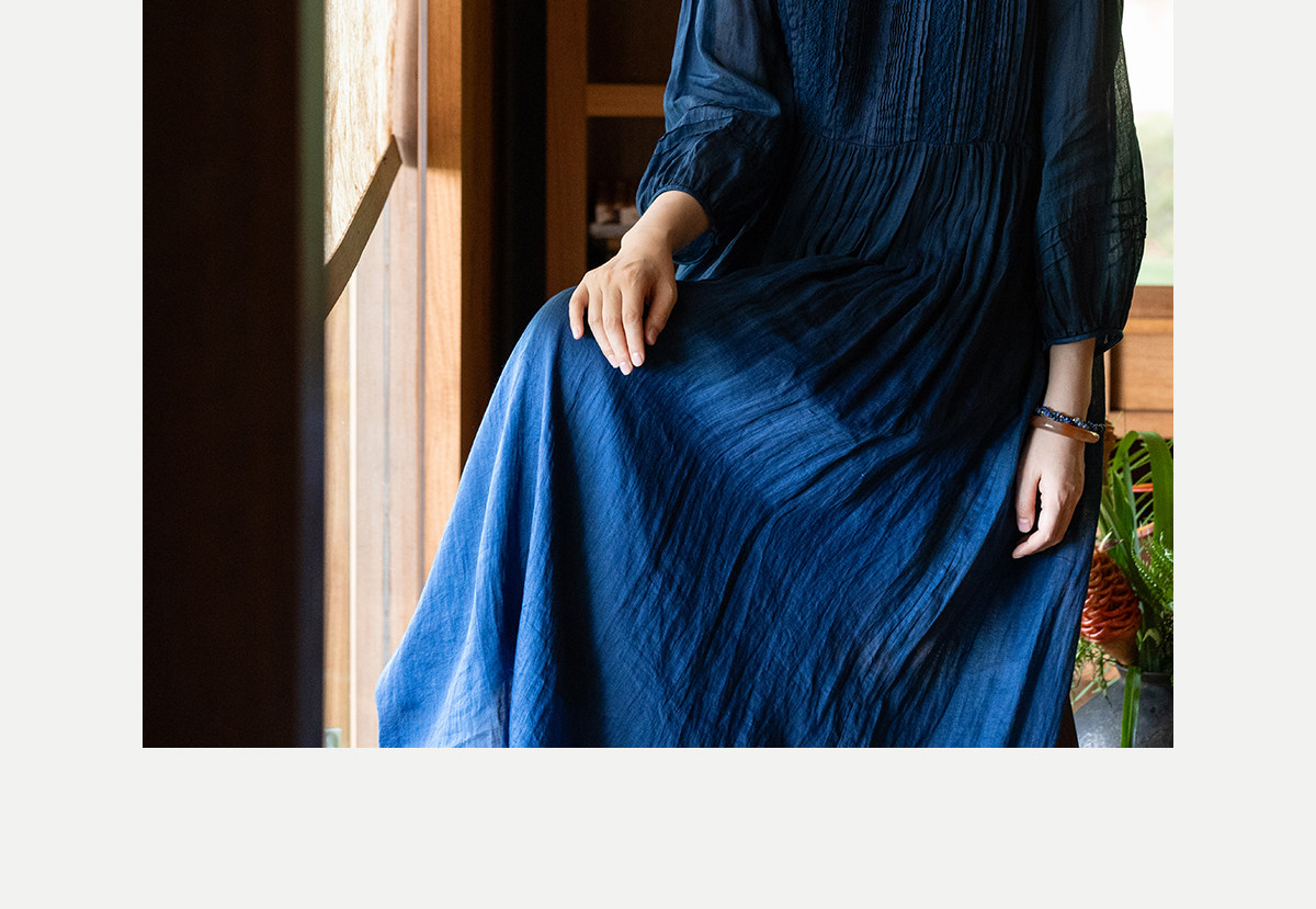 艺术家联名款 牧衣游靛蓝染苎麻连衣裙 福利款 杏苡不支持会员折