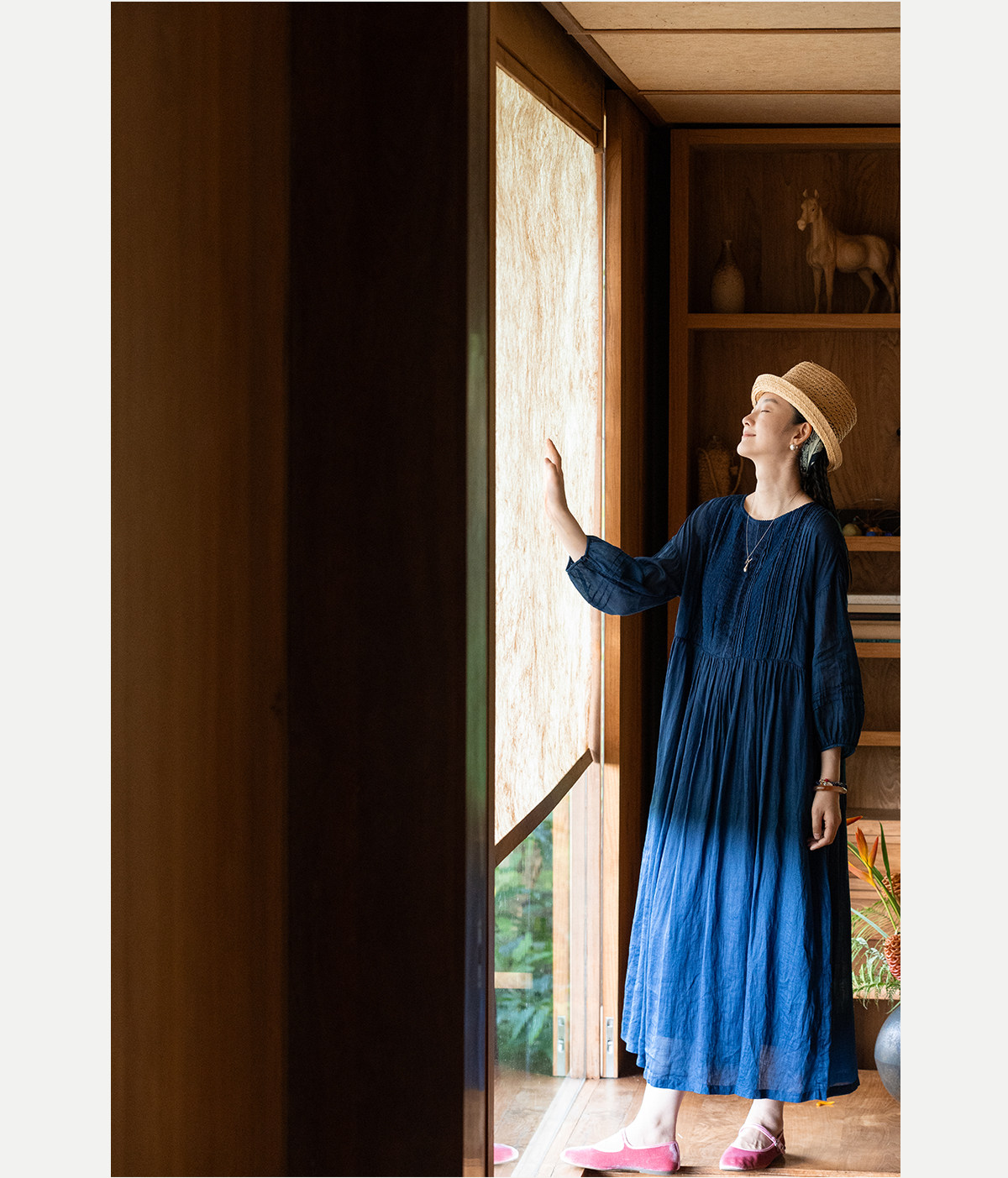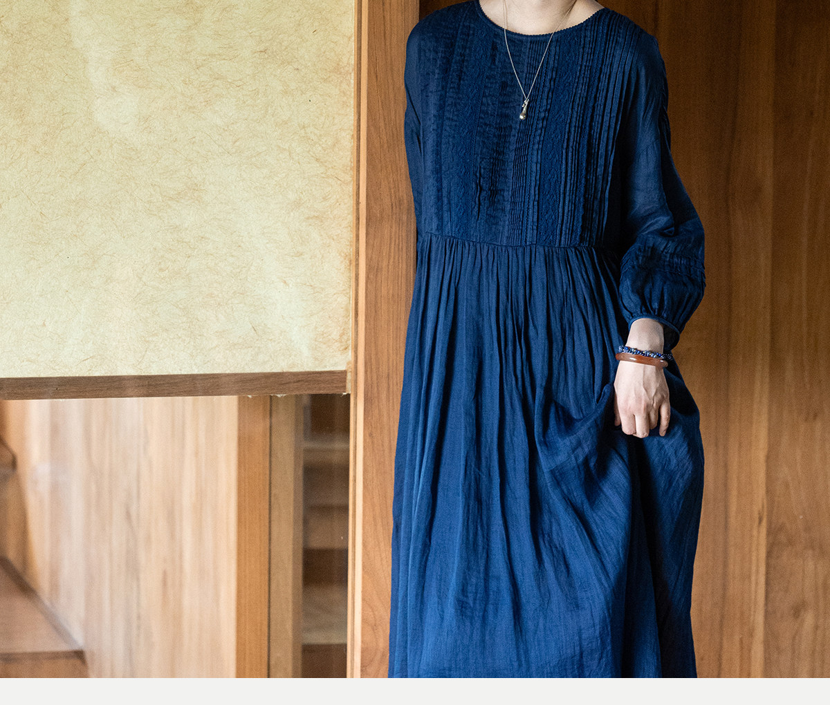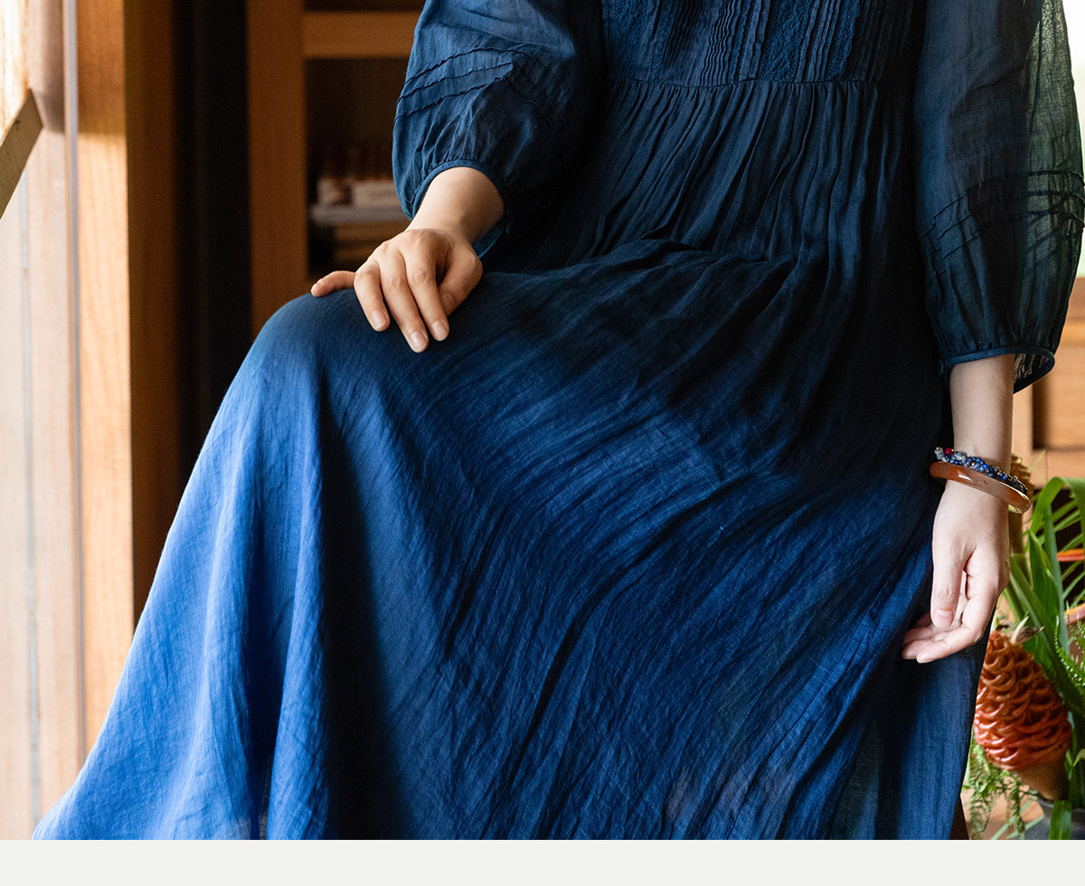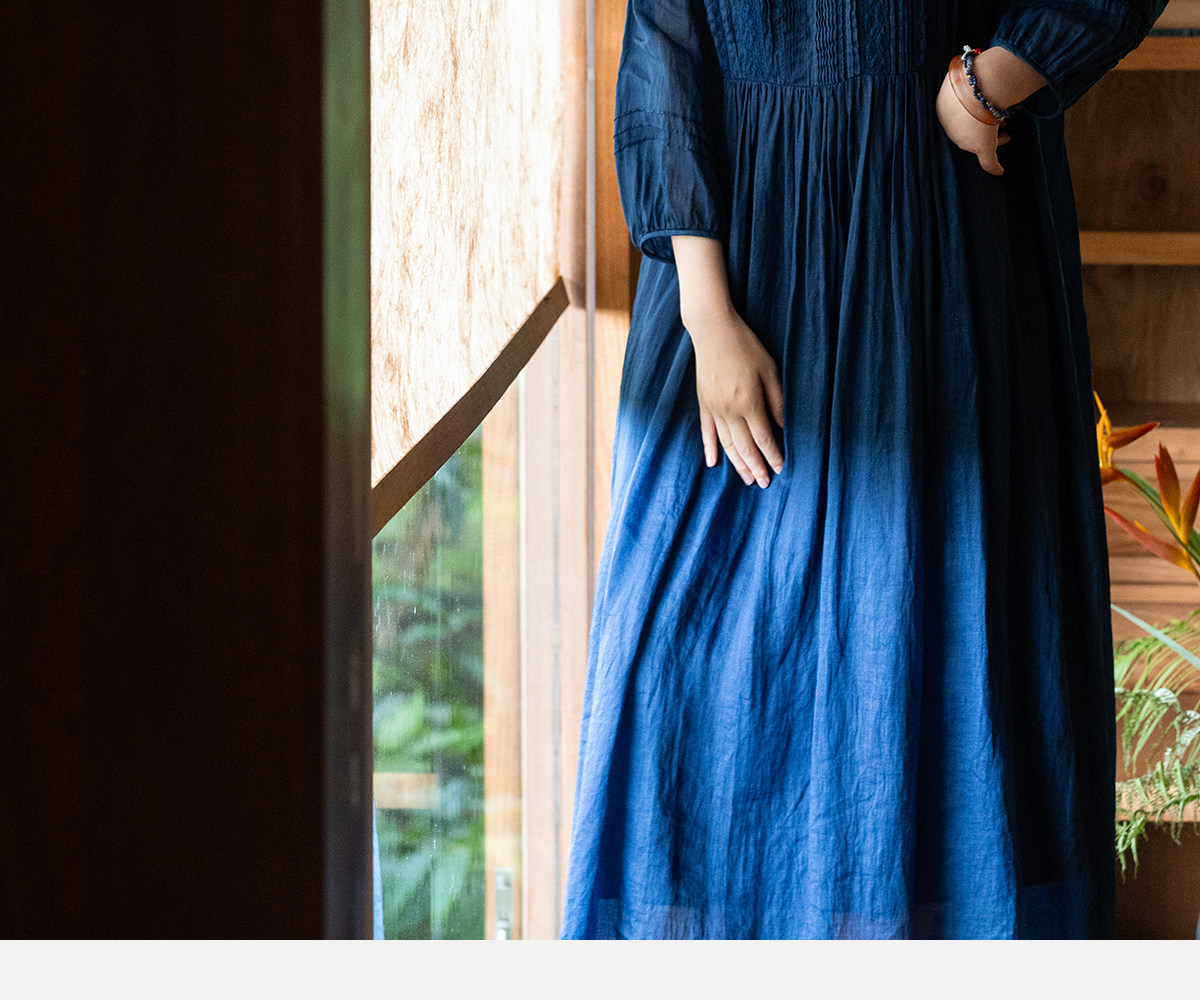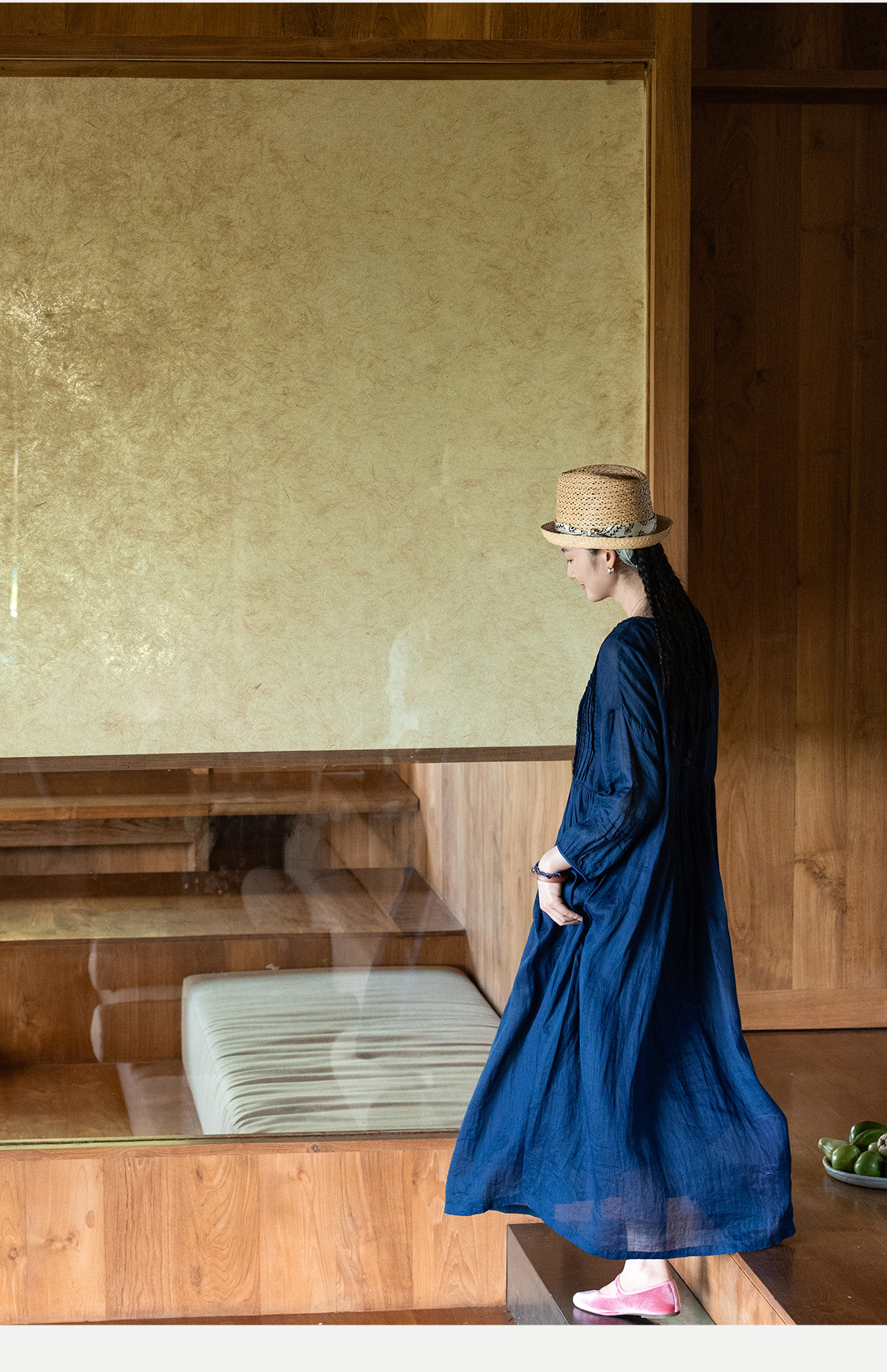 艺术家联名款 牧衣游靛蓝染苎麻连衣裙 福利款 杏苡不支持会员折
