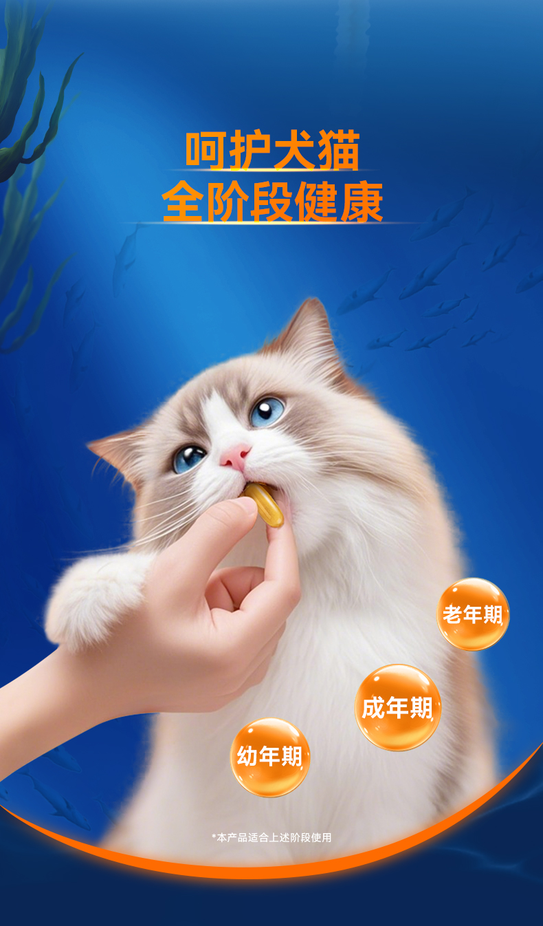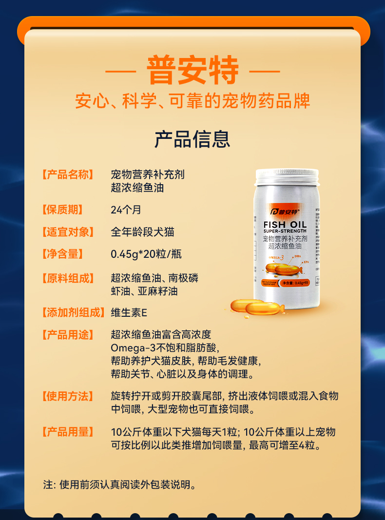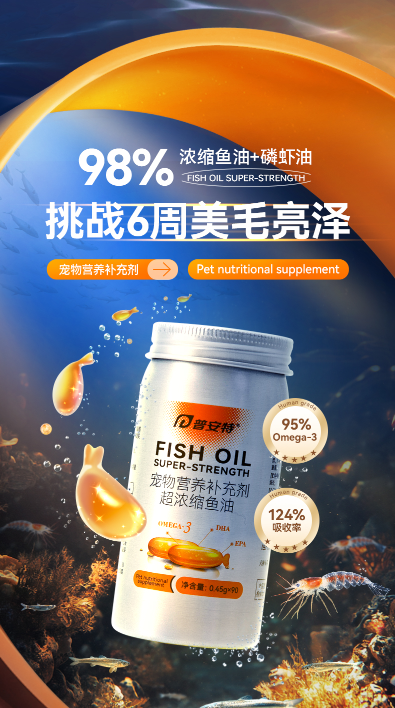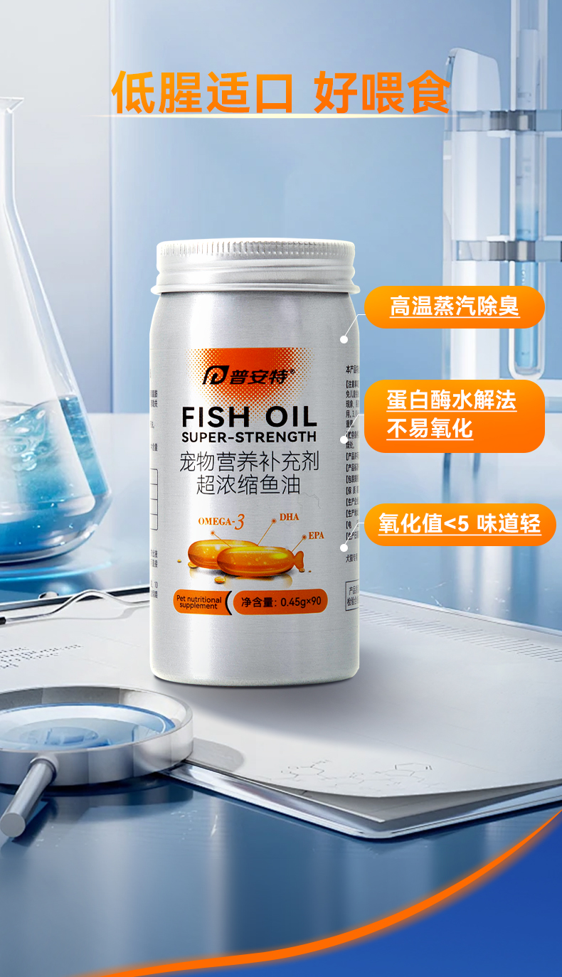 普安特深超浓缩鱼油猫用狗狗猫咪专用防掉毛美毛卵磷脂宠物鱼油90粒装【保质期至2026年7月】