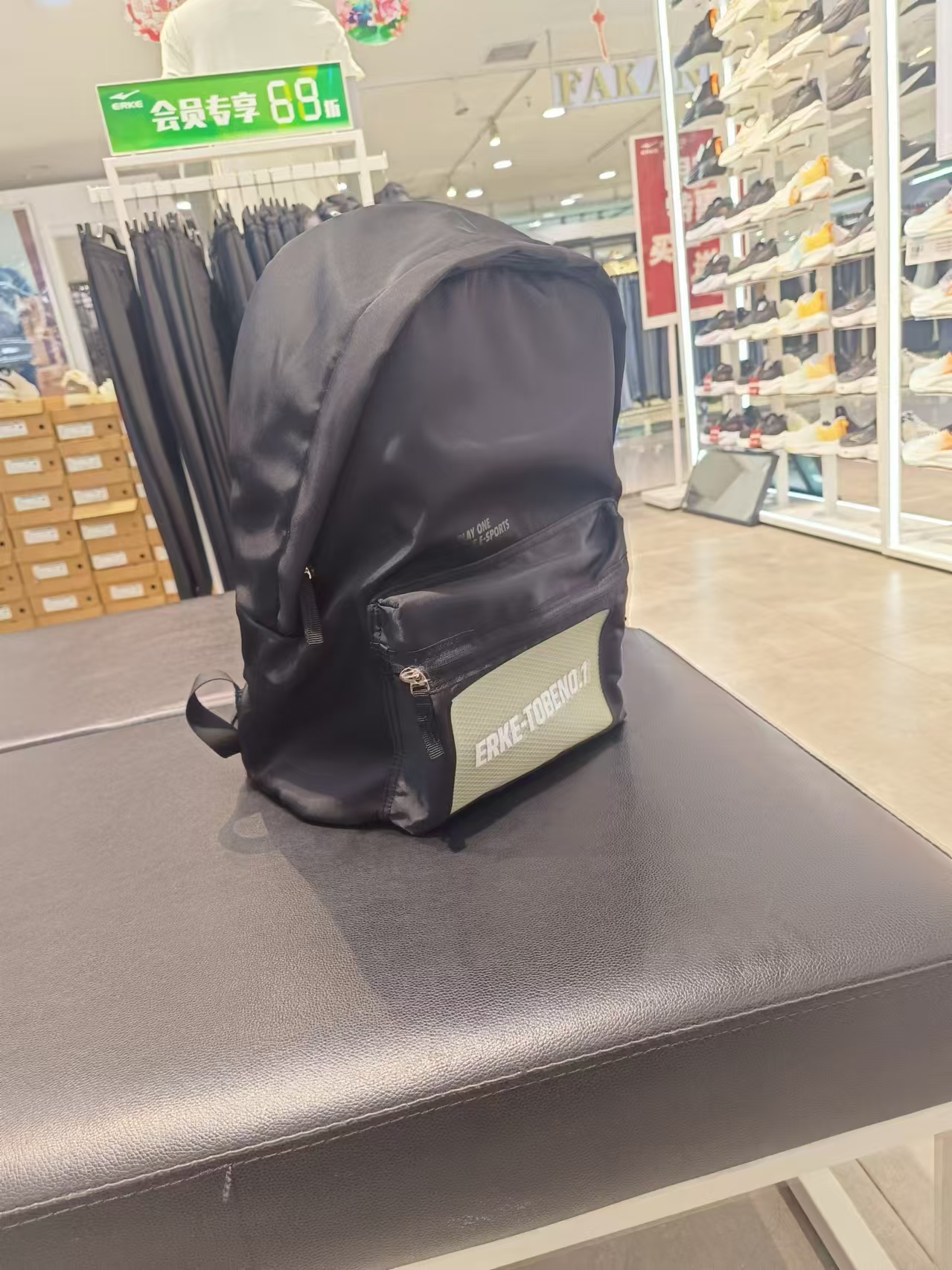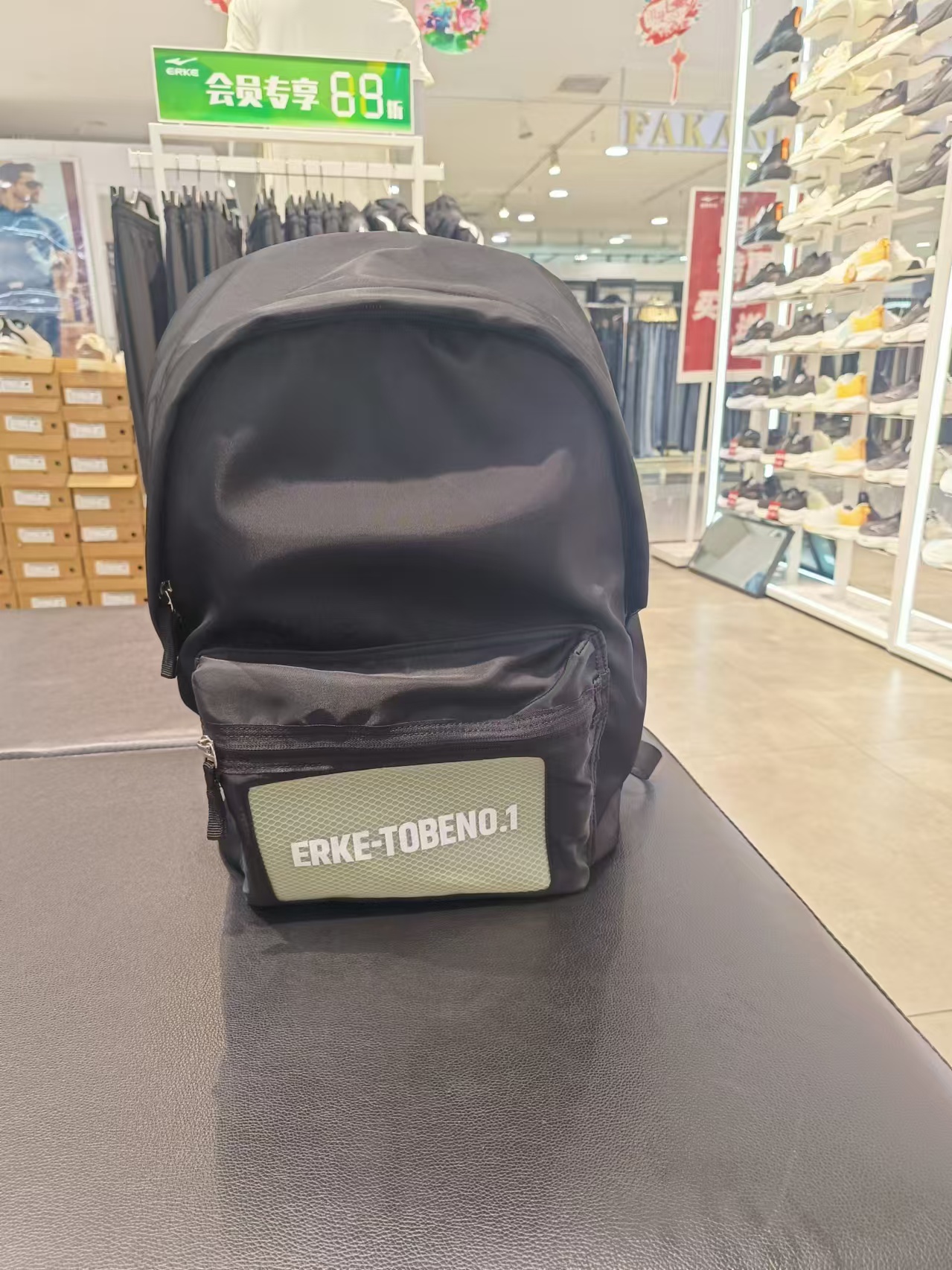 鸿星尔克双肩背运动休闲时尚黑色双肩背包