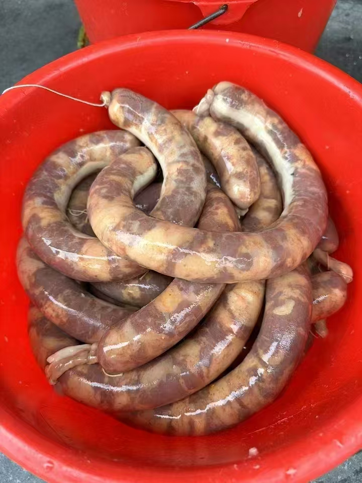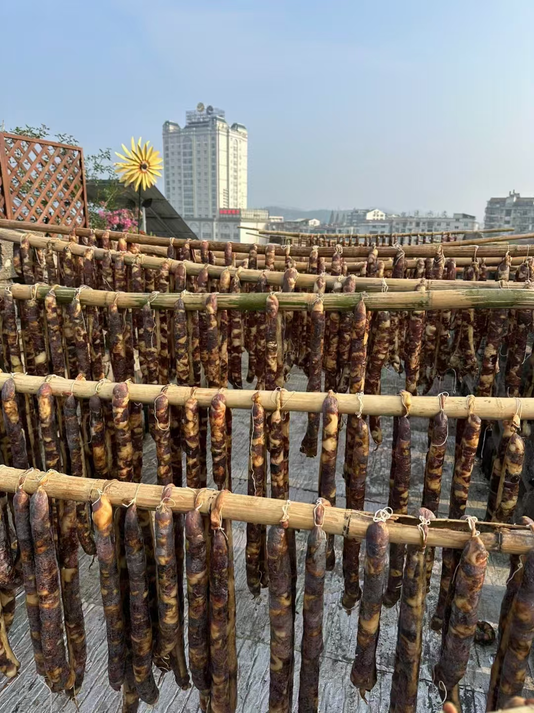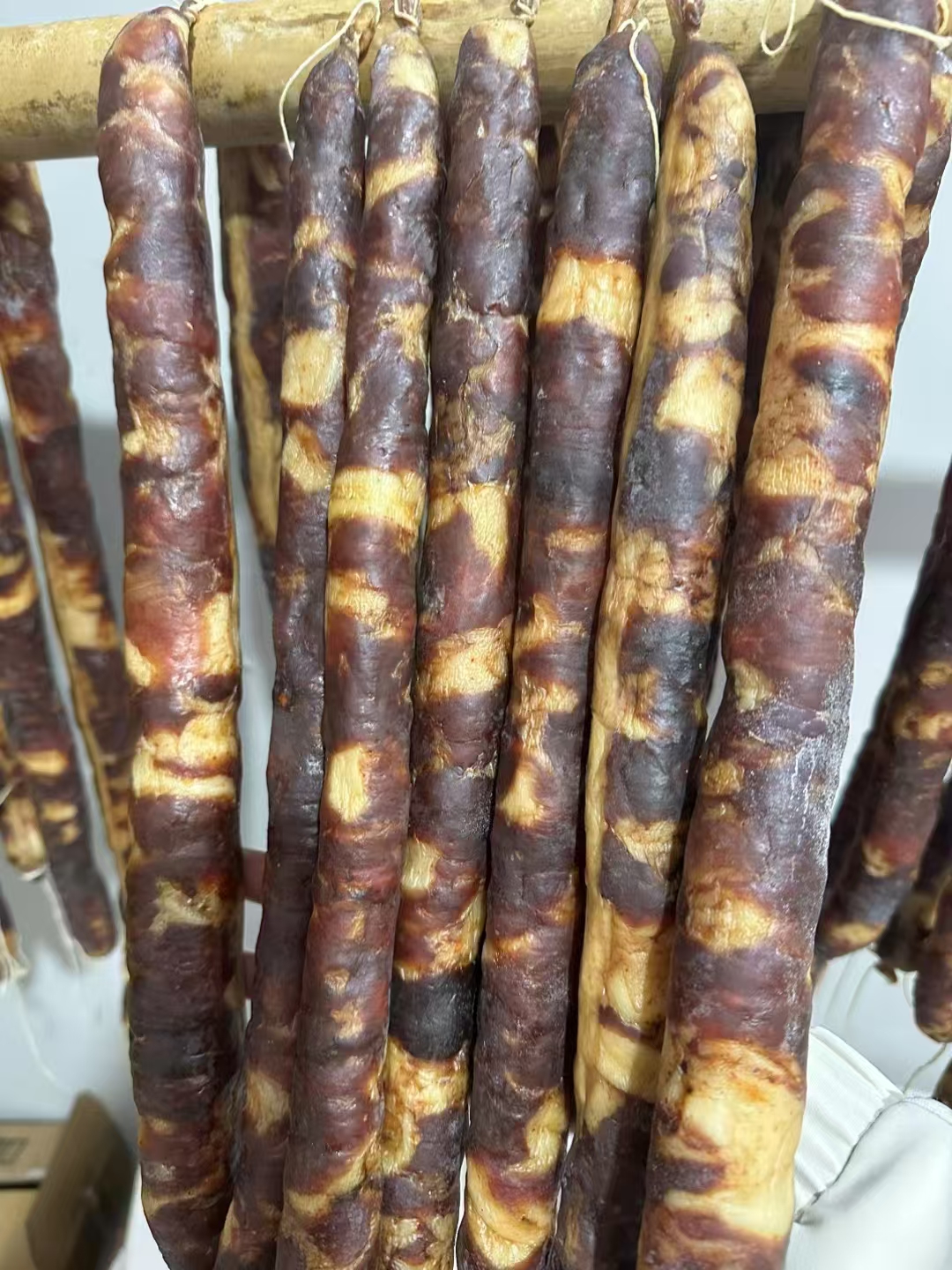 【建宁手工香肠/腊肉】精选肥瘦相间的猪腿肉,用盐、香料细细揉捻,灌入新鲜小肠内,而后,交由阳光与时间雕琢。-TJLL