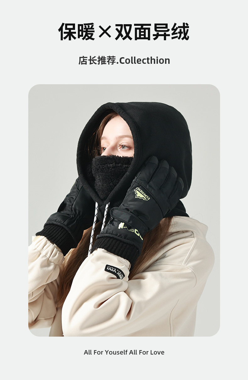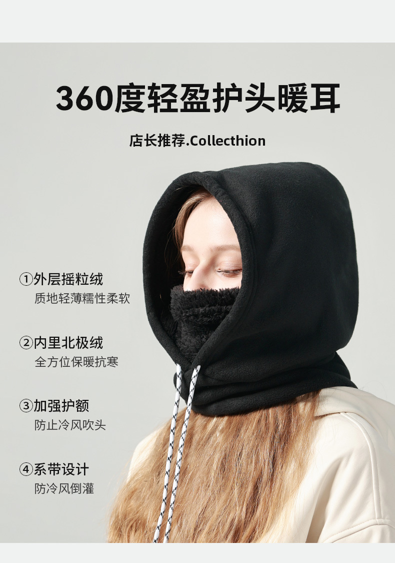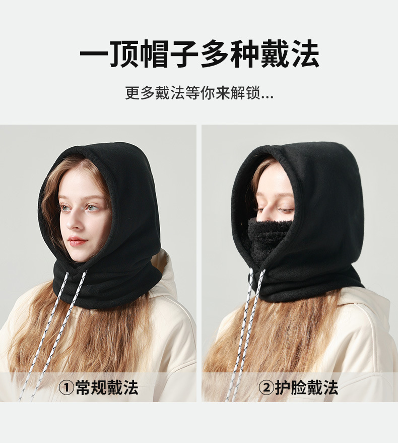 保暖防风帽子围脖一体秋冬加绒加厚护耳户外骑行帽子女韩版包头帽学生潮流百搭新款旅游必备小红书推荐