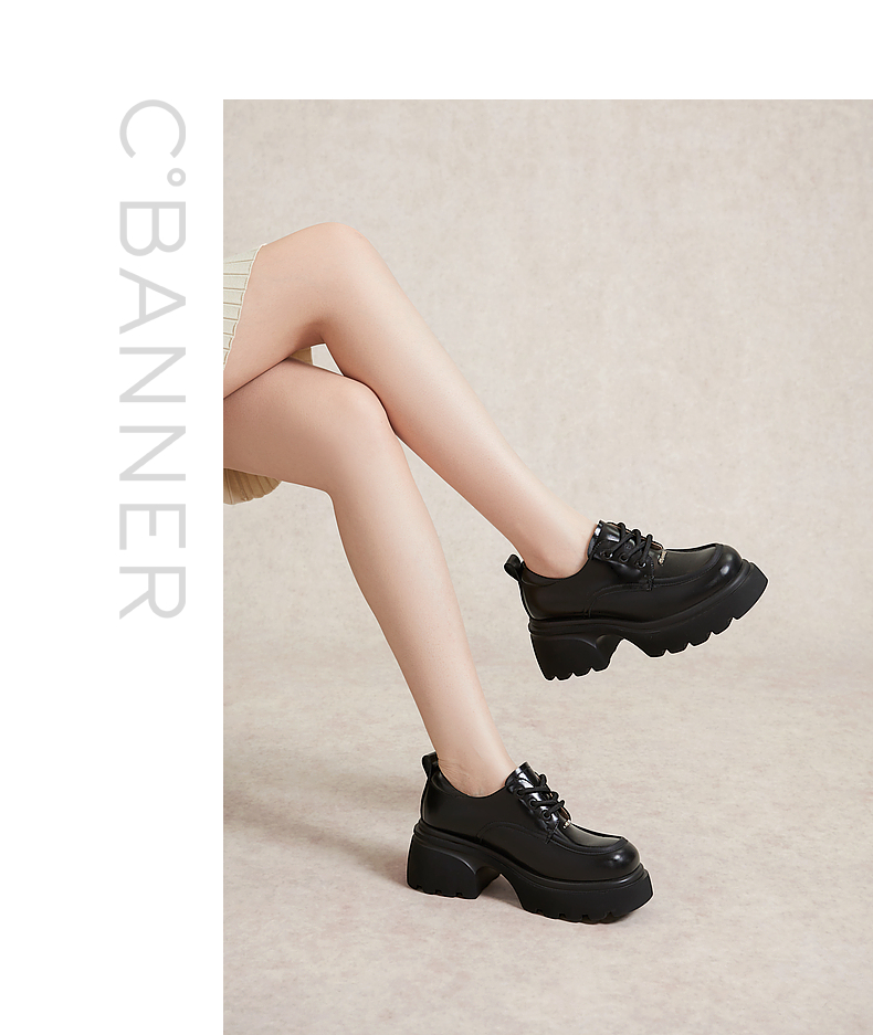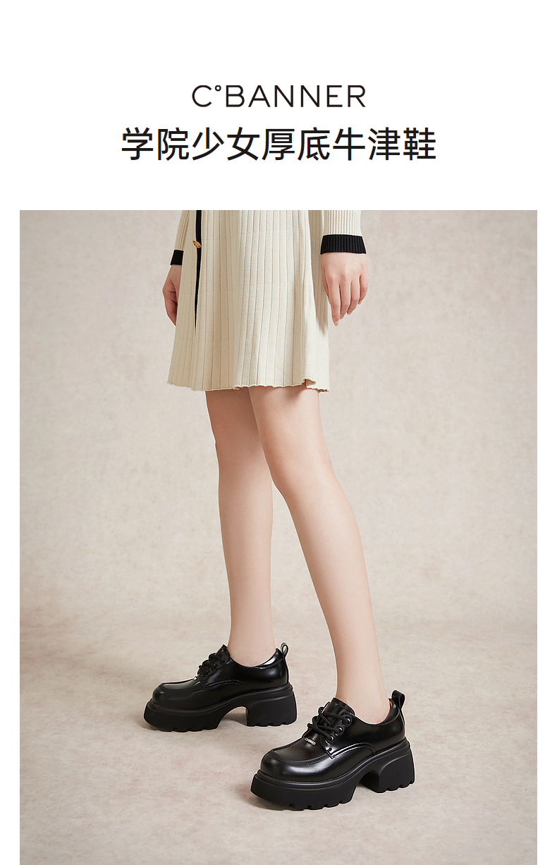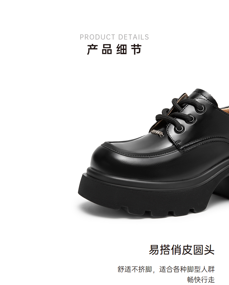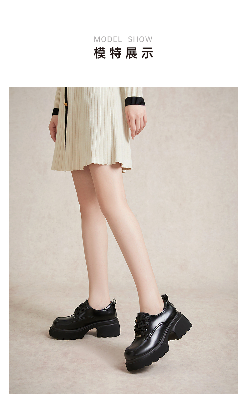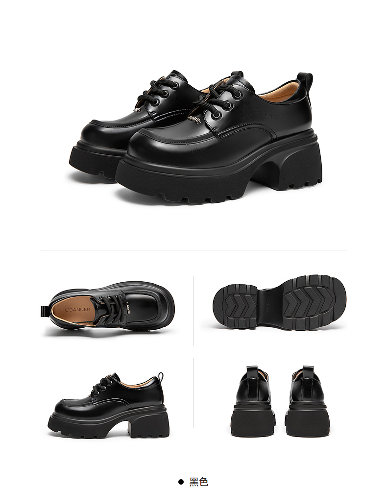 千百度厚底增高小皮鞋春季黑色系带牛津鞋百搭单鞋女鞋A24136502