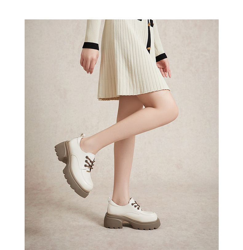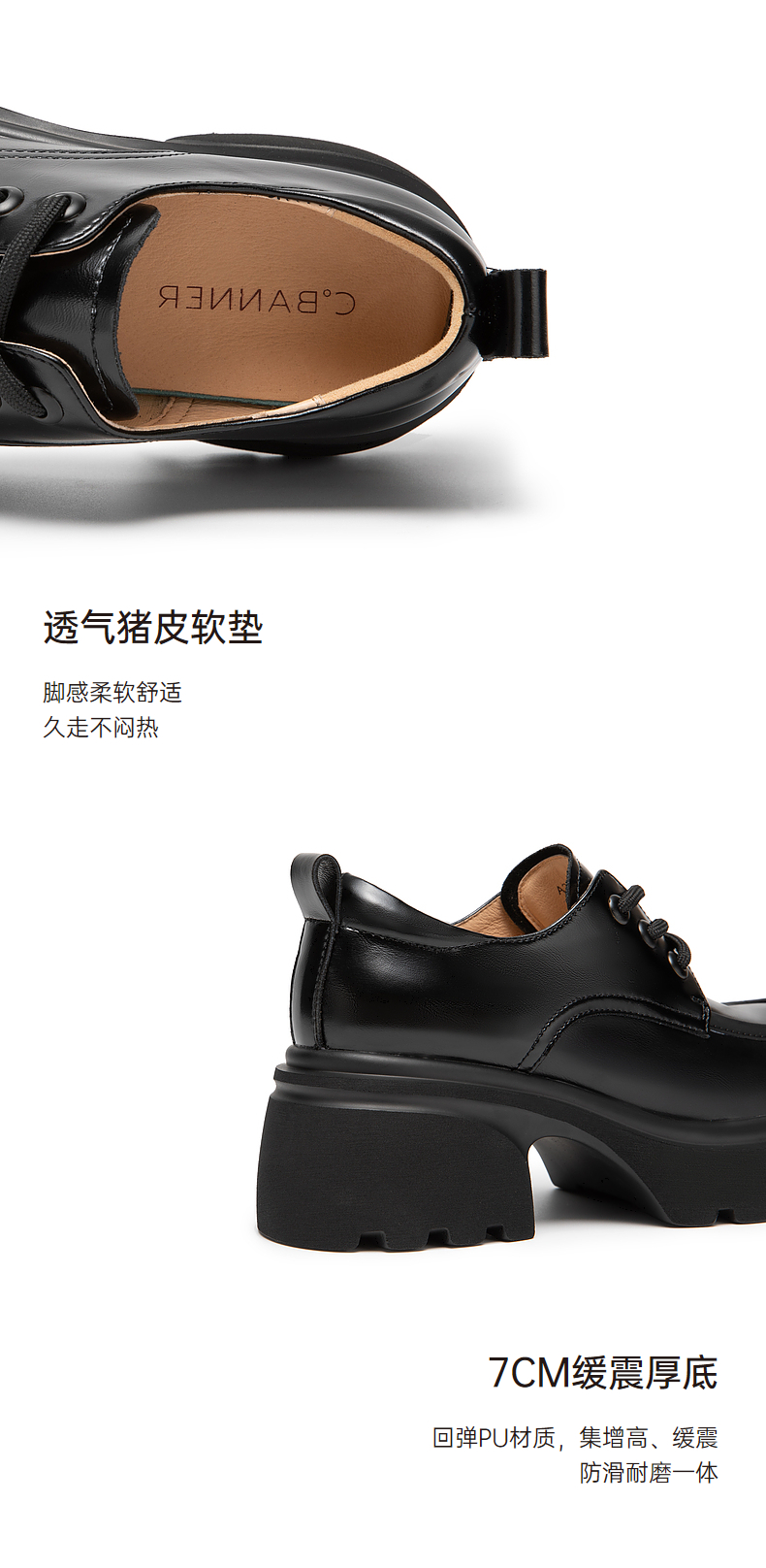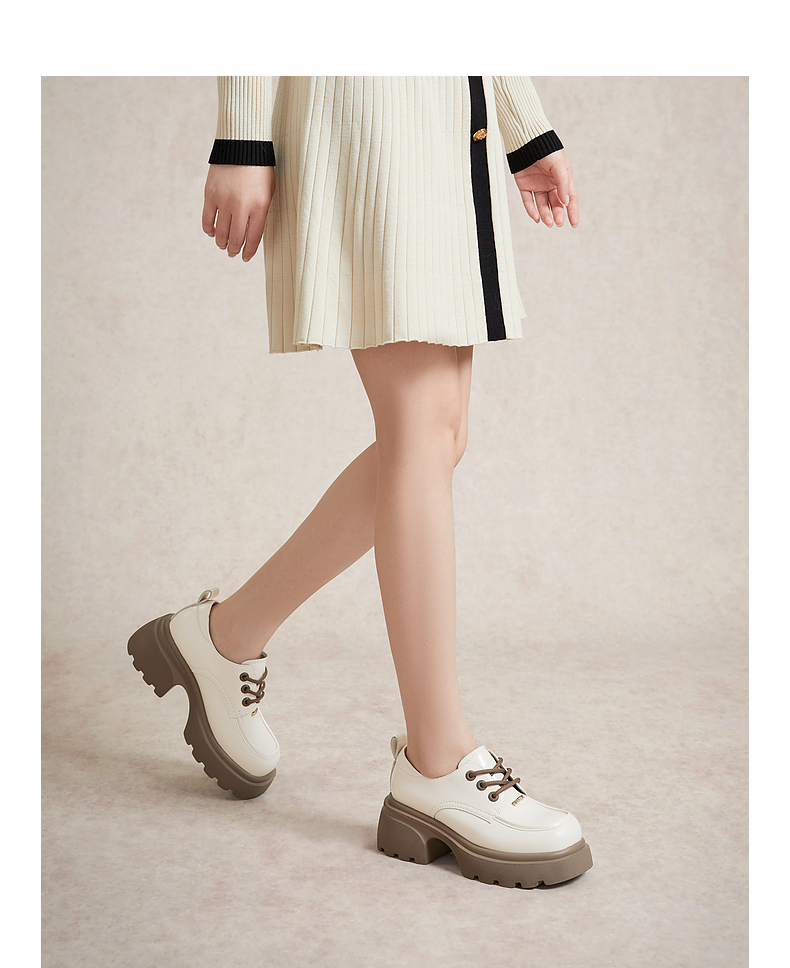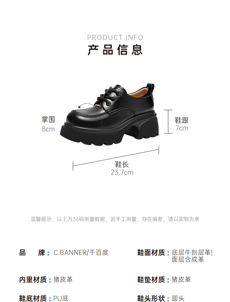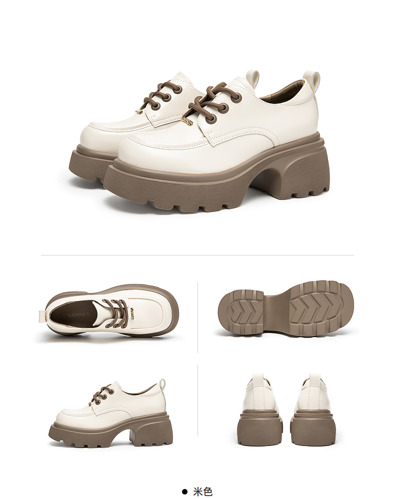 千百度厚底增高小皮鞋春季黑色系带牛津鞋百搭单鞋女鞋A24136502