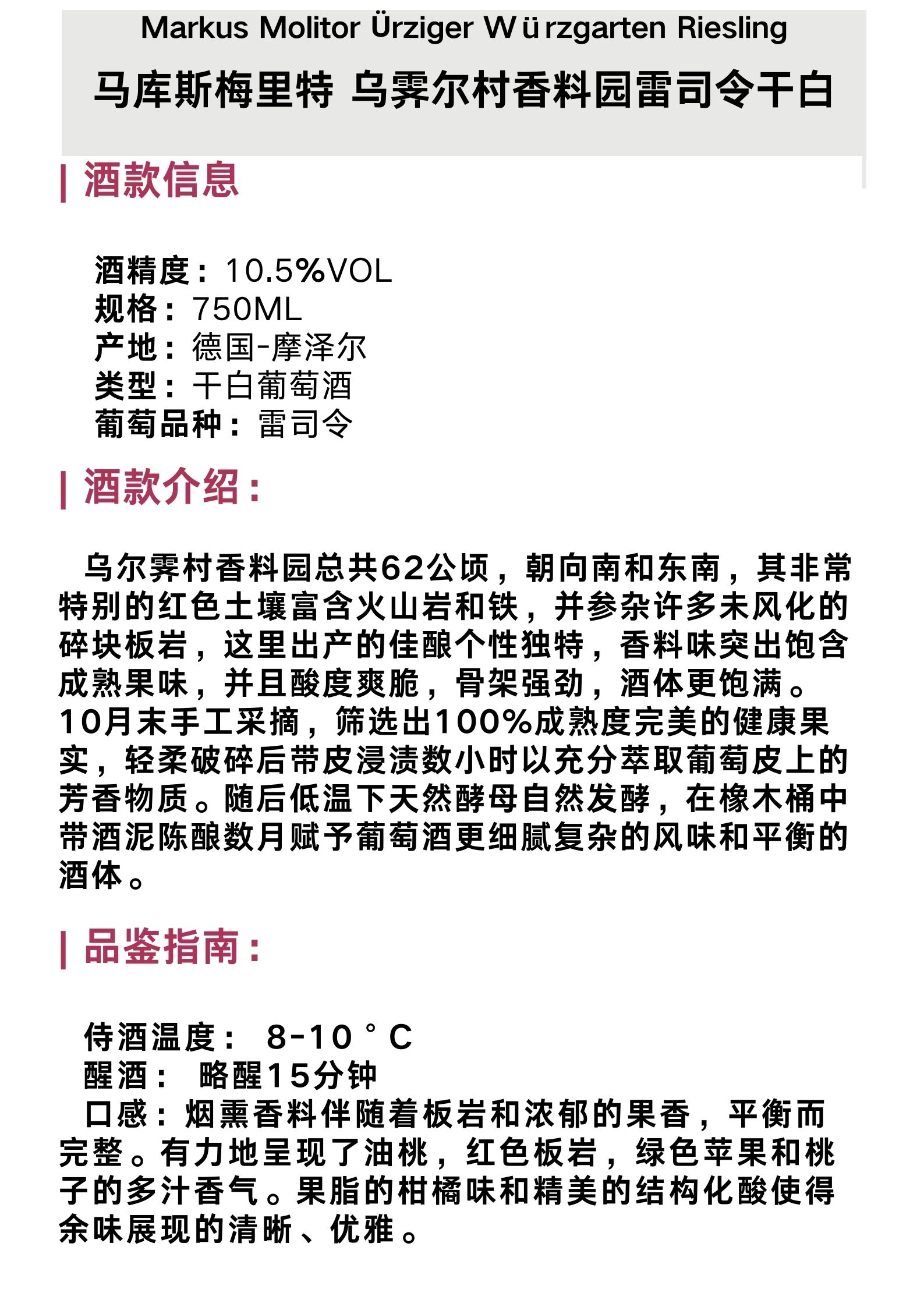 马库斯梅里特 乌霁尔村香料园雷司令干白葡萄酒(白盖)