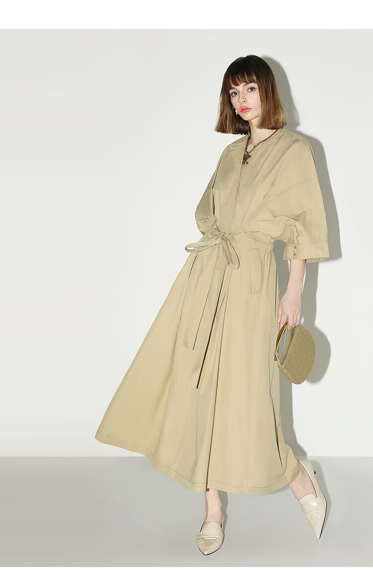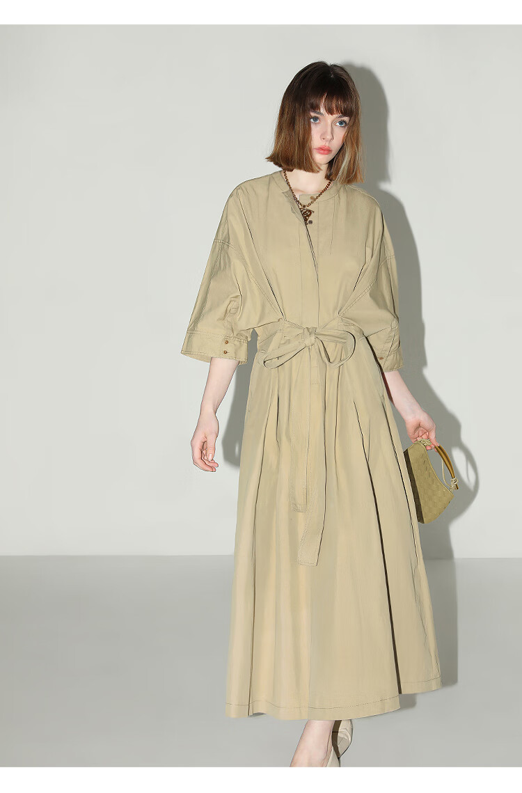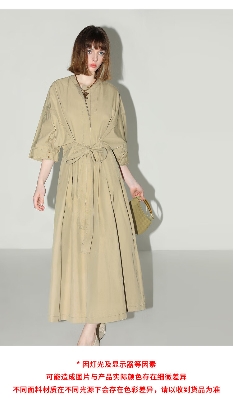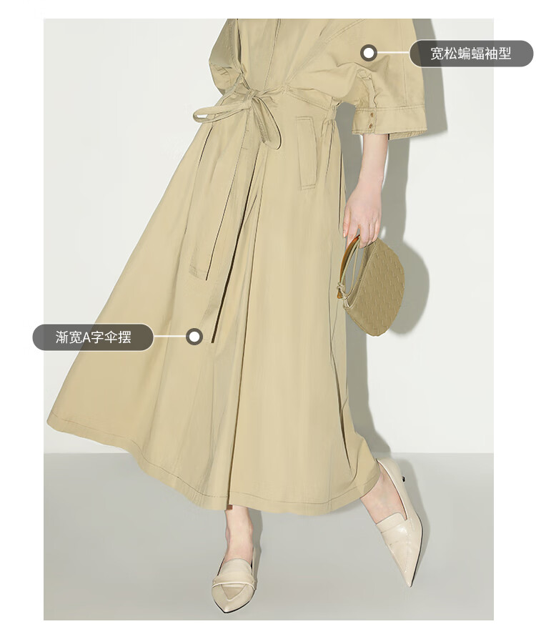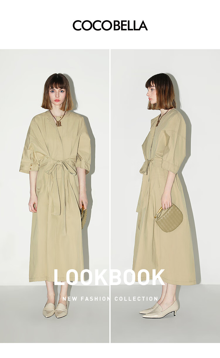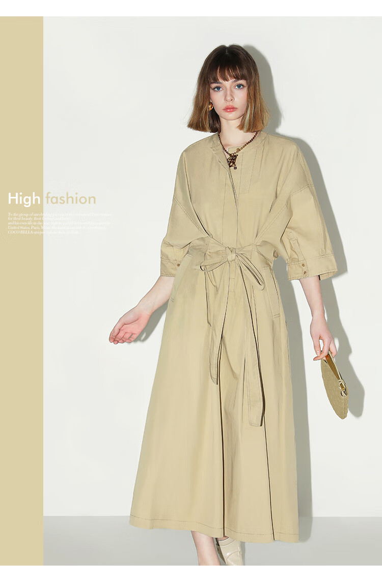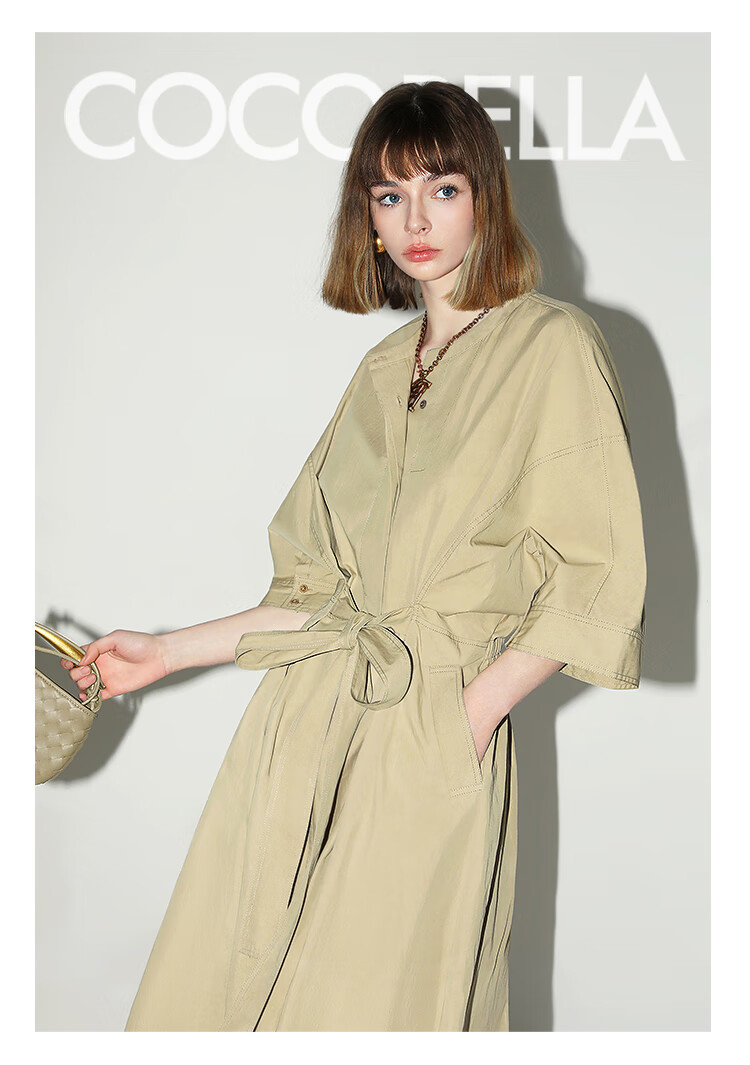 COCOBELLA明线装饰气质绑带连衣裙女遮肉蝙蝠袖衬衫裙FR7005