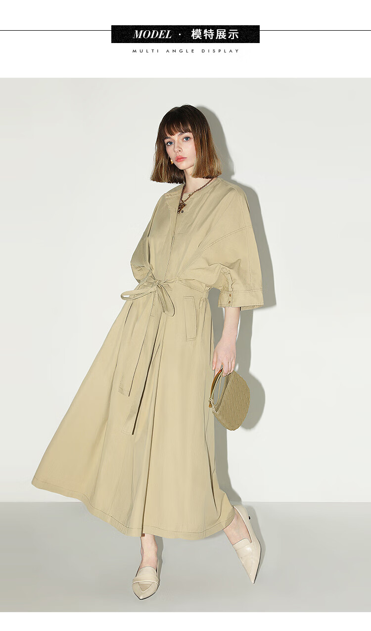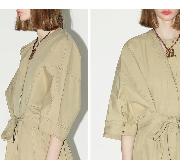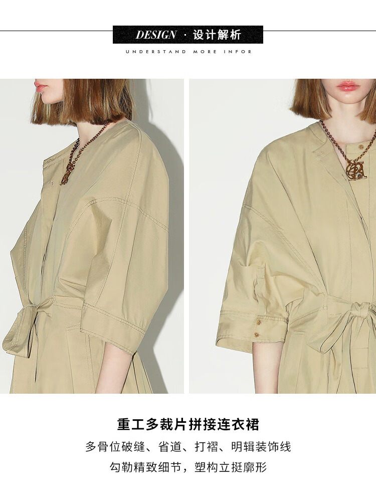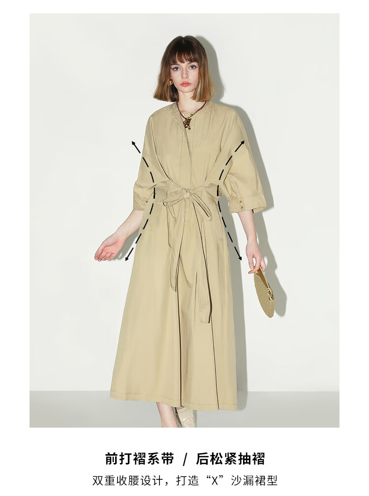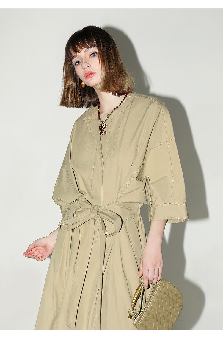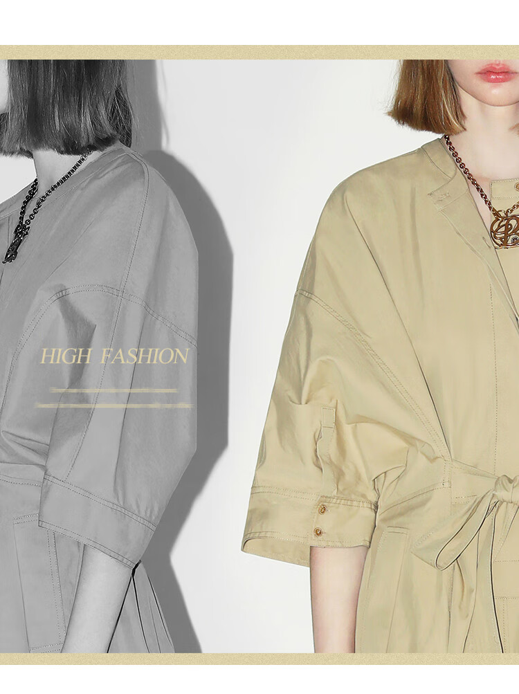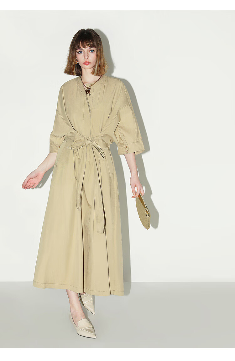 COCOBELLA明线装饰气质绑带连衣裙女遮肉蝙蝠袖衬衫裙FR7005