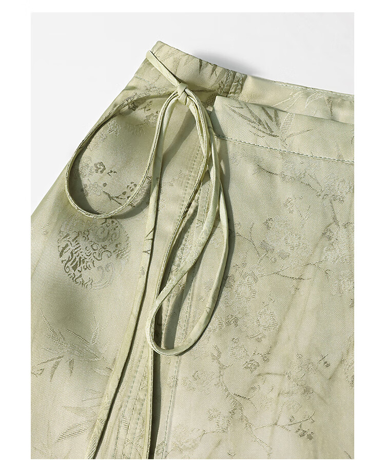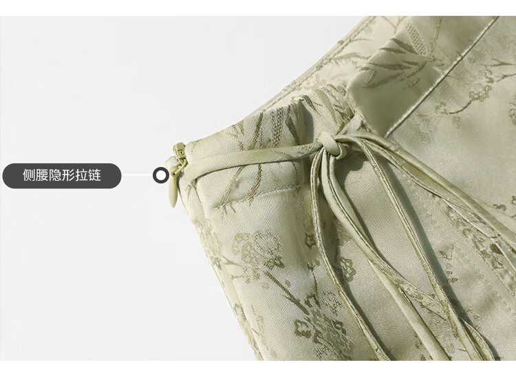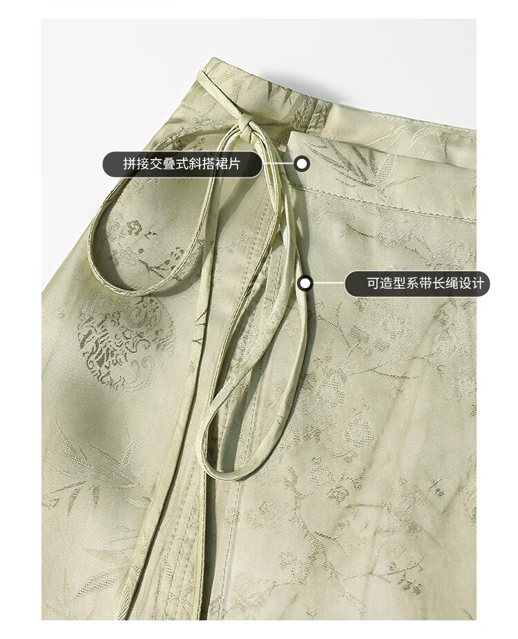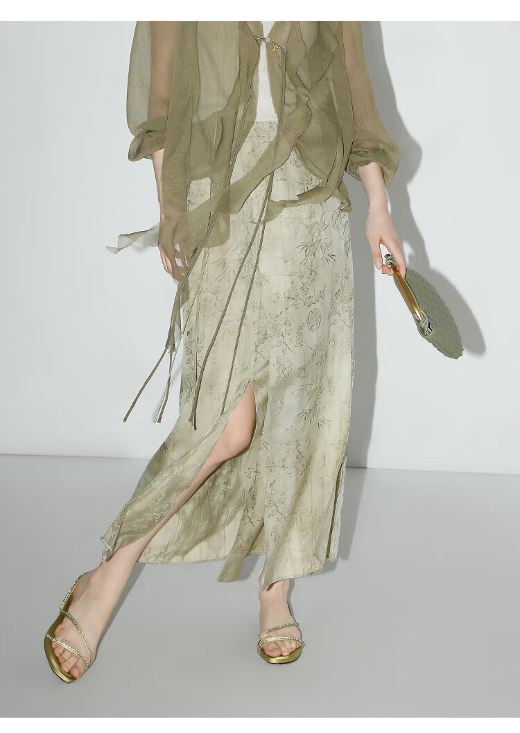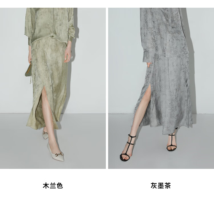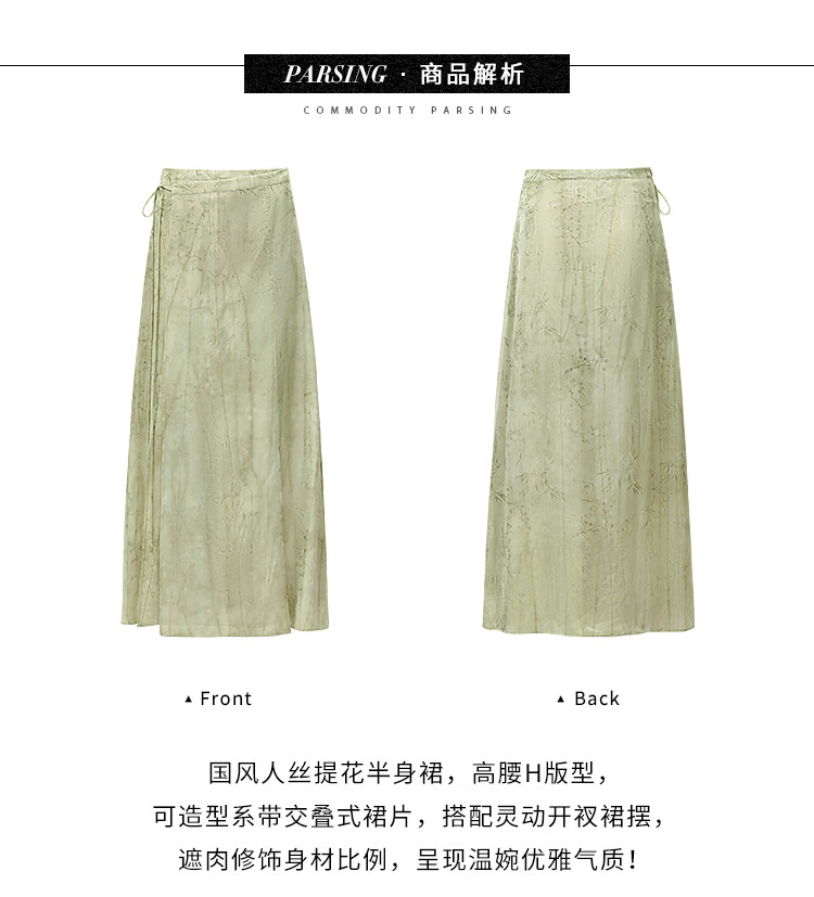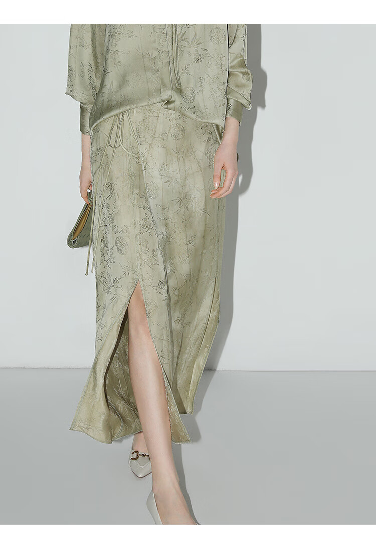 COCOBELLA重工人丝提花炒色半身裙女新中式国风开叉长裙HS0007-2