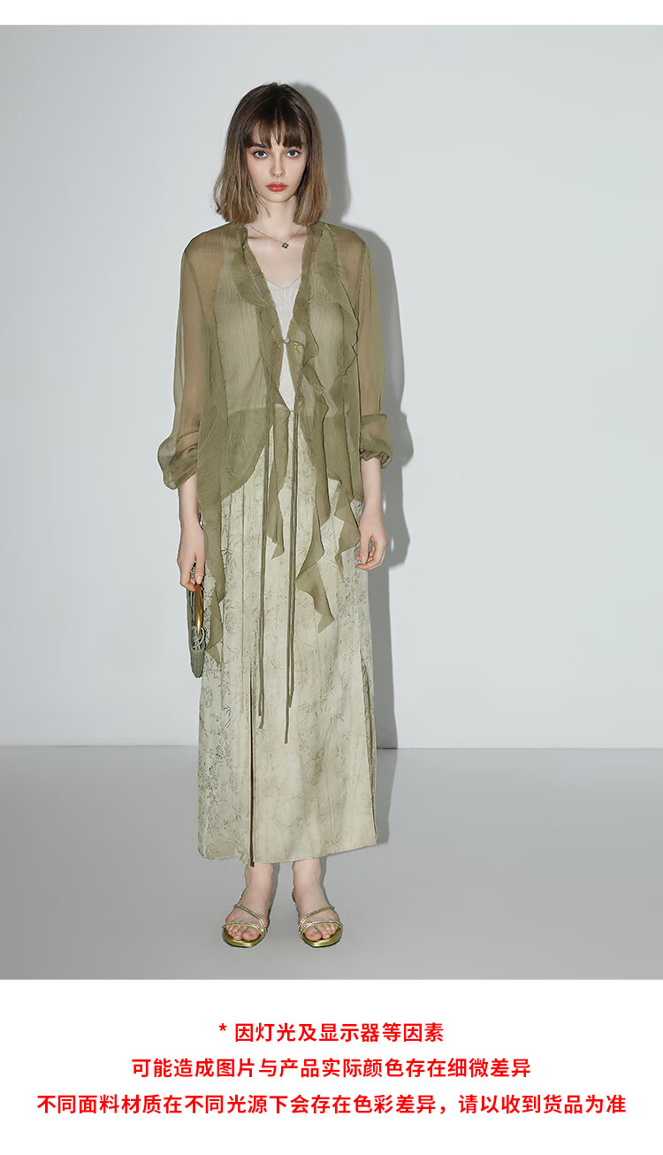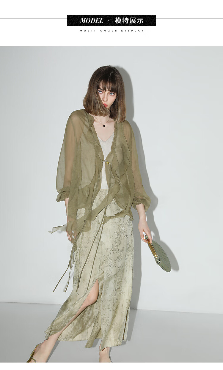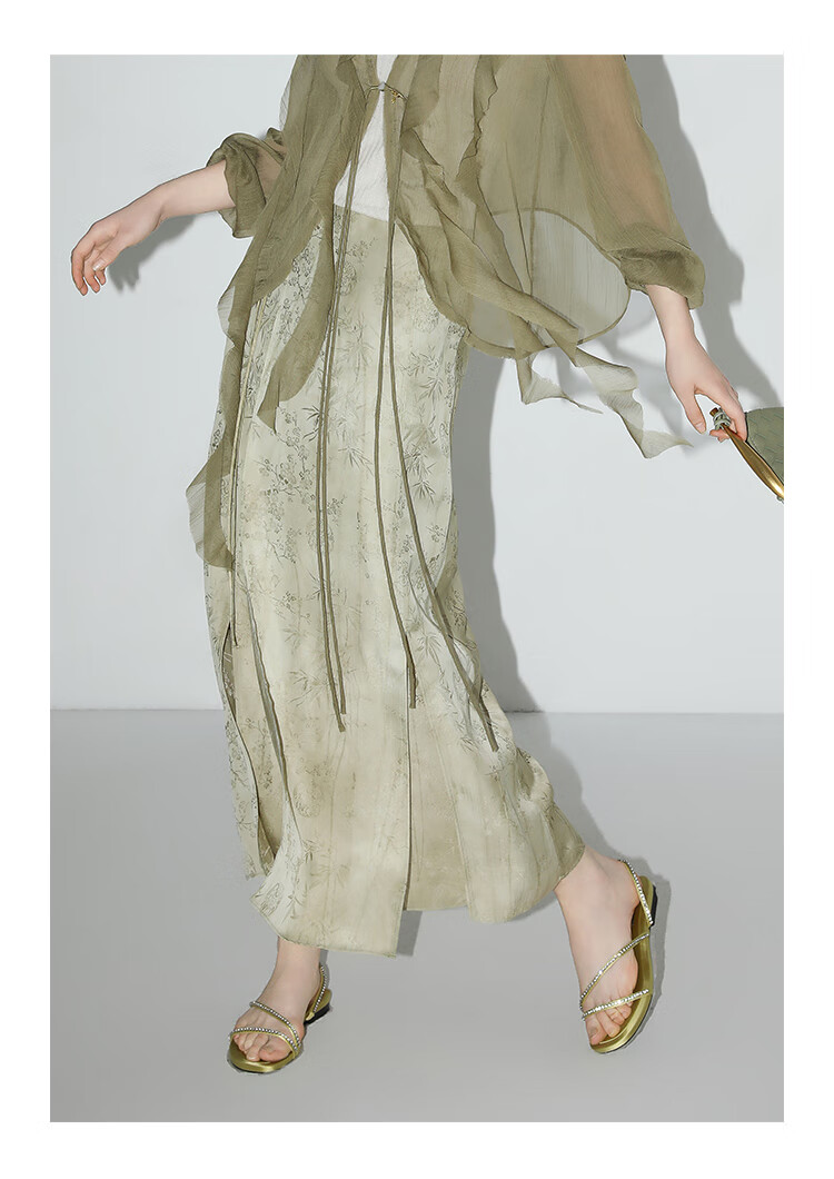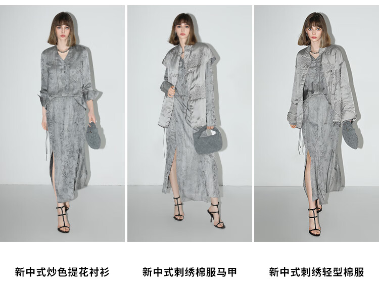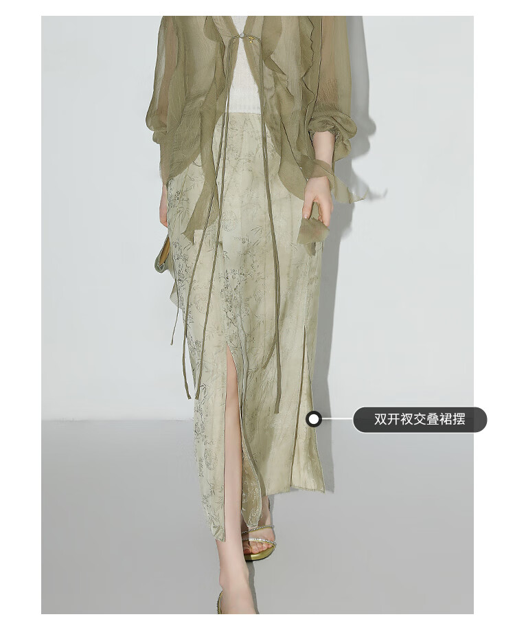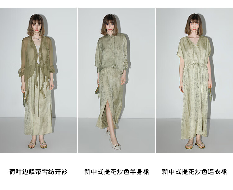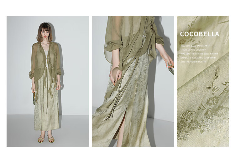 COCOBELLA重工人丝提花炒色半身裙女新中式国风开叉长裙HS0007-2