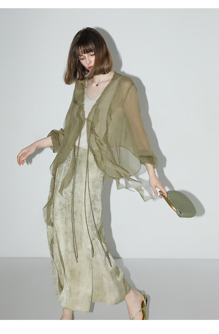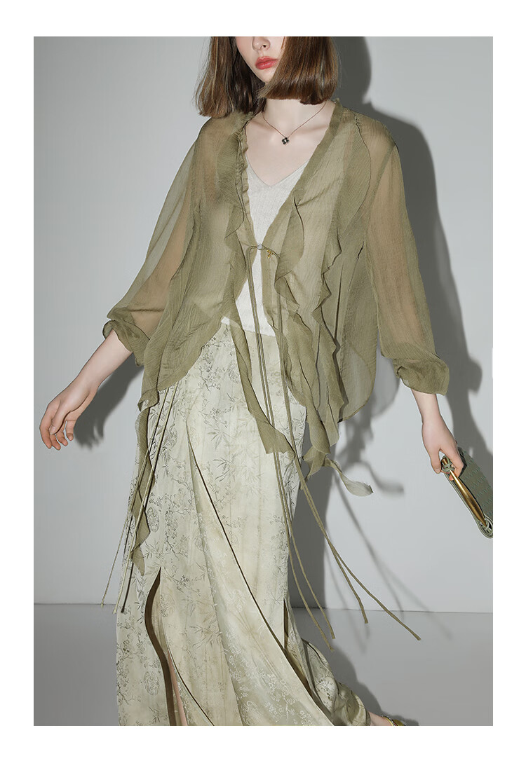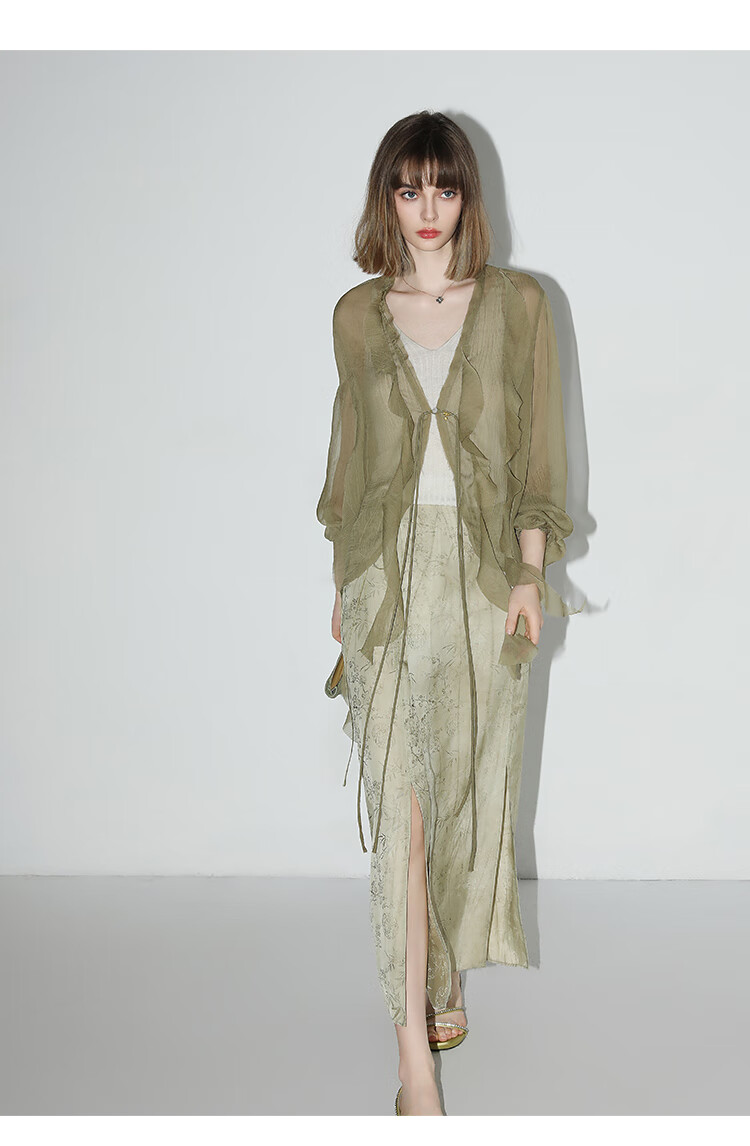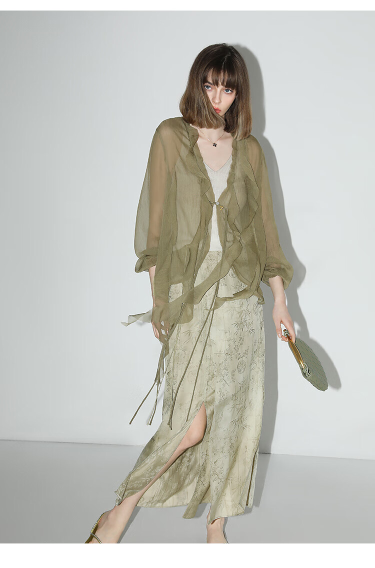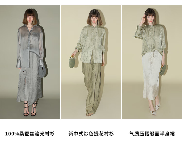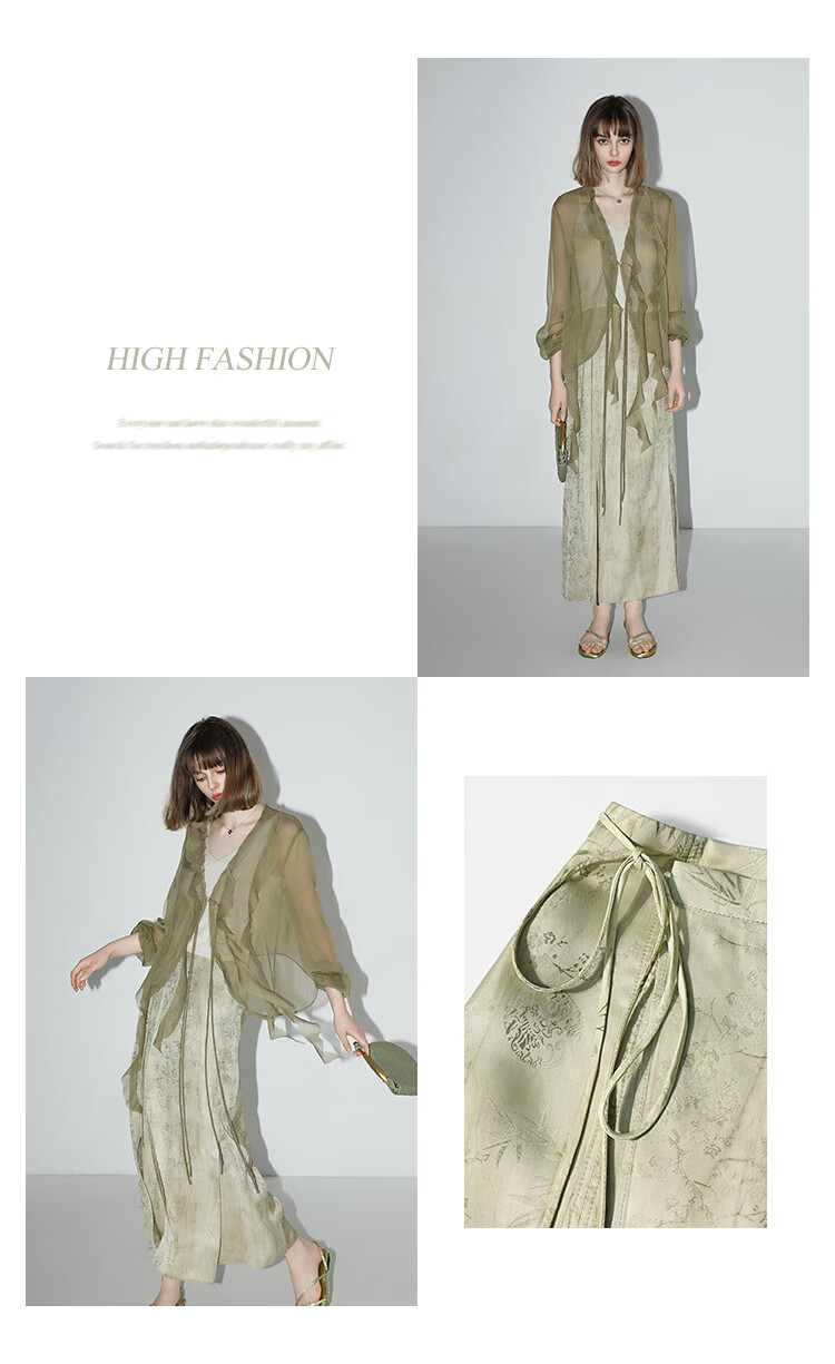 COCOBELLA重工人丝提花炒色半身裙女新中式国风开叉长裙HS0007-2