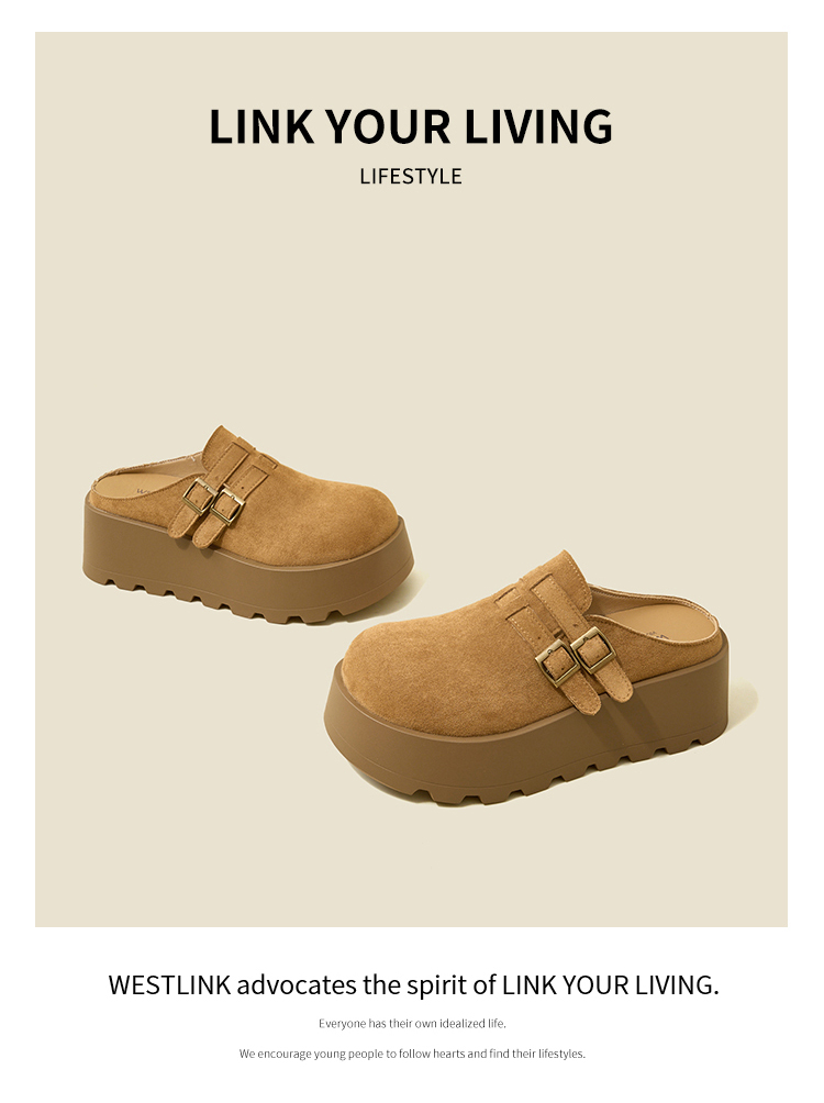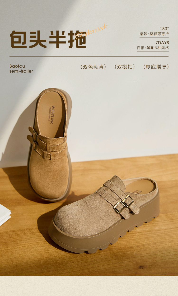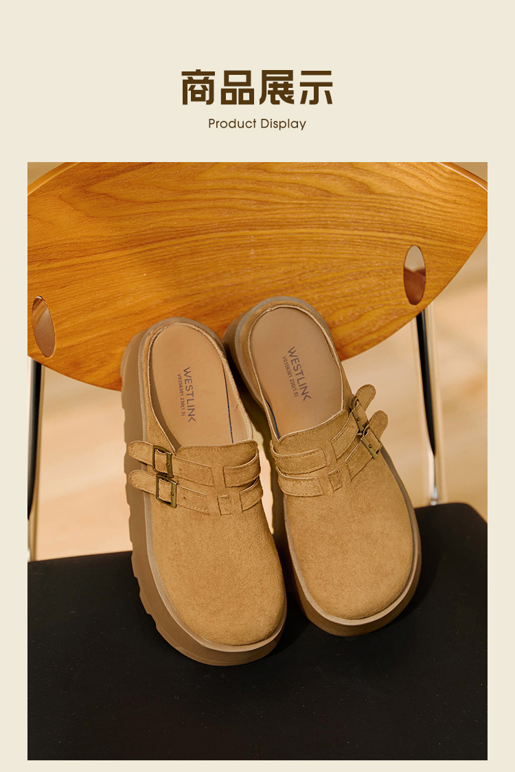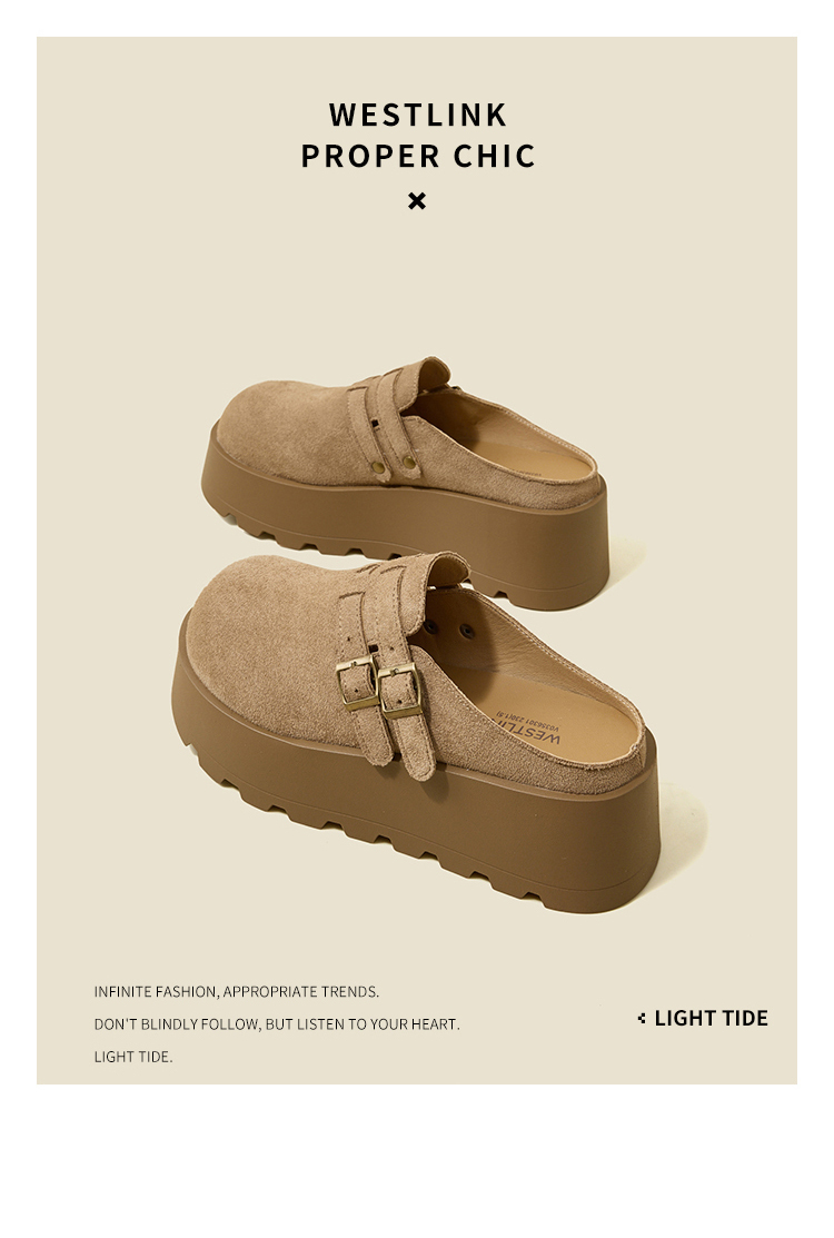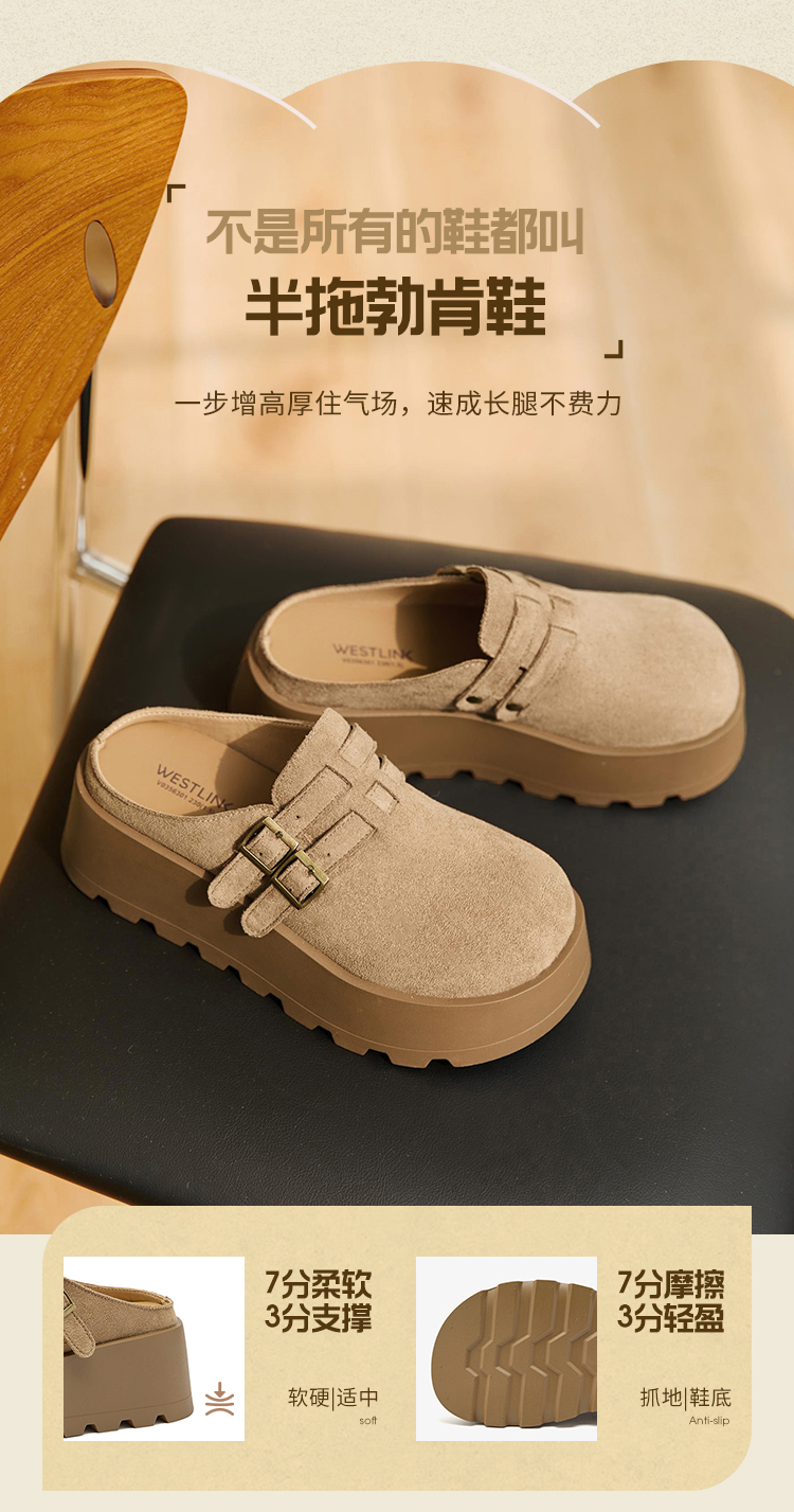 【限时秒杀】西遇勃肯鞋女厚底增高新款复古一脚蹬懒人鞋包头半拖鞋V0356301