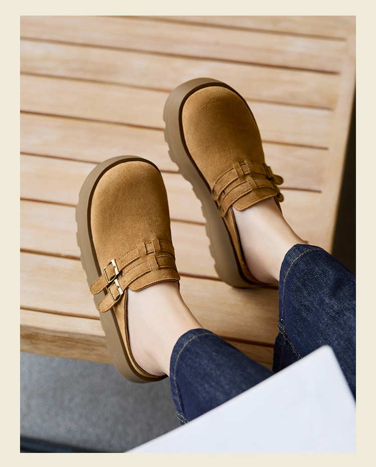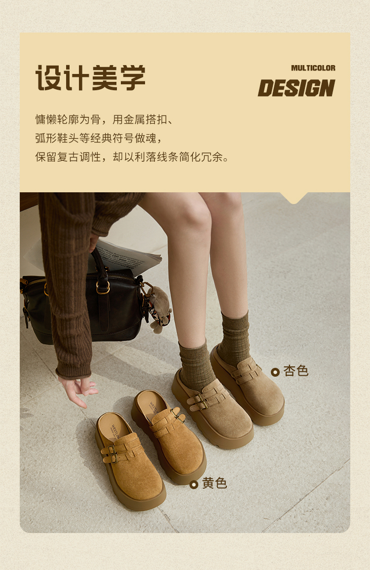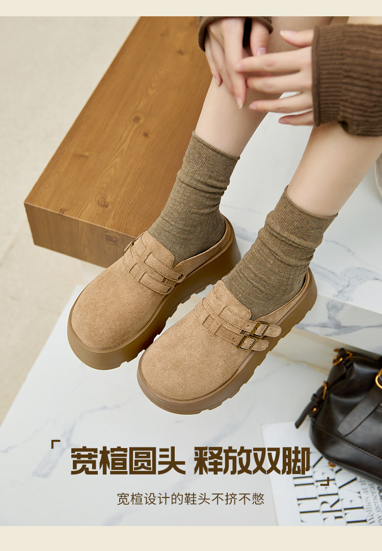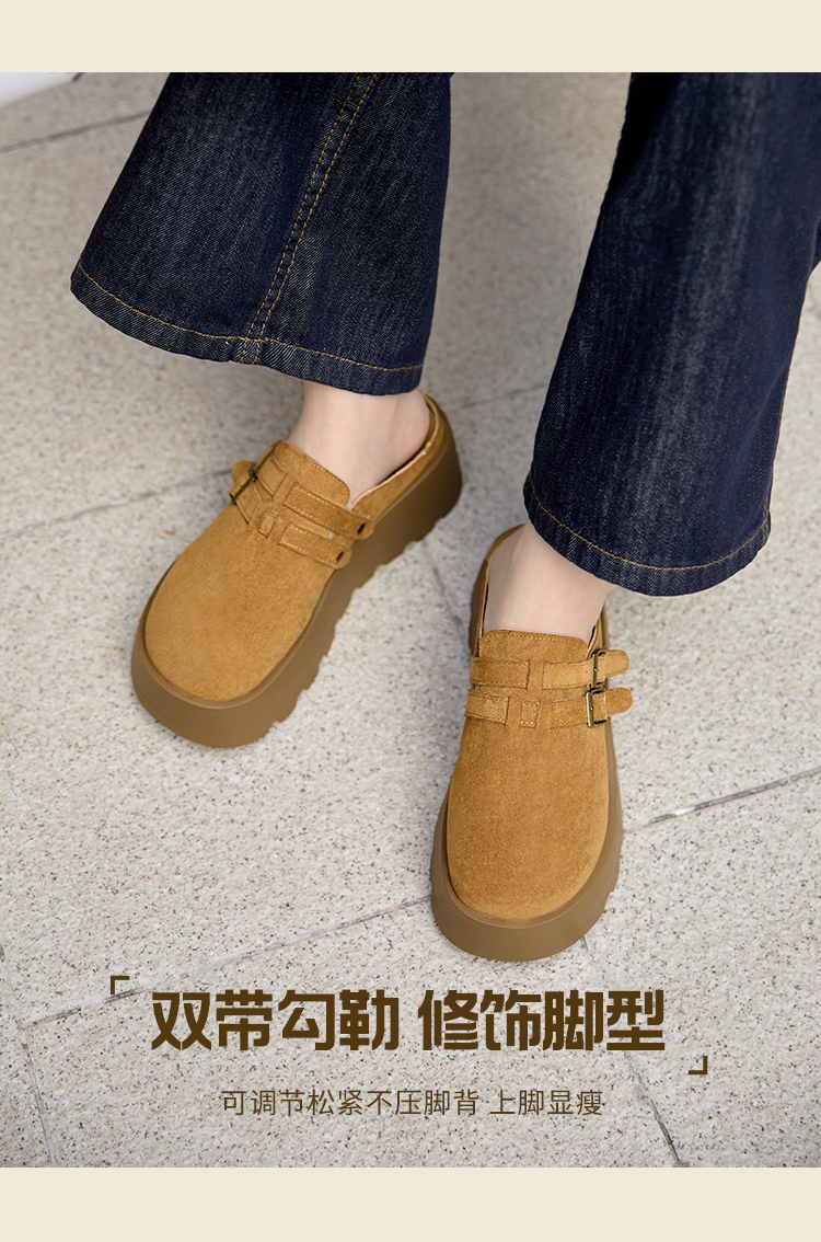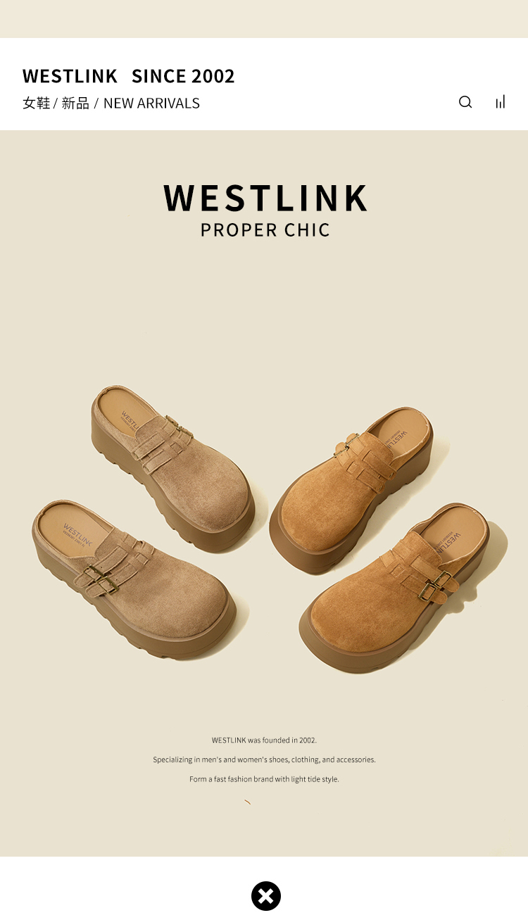 【限时秒杀】西遇勃肯鞋女厚底增高新款复古一脚蹬懒人鞋包头半拖鞋V0356301