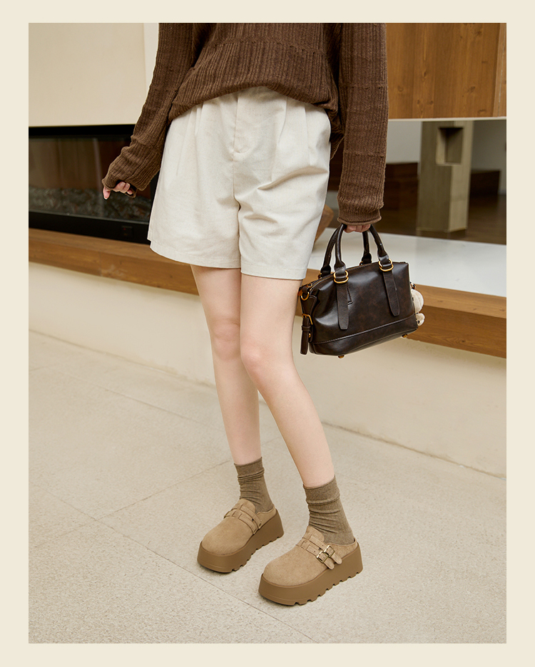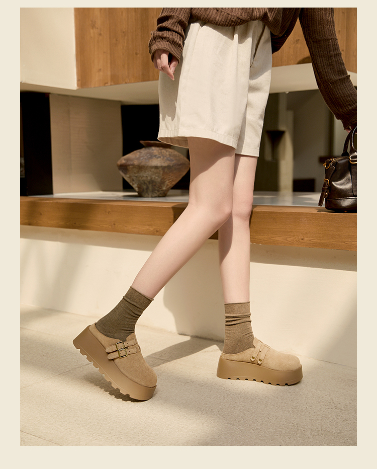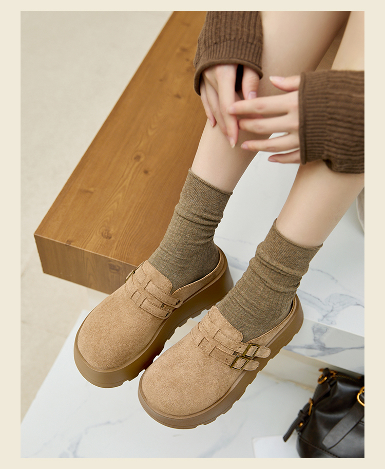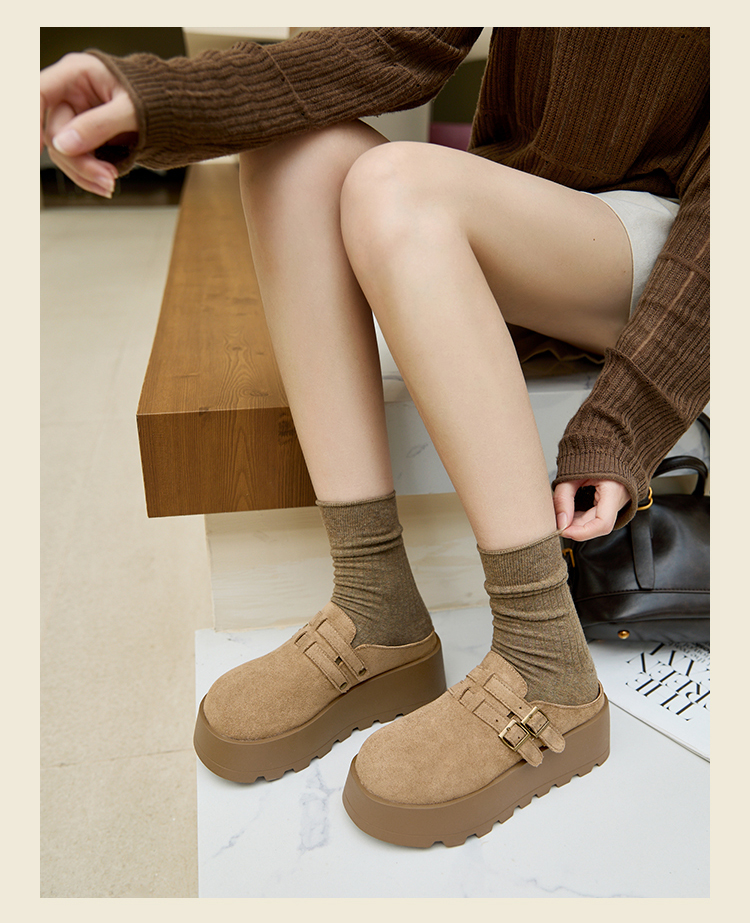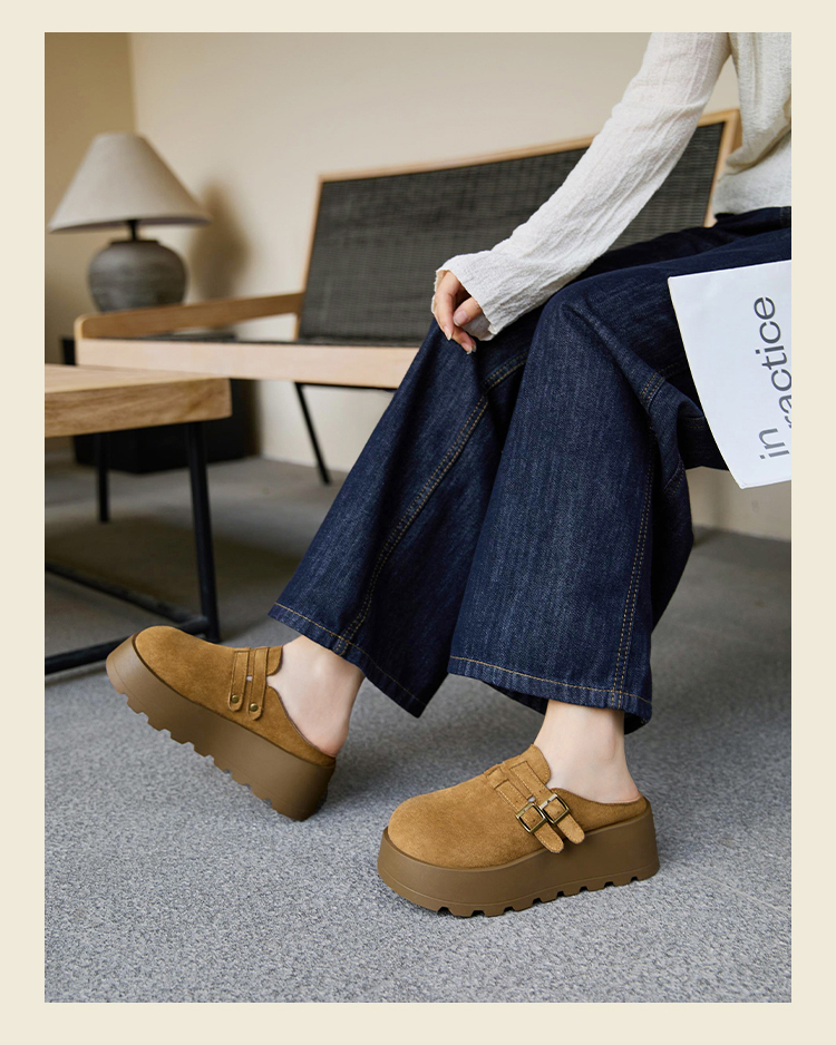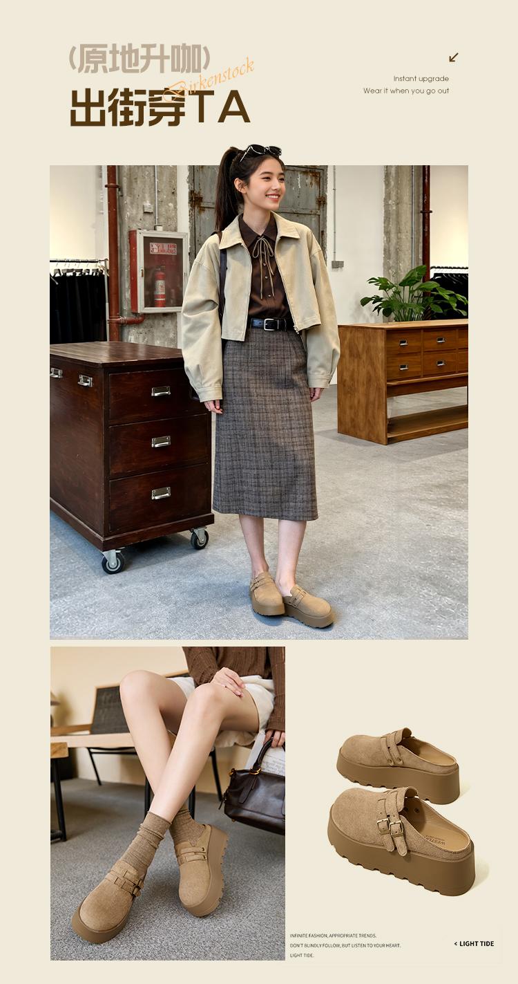 【限时秒杀】西遇勃肯鞋女厚底增高新款复古一脚蹬懒人鞋包头半拖鞋V0356301