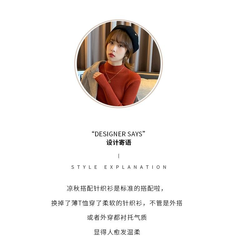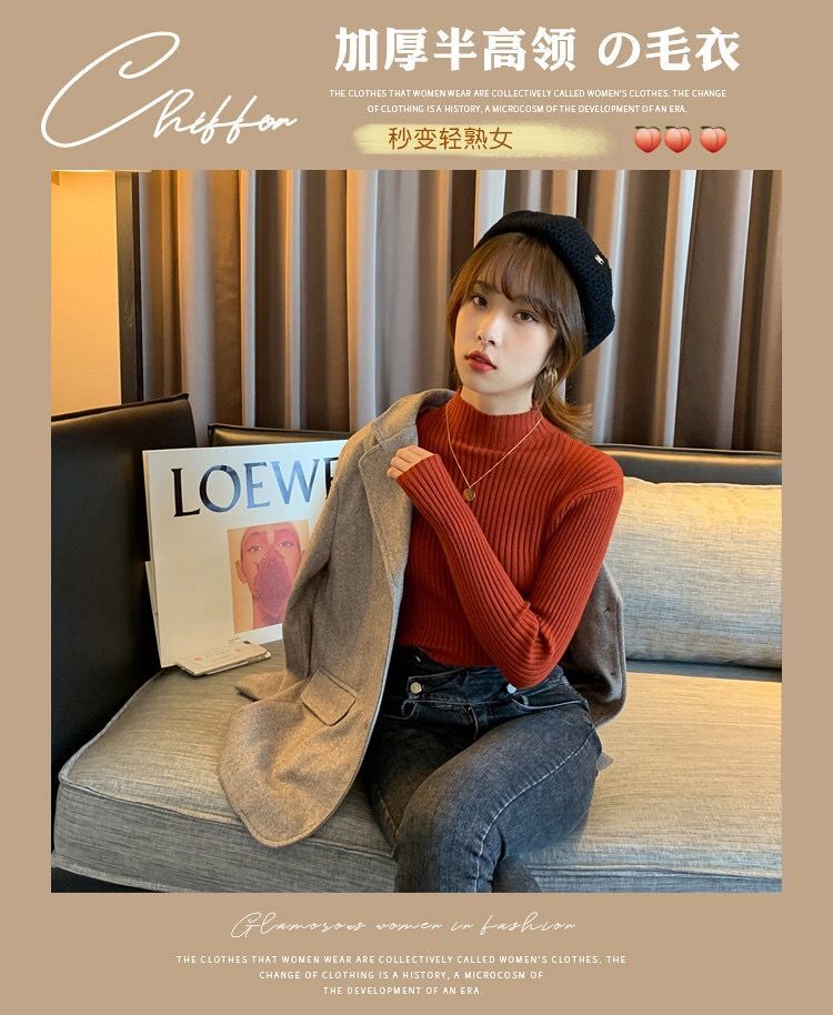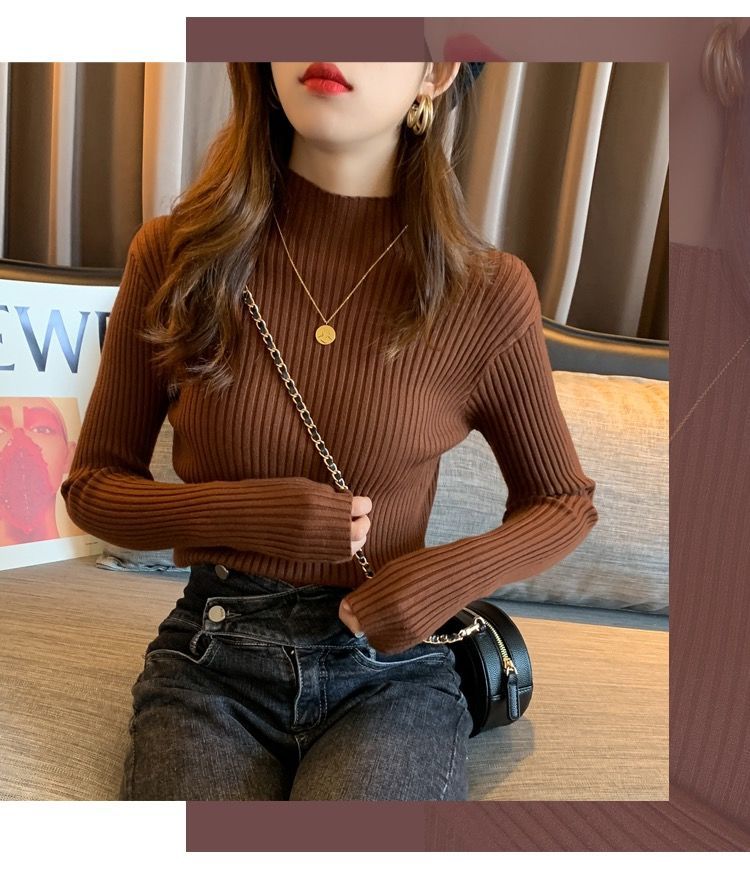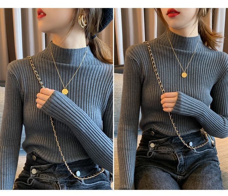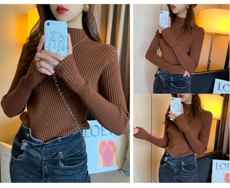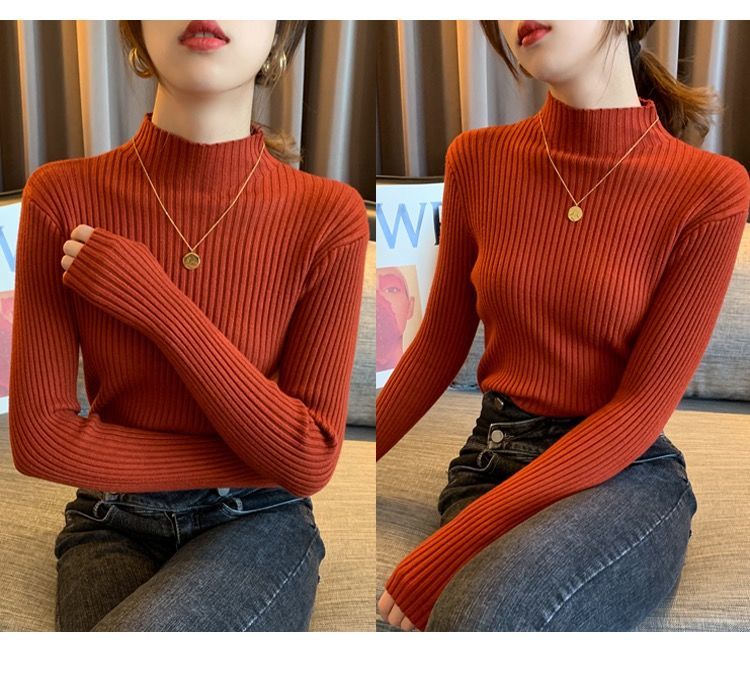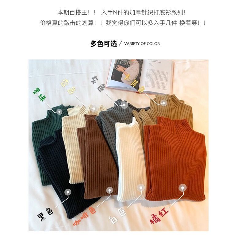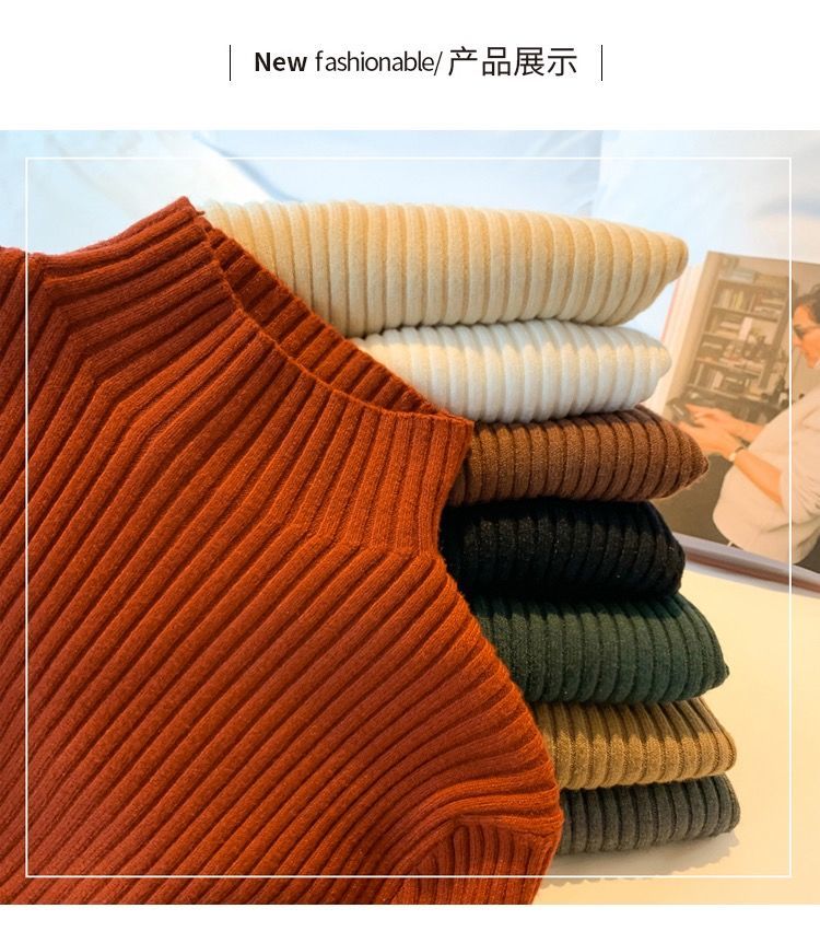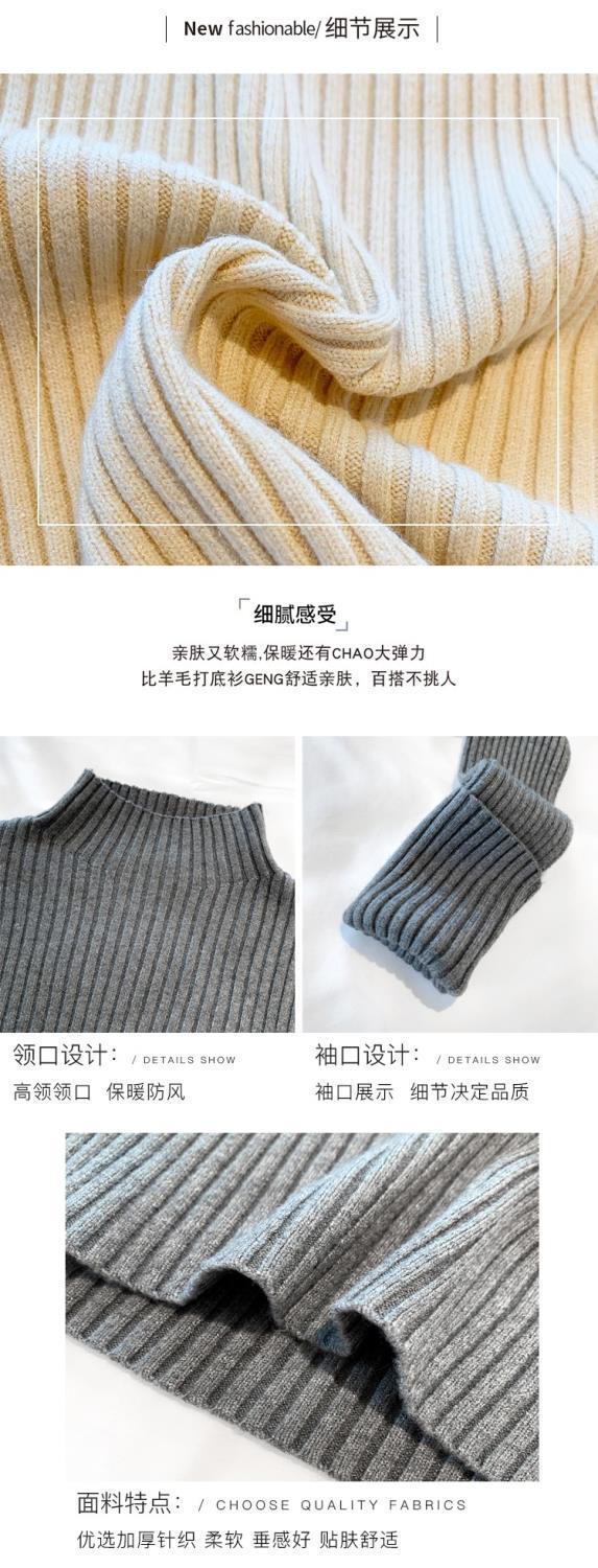 【细腻感受】经典坑条半高领外穿毛衣打底衫秋冬韩版修身内搭针织衫女上衣